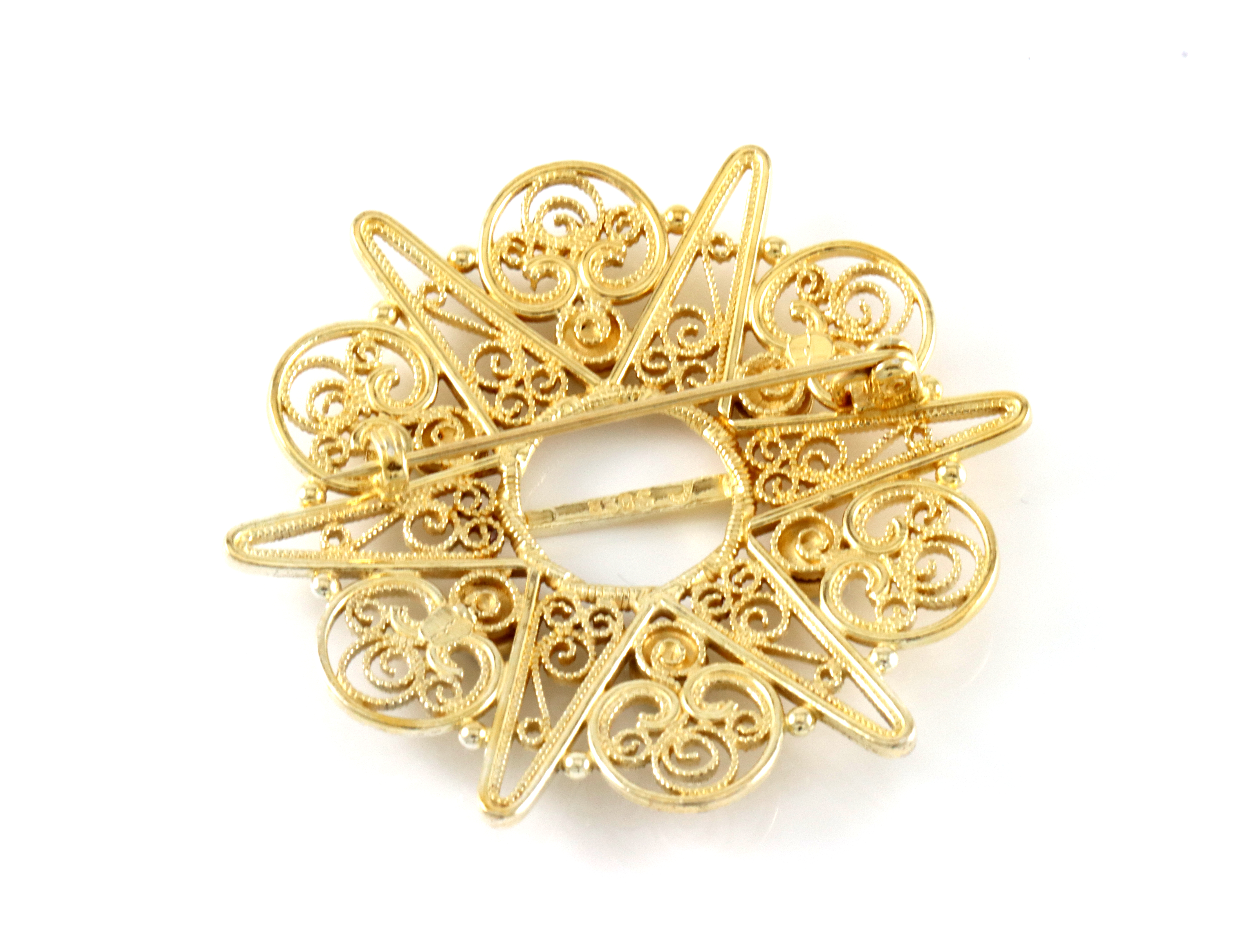 Sølje produsert av Sylvsmidja. Fana med røde stener. Ca 5,2 cm