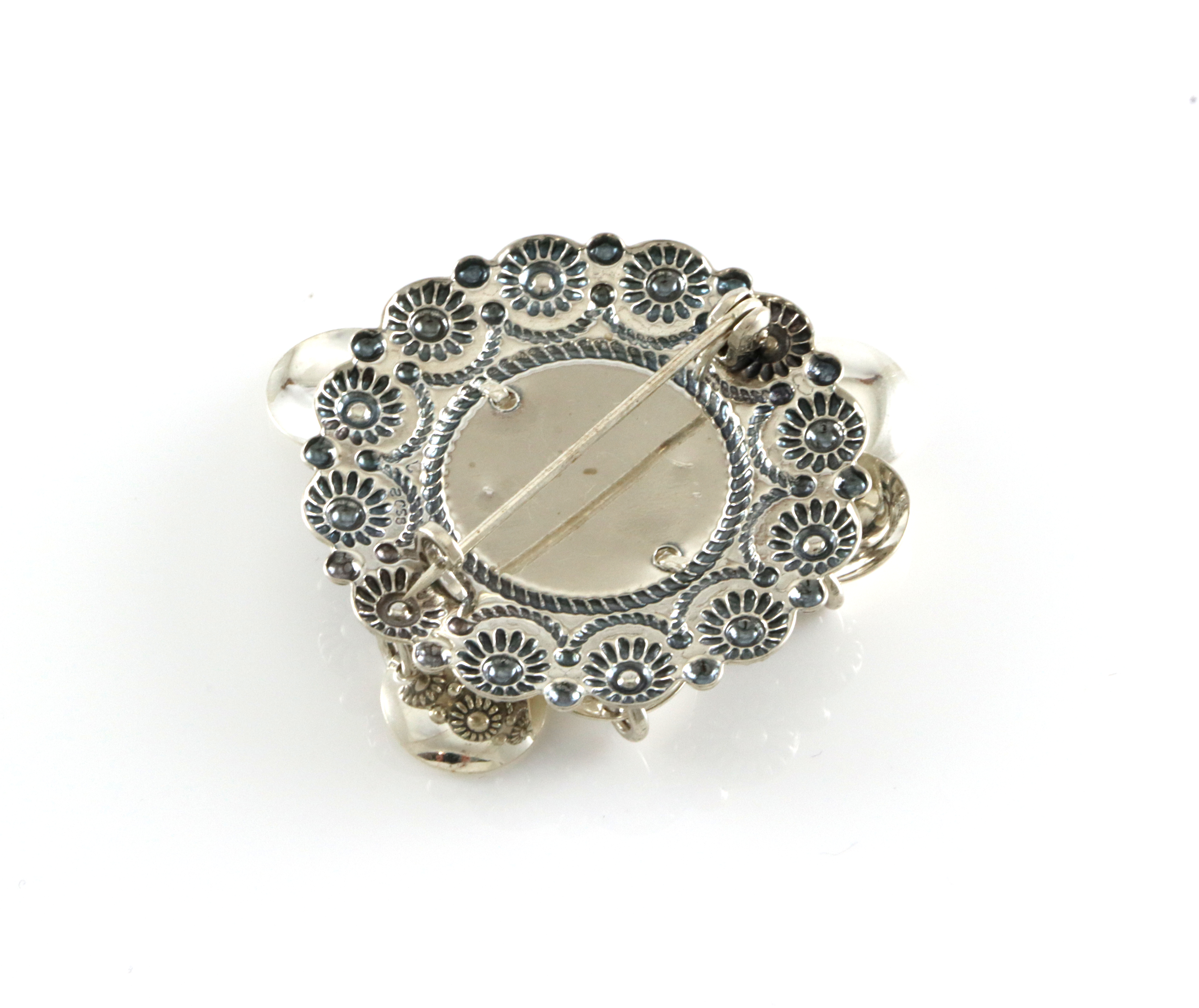 Sølje i sølv Virker å være ustemplet, men testet som sølv. Filigrans i midten. 3,4 x 3,4 cm