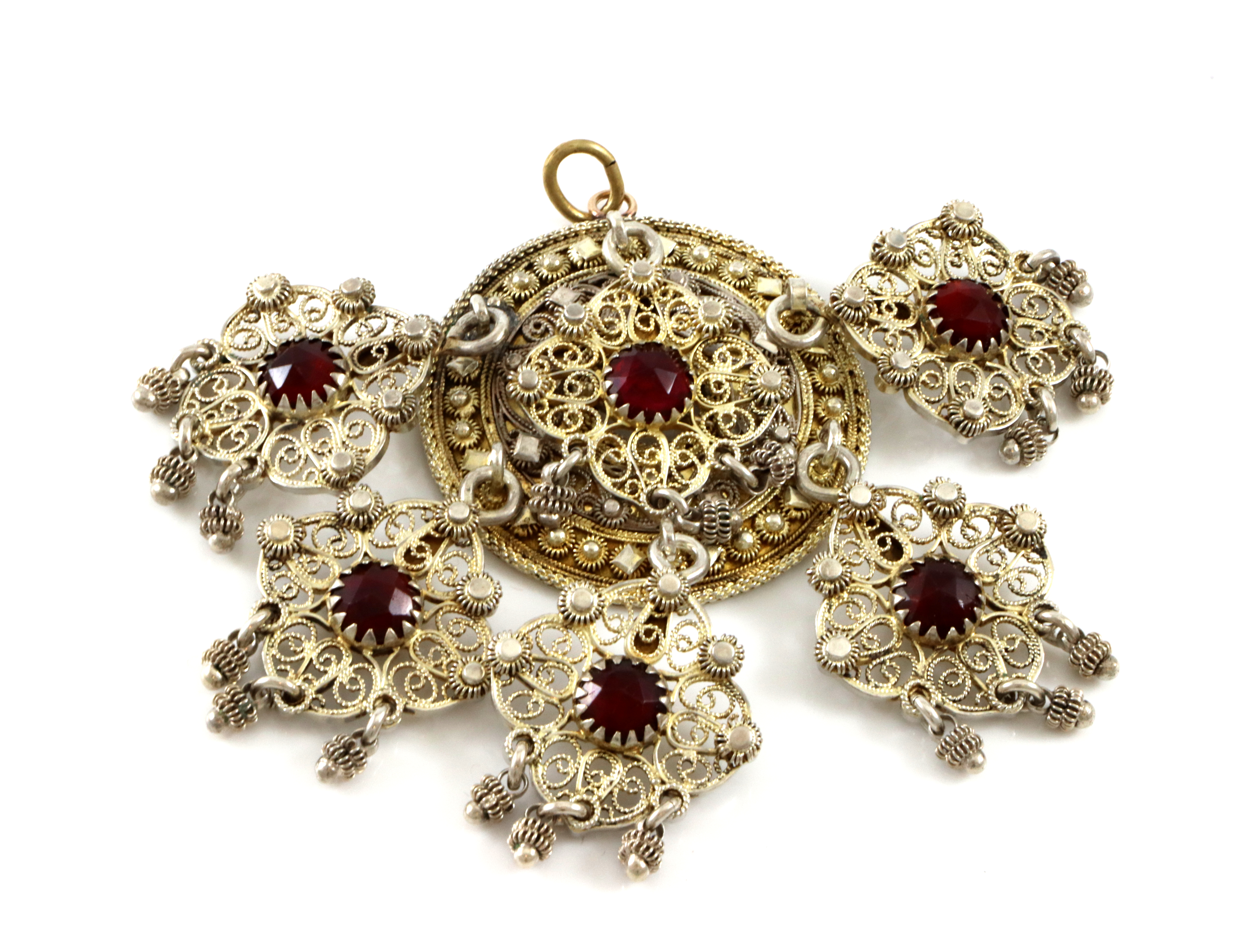 Antikk sølje omgjort til anheng/agnus dei. 13 1/4 sølv med røde steiner