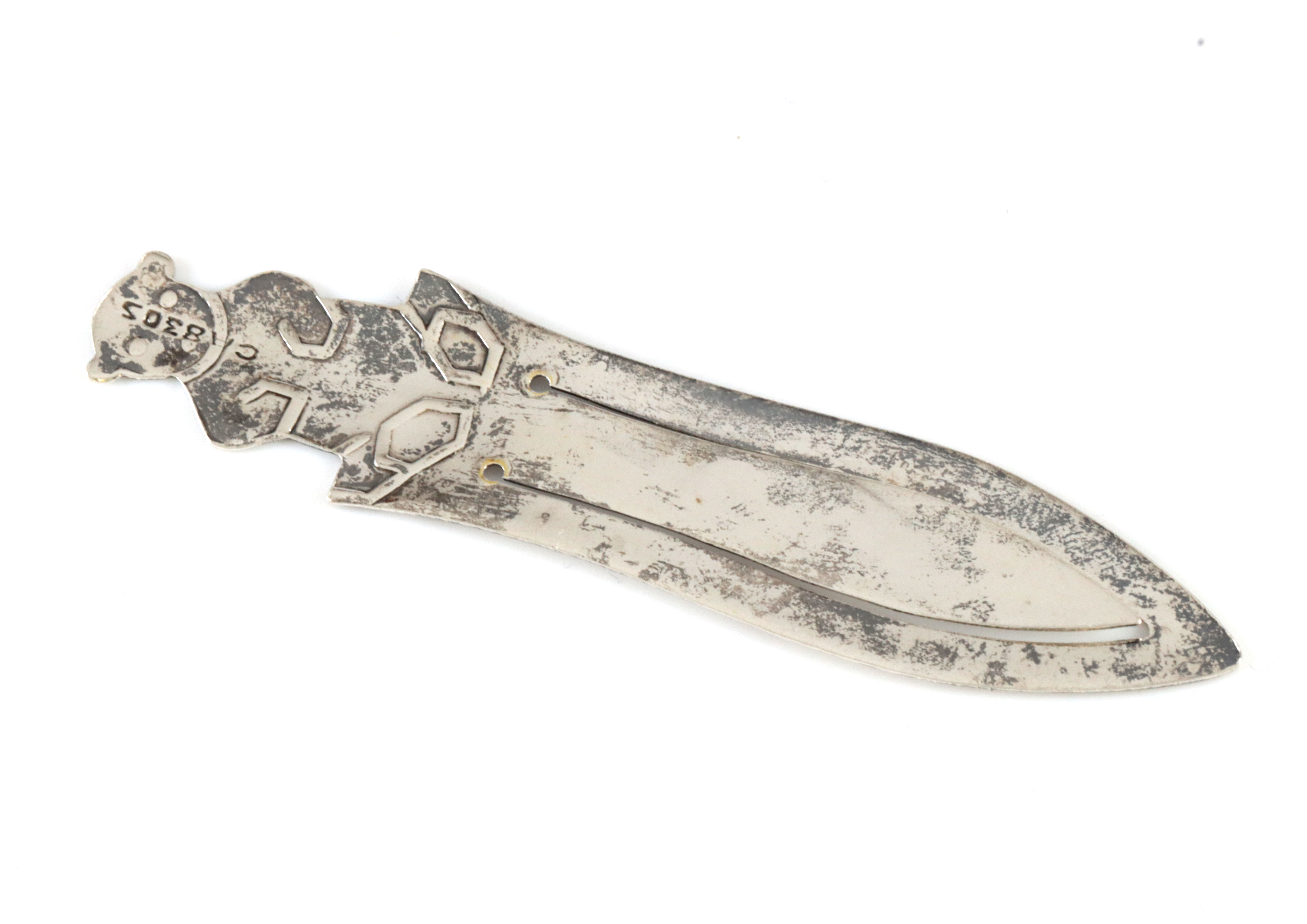 Bokmerke i sølv med motiv av bamse, ukjent produsent. 6,0 x 1,3 cm