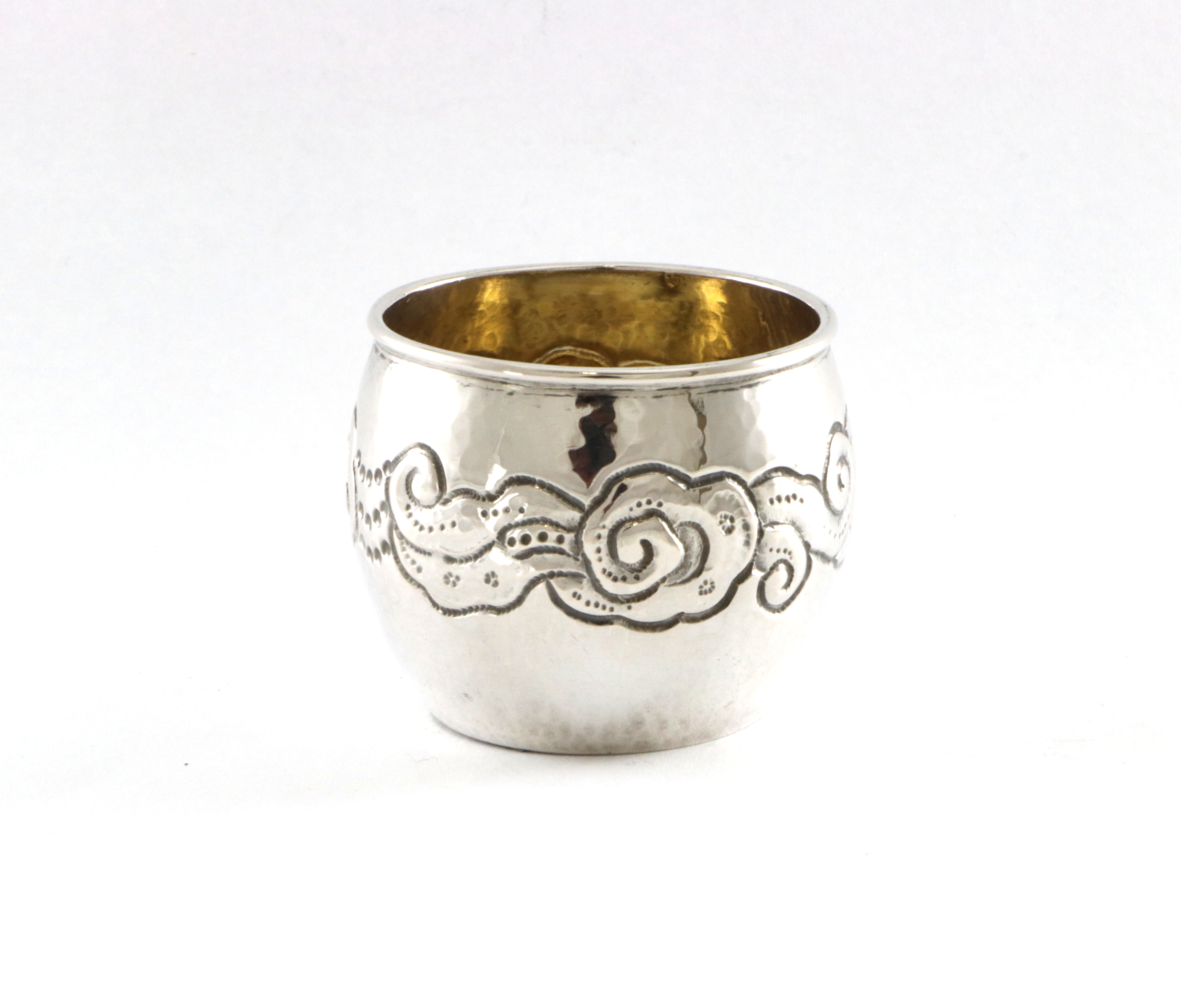 Hamret jugend tomling/kopp fra Magnus Aase, Bergen Høyde: 35 mm Innvendig forgylling I god stand