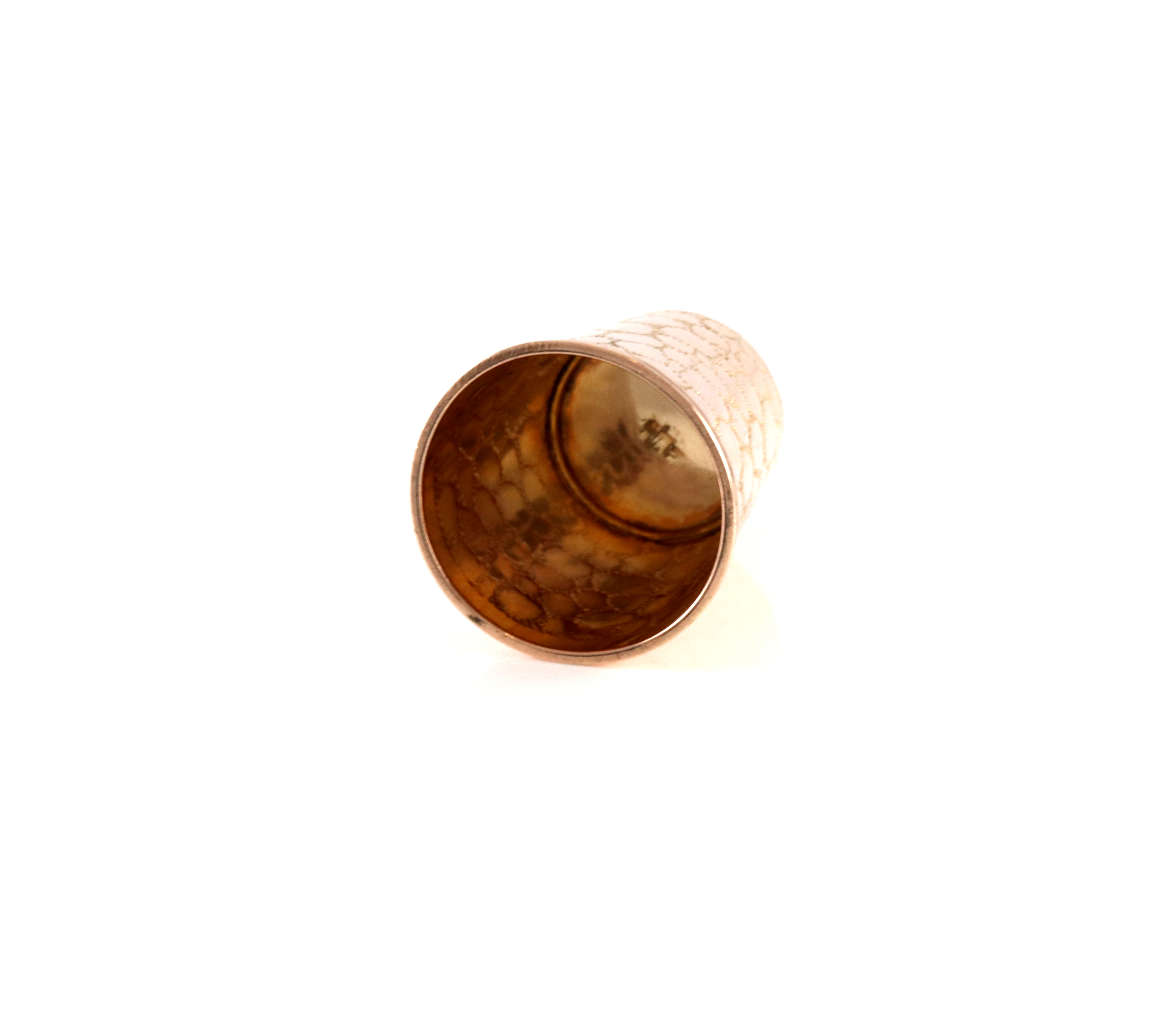 Fingerbøl i 8 karat gull. Str: 20 x 16 mm Ustemplet (?) men testet 2.7 gram I god stand