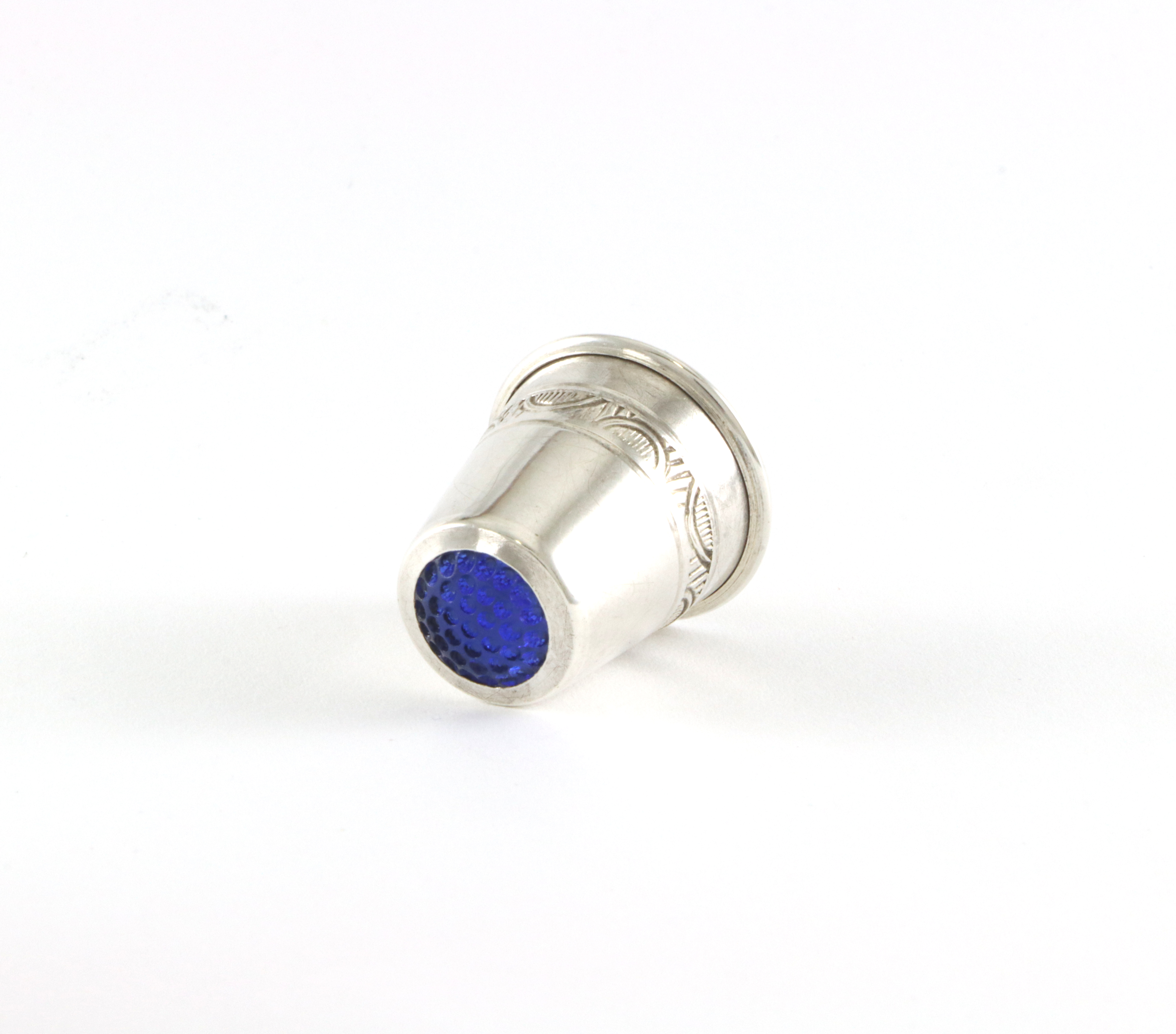 Strøkent fingerbøl i 830 Sølv med blå stein Nils Elvik Høyde: 20 mm