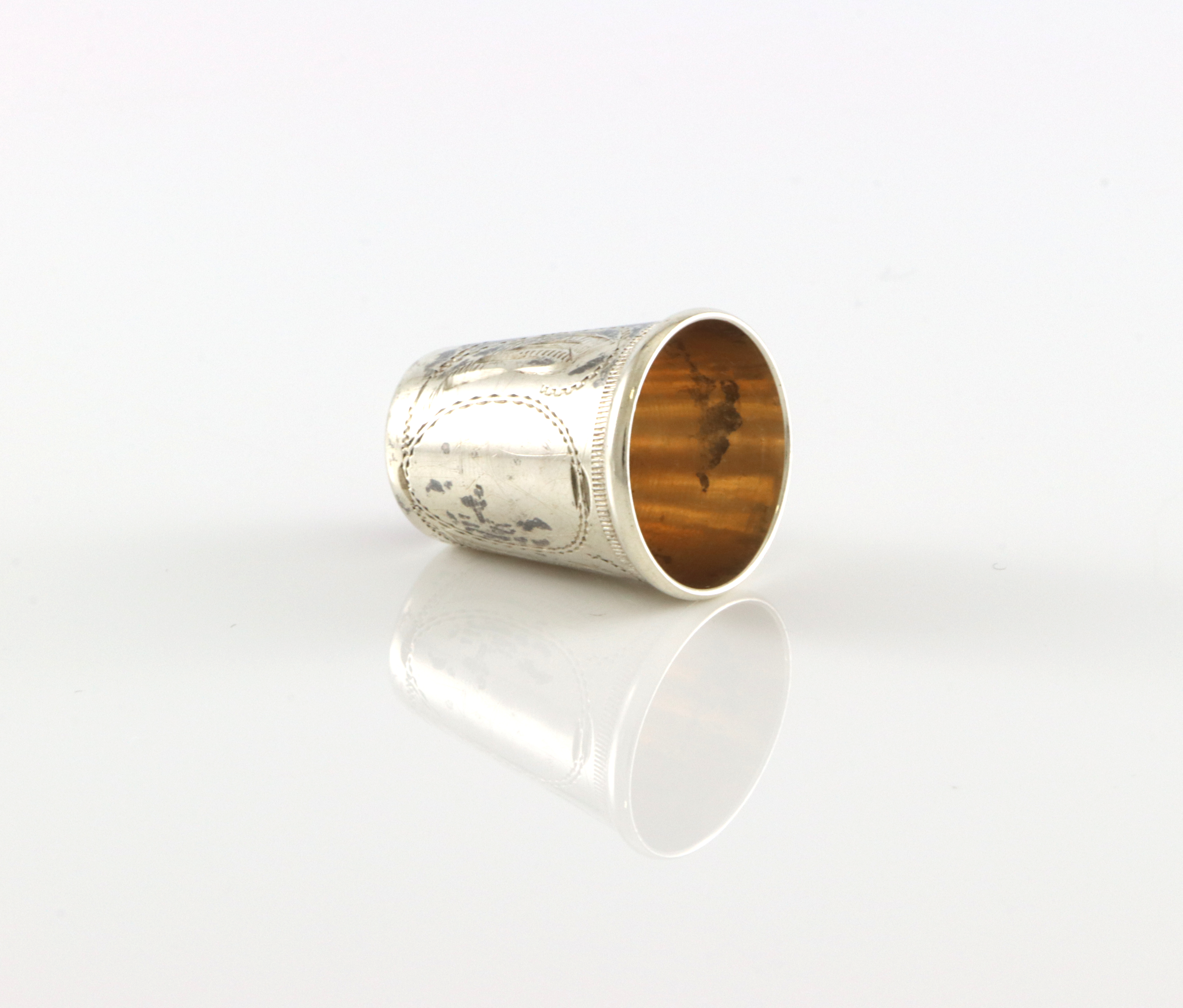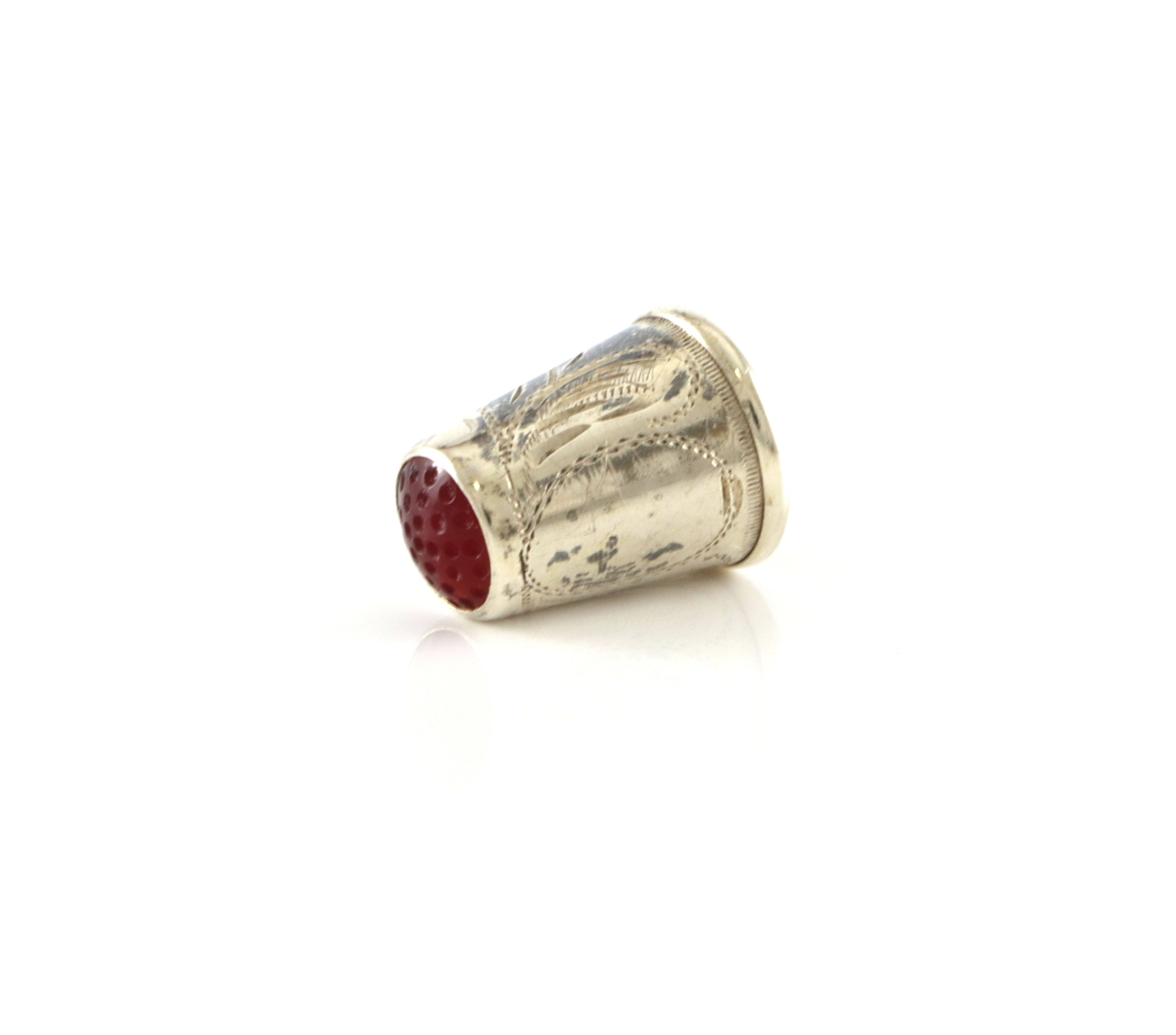 Fingerbøl i sølv med rød topp 2,0 cm høyt 1,6 cm bredt
