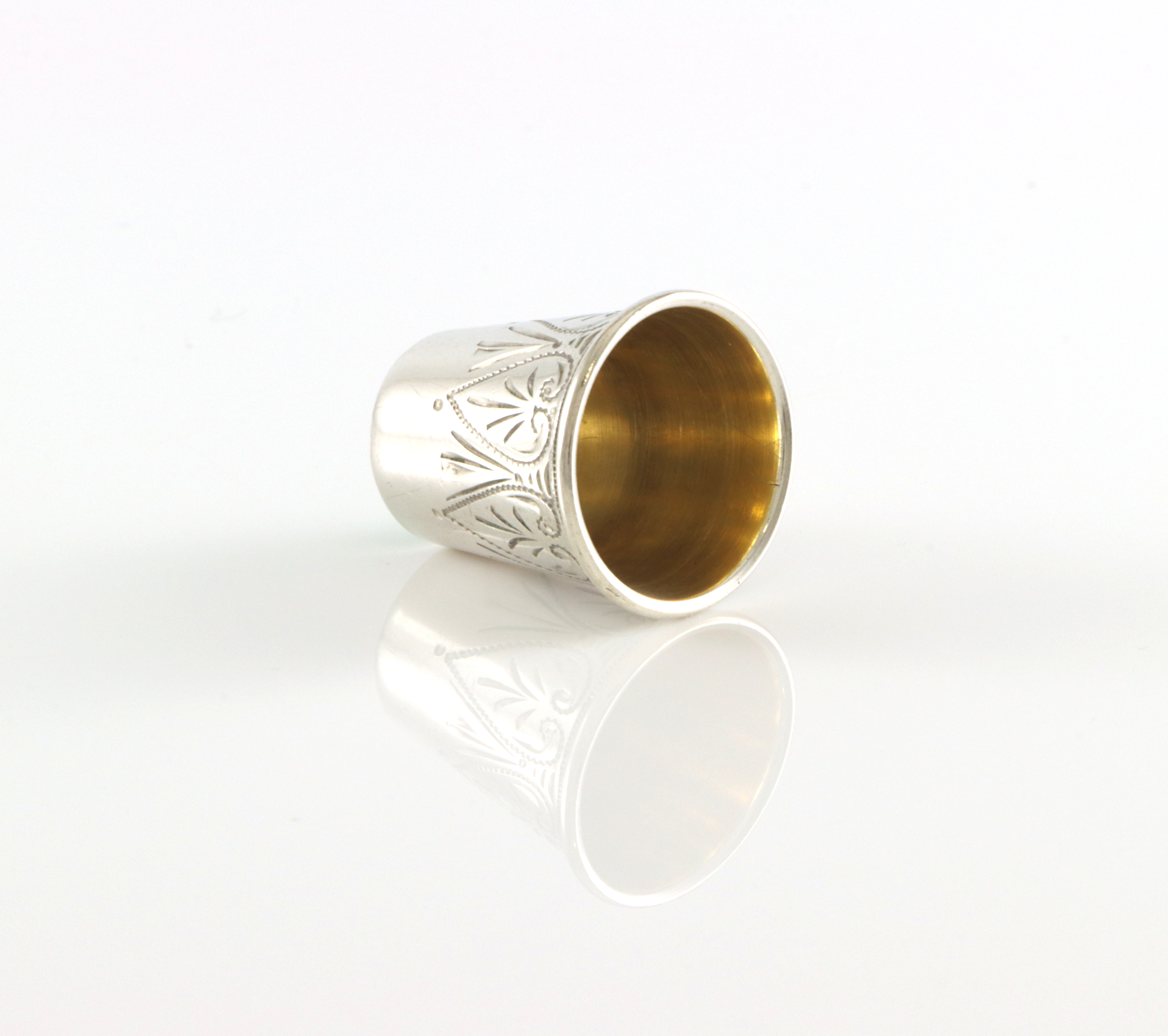 Fingerbøl i sølv med grønn topp 2,0 cm høyt 1,7 cm bredt