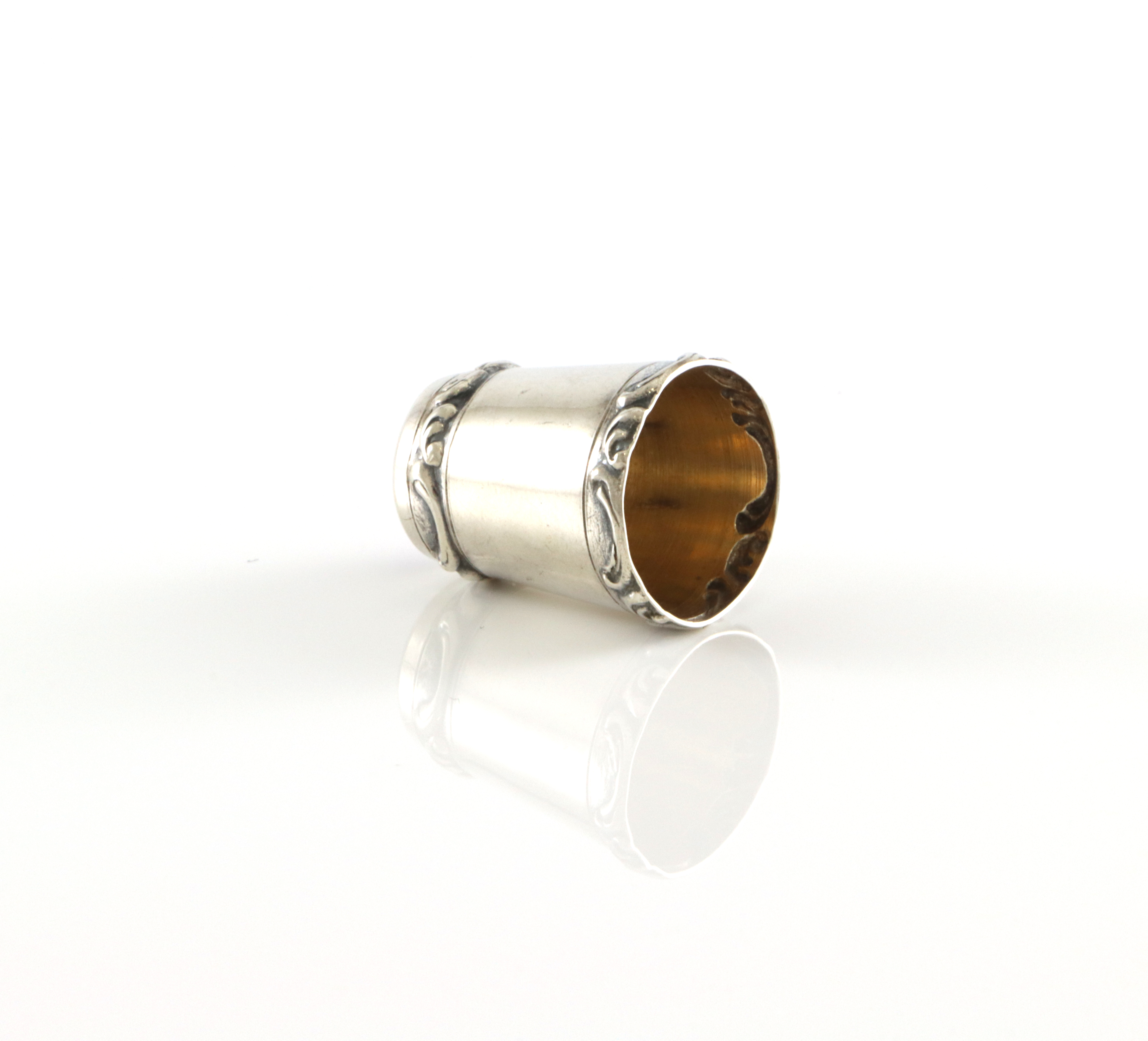Fingerbøl i sølv med lilla topp 1,9 cm høyt 1,5 cm bredt