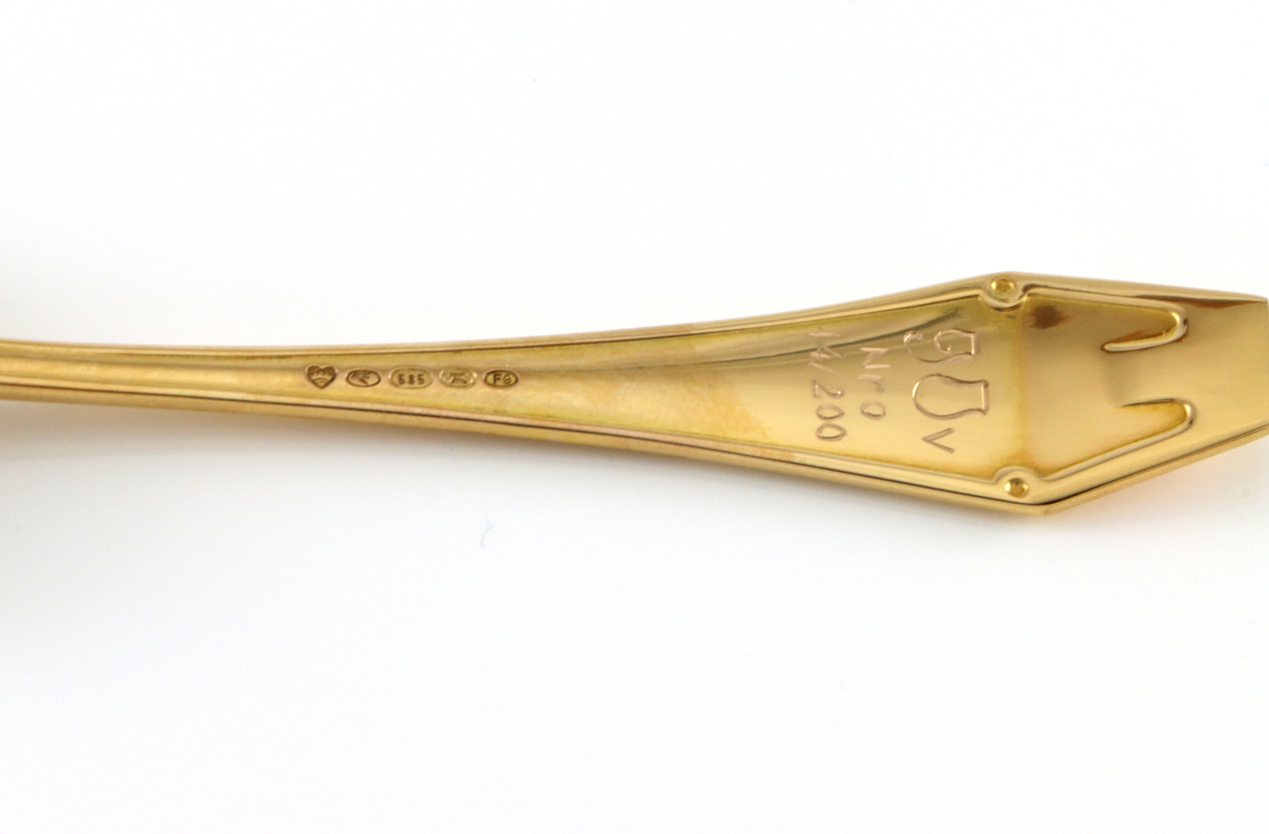 Kaviarskje i 14 K gull Laget i forbindelse med Finlands 90-års selvstendighets jubileum i 2007 Finland-Serien Lengde: 9,5 cm Vekt: 11,3 gram Nummerert (14 av 200) Strøken og i original eske