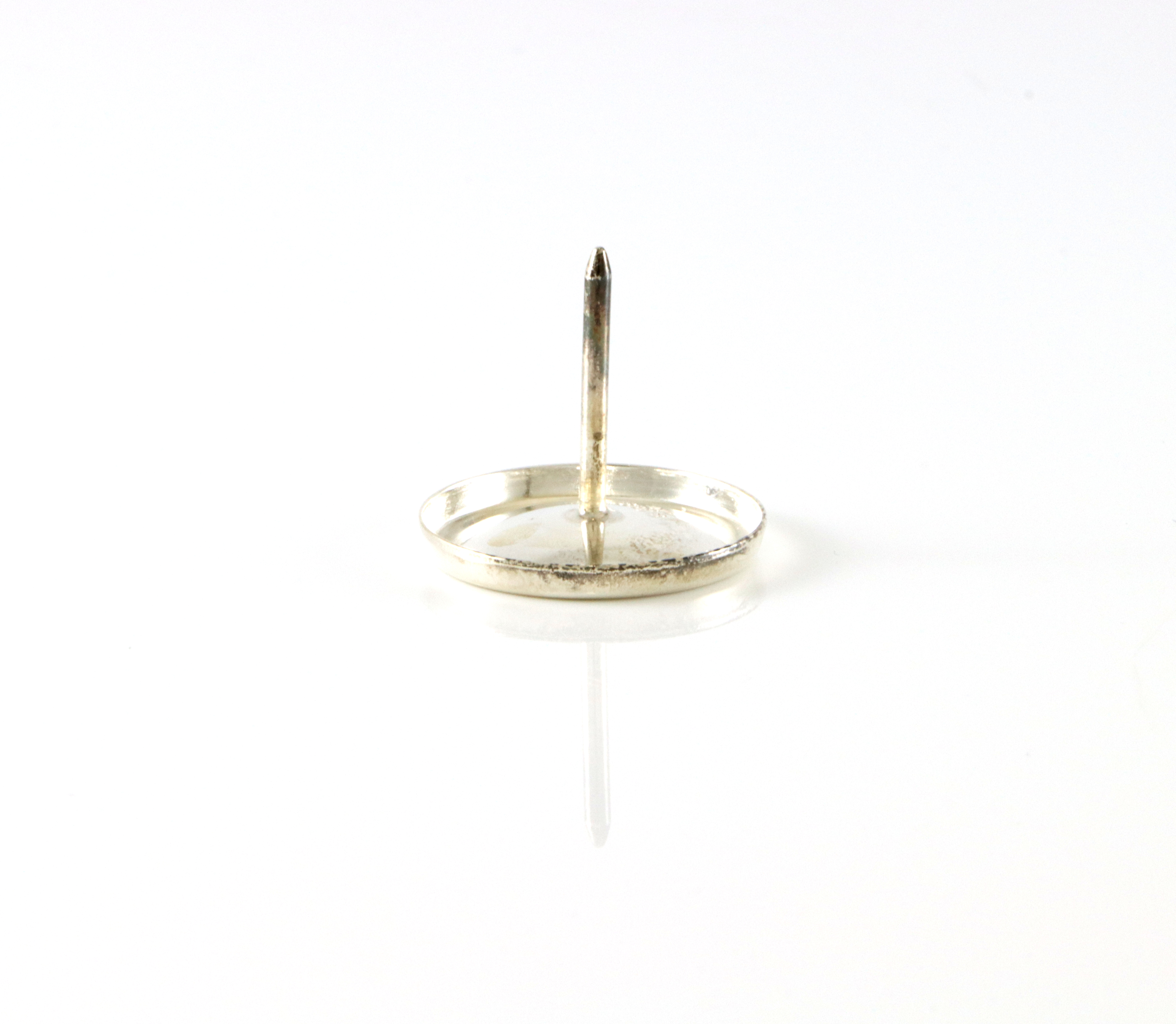 Osteknapp i sølv. Produsert av Arne Nordlie. Selve knappen er 2,3 x 2,3 cm