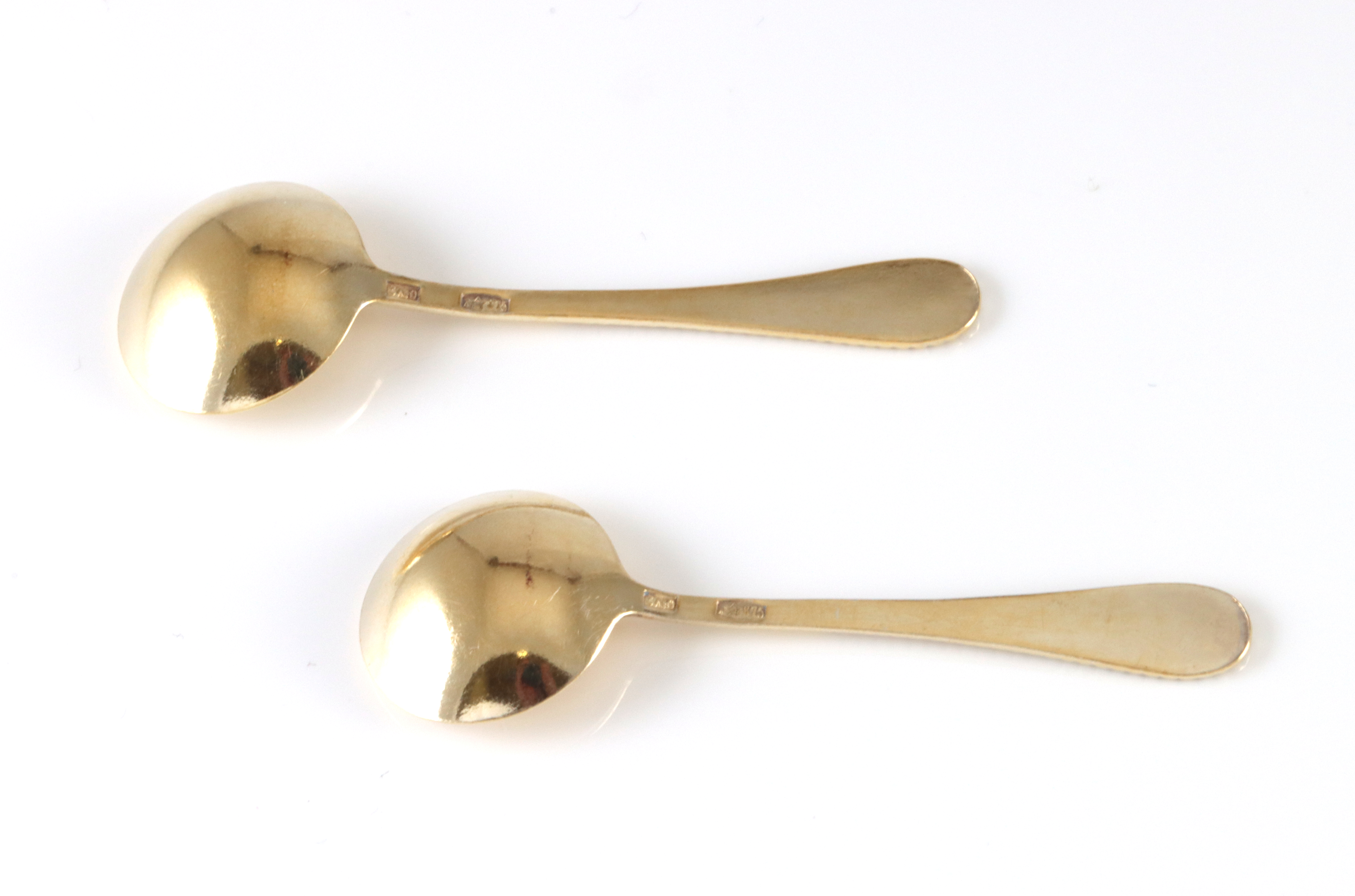 Lot med to stk emaljerte saltskjeer i sølv. Av Østeuropeisk opprinnelse 5,2 cm lange
