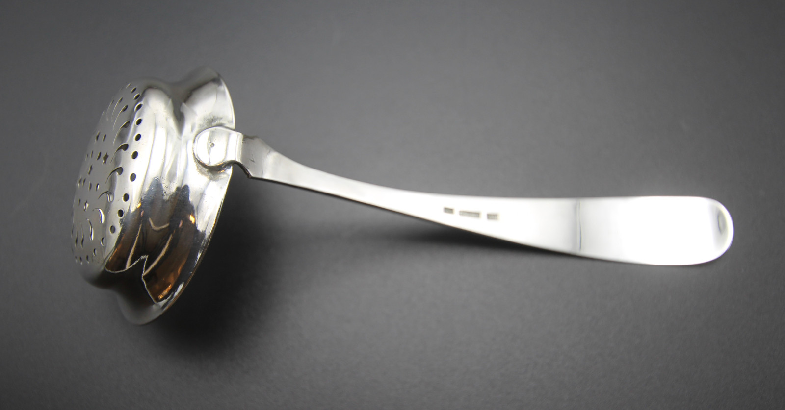 Antikk strøskje produsert av T.Børs i Bergen, rundt 1860 tallet. Lengde 16,8 cm Bredde 6,5 cm Prikkgravert monogram IE(?) God stand