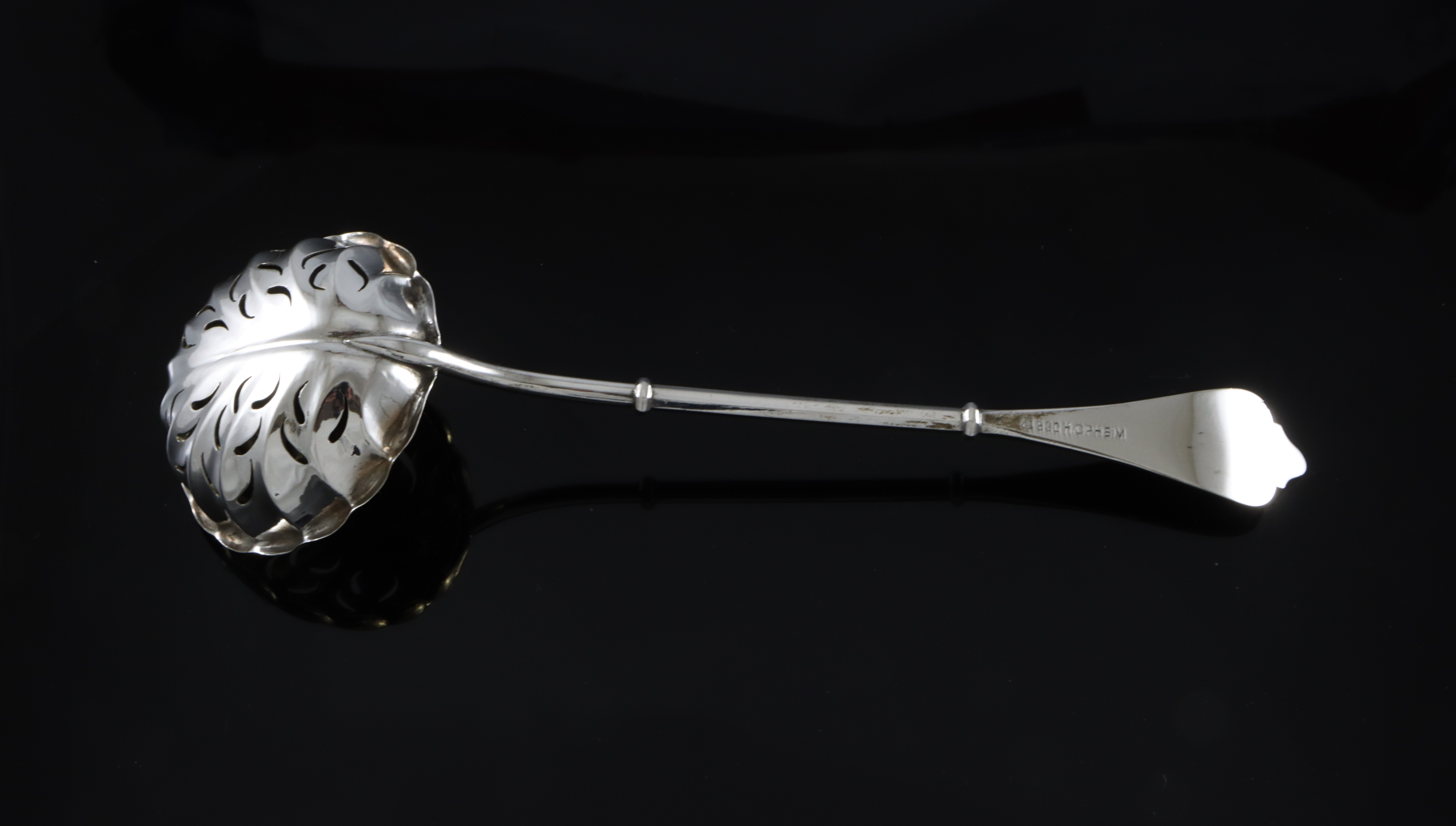 Svært pen strøskje i 830 Sølv Mester: H. Opheim Lengde: 18 cm I svært god stand