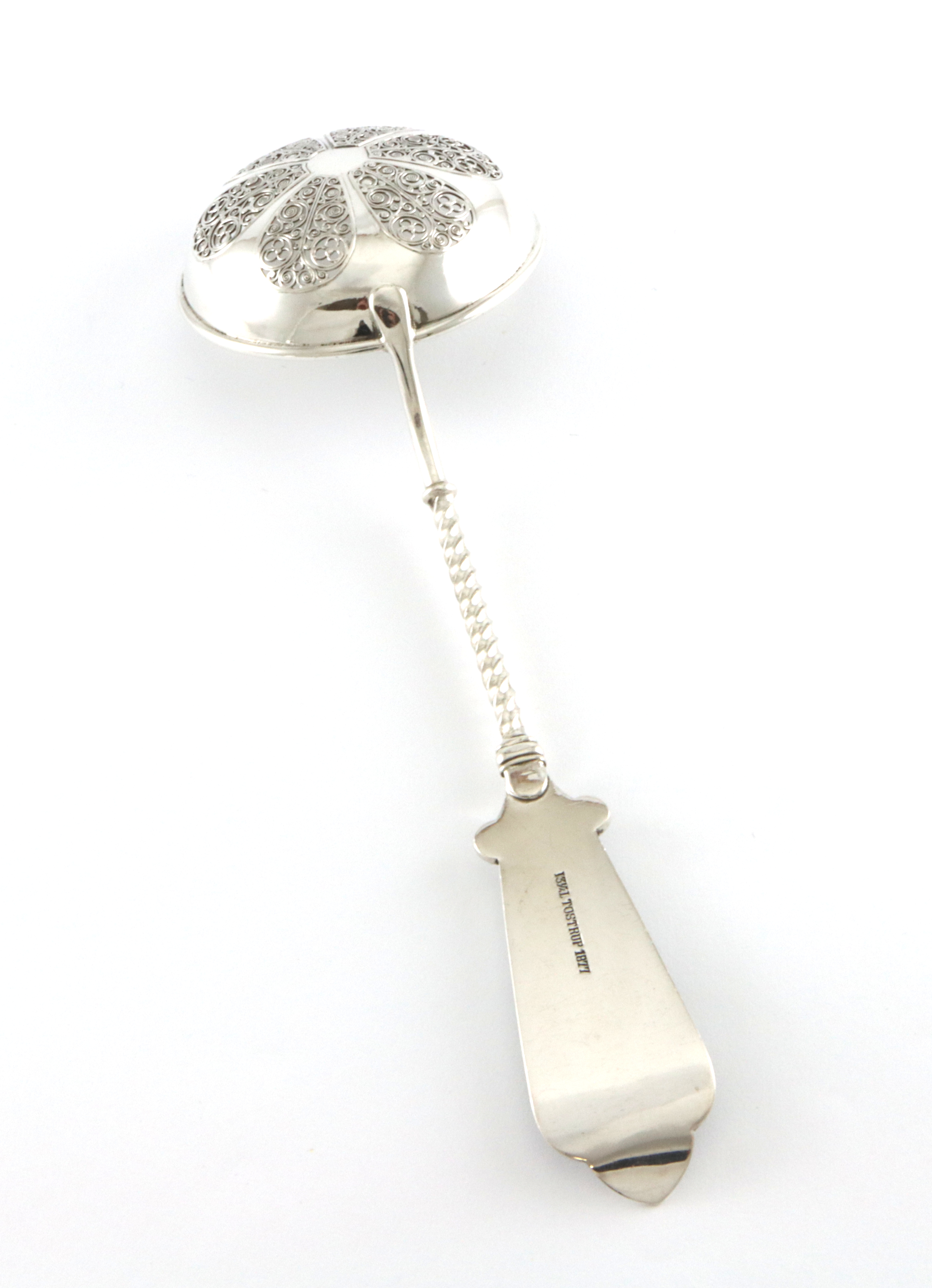 Sukkerstrøskje fra Tostrup, 1877 13 1/4 L Lengde: 18,4 cm I god stand