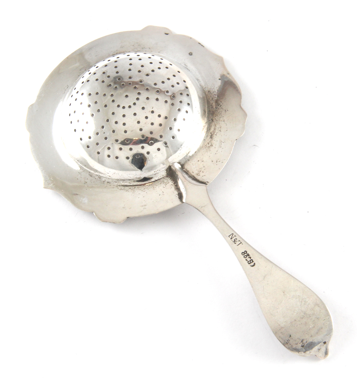 Tesil i sølv i jugendstil med siseleringer, produsert av Th.Marthinsen. 13,9 cm lang og 7,5 cm bred.