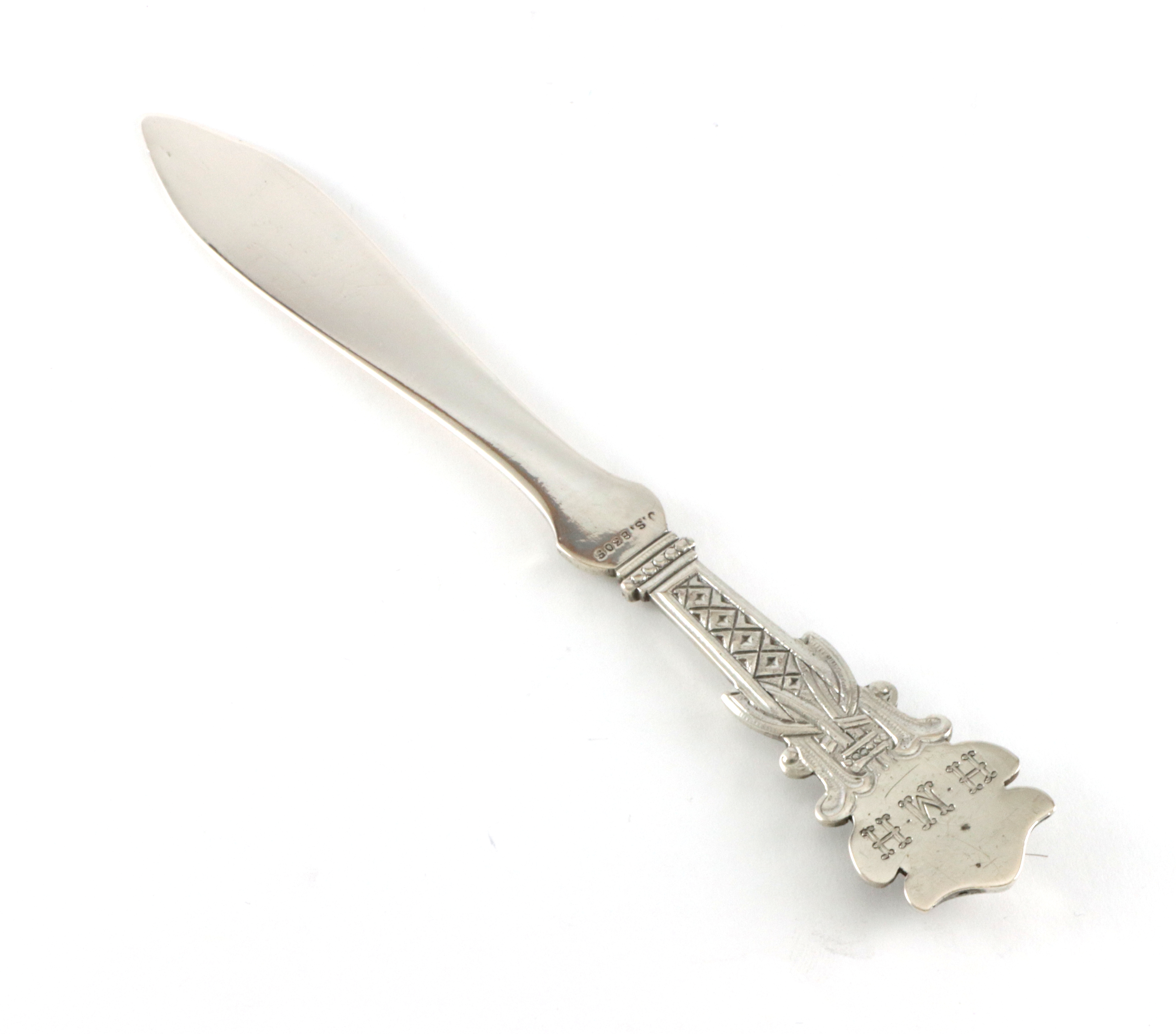 Josef Smejda. Brevåpner i 830 Sølv med domkirkehode Lengde: 16,5 cm Gravert monogram "H.M.H"