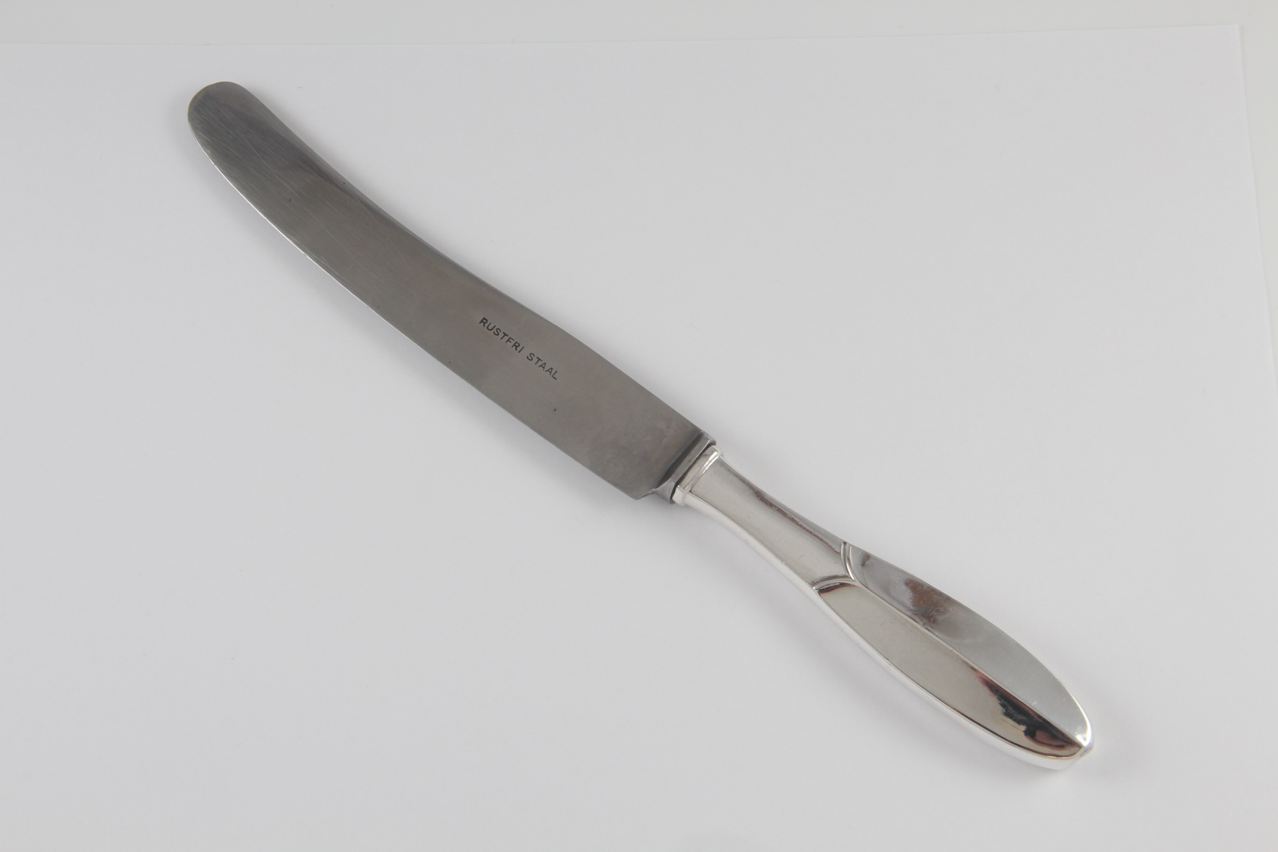 2 slitne knivermed forskjellige blader. Knivskaftene er like lange, men knivene måler 23,6 og 24,6 cm. Skaftene har bulker og riper, samt at en av knivene har hakk i bladet. Men er sjeldne kniver så en rimelig mulighet for å skaffe seg kniver i dette mønsteret.