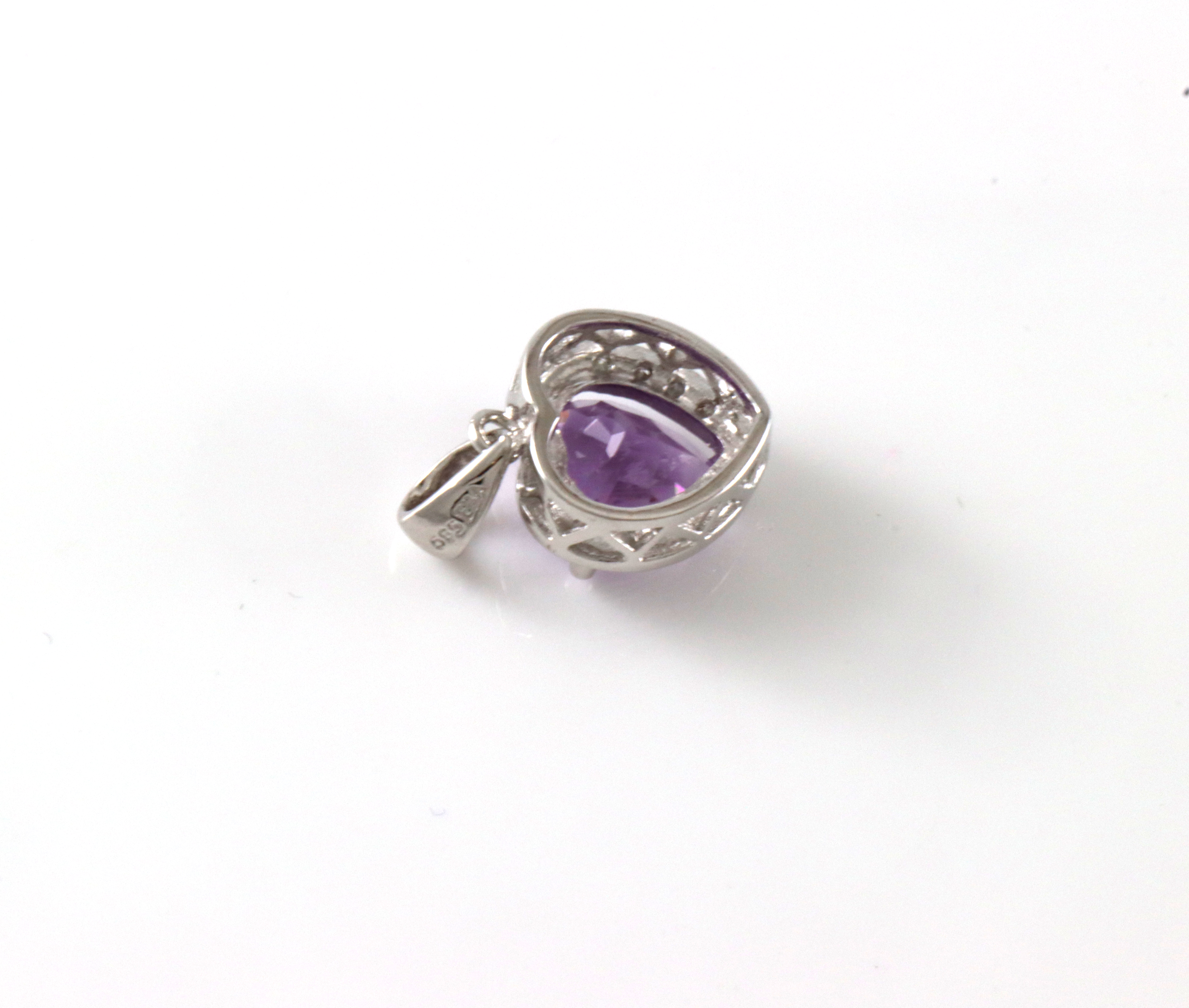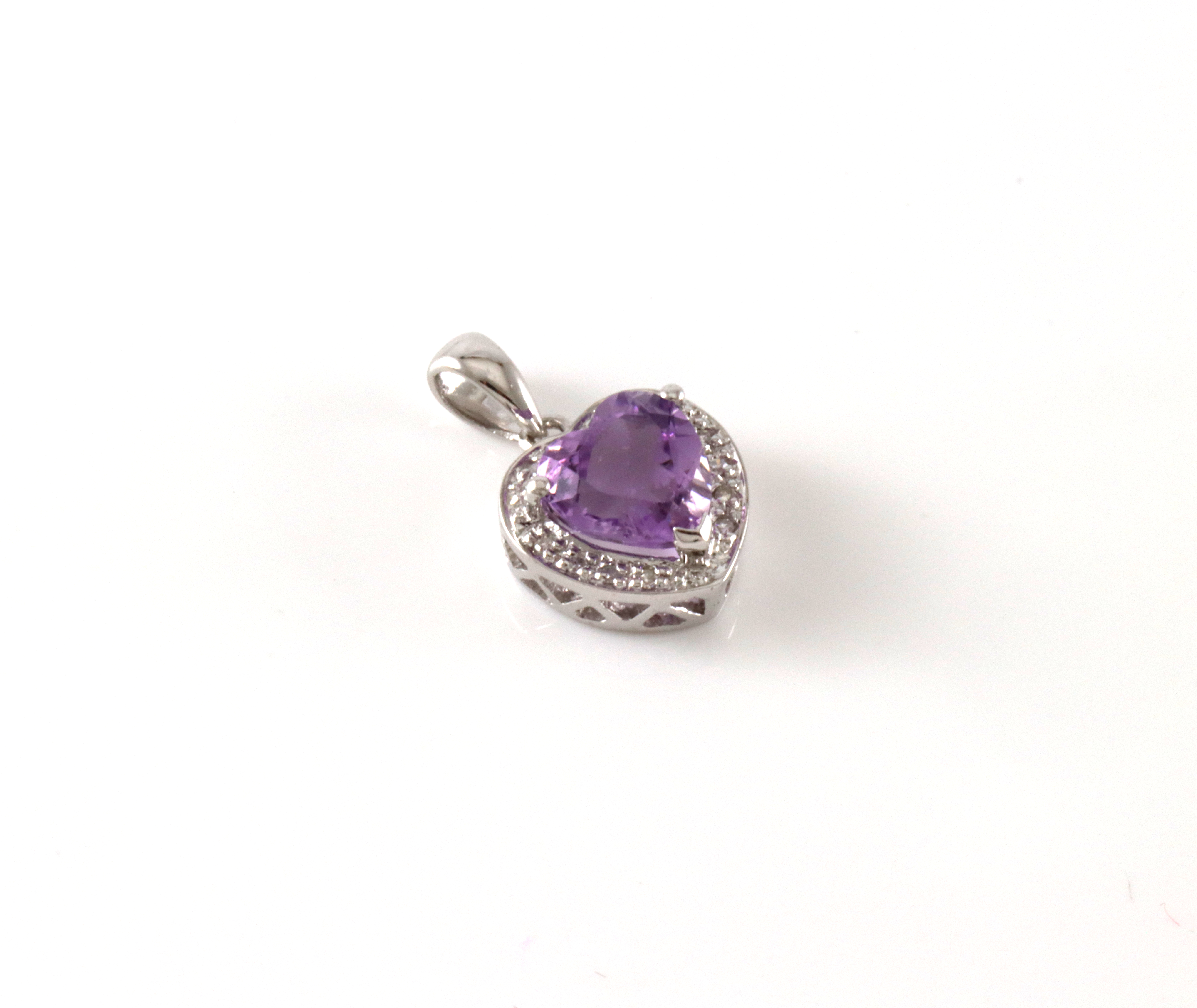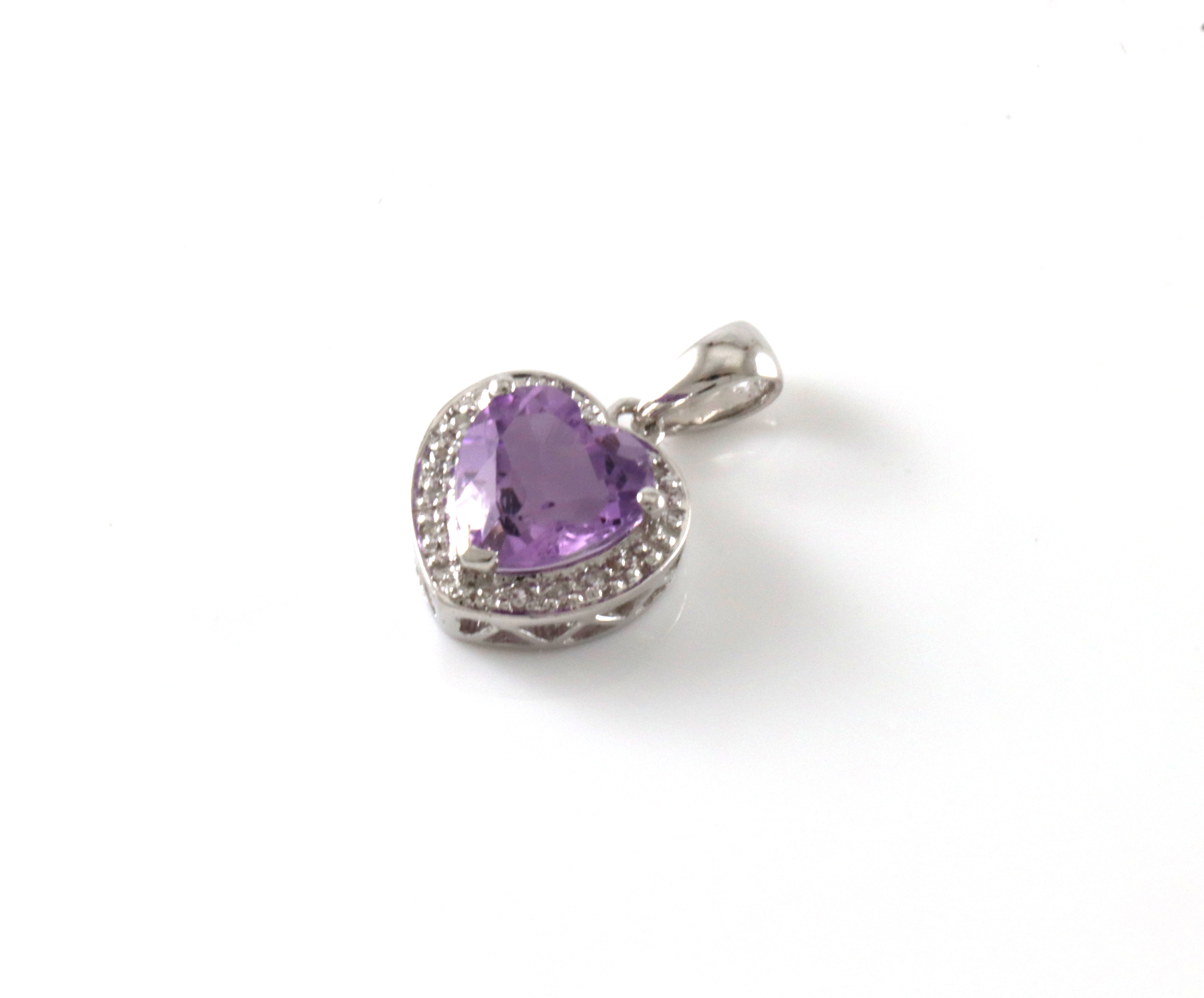 Nydelig anheng med hjerteformet ametyst og diamantstrø