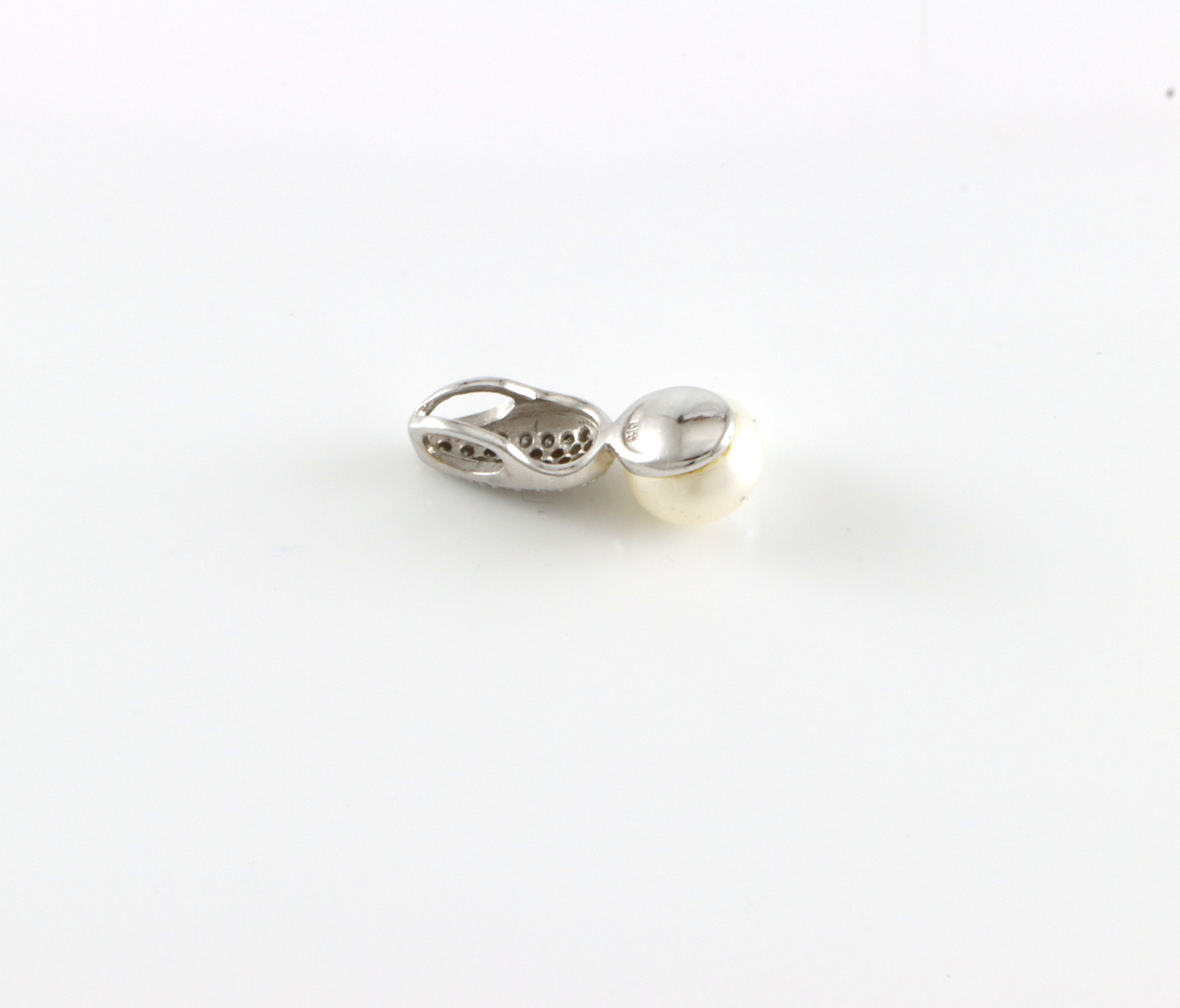 Pent anheng med perle og diamantstrø på tot 0,10 ct