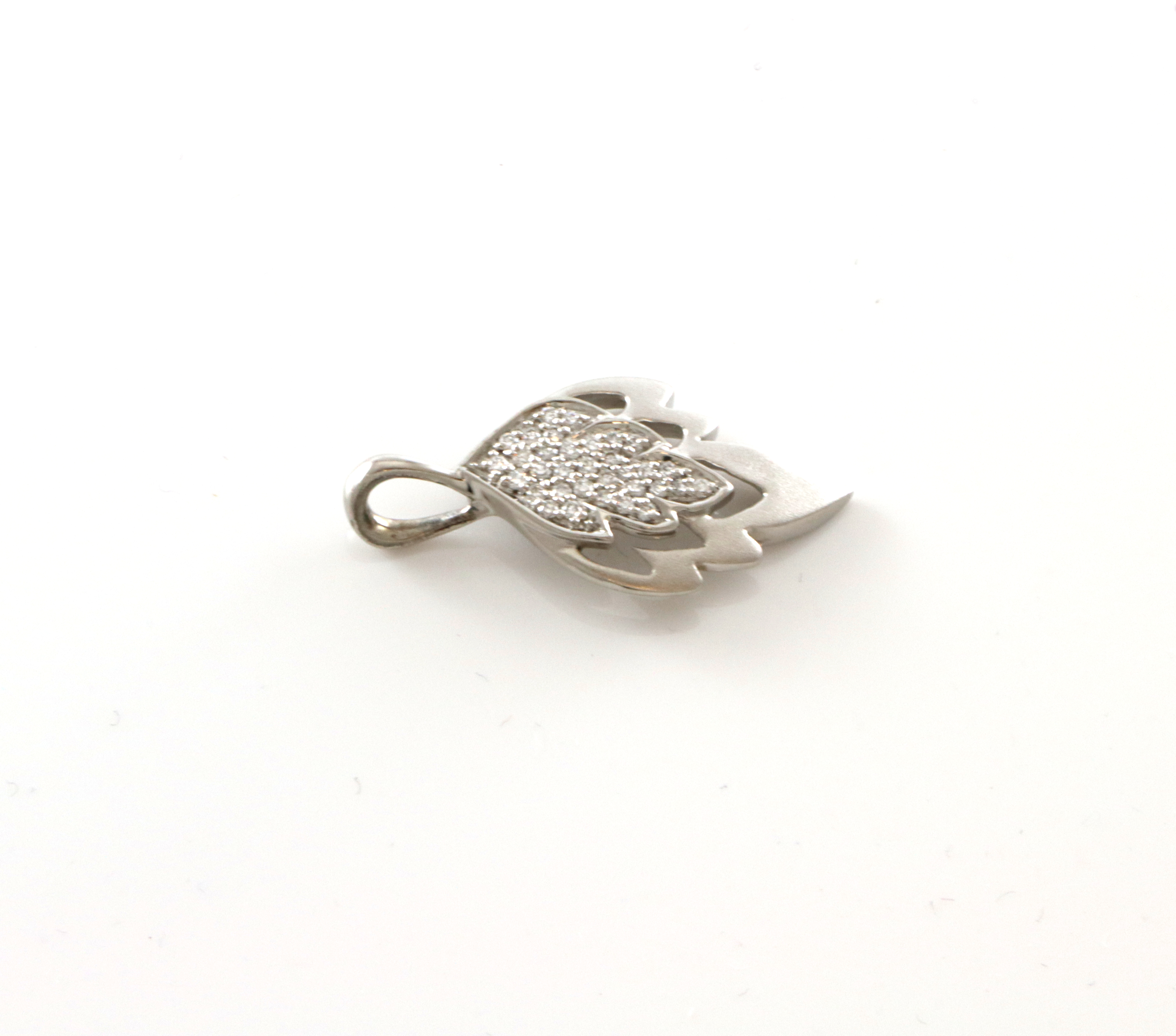 Anheng med små diamanter i platina Str: 27 x 13 mm Vekt: 3,6 gram