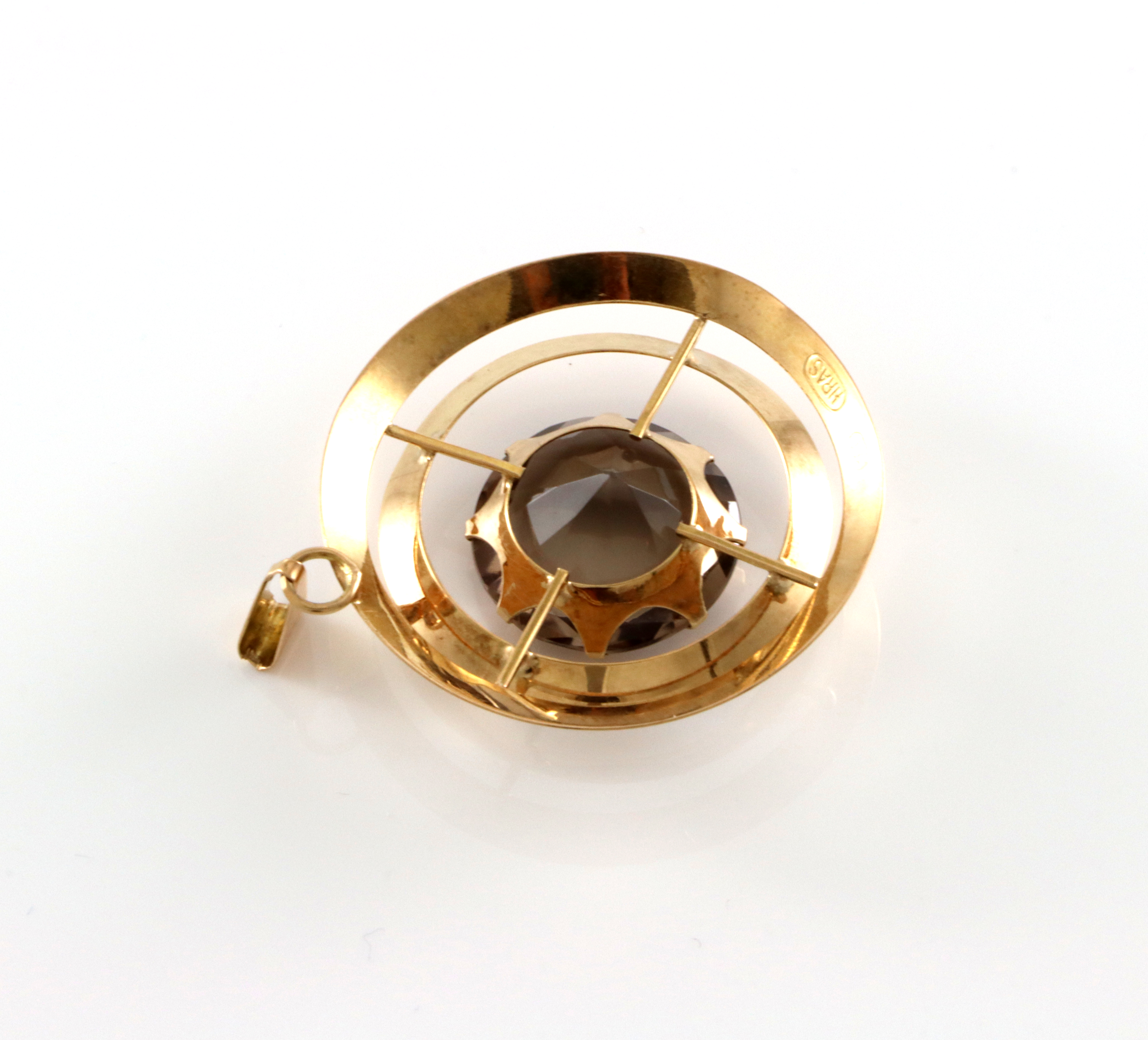 Lekkert retro anheng med røykkvarts. Stemplet Helge Rasmussen, trolig import fra Finland