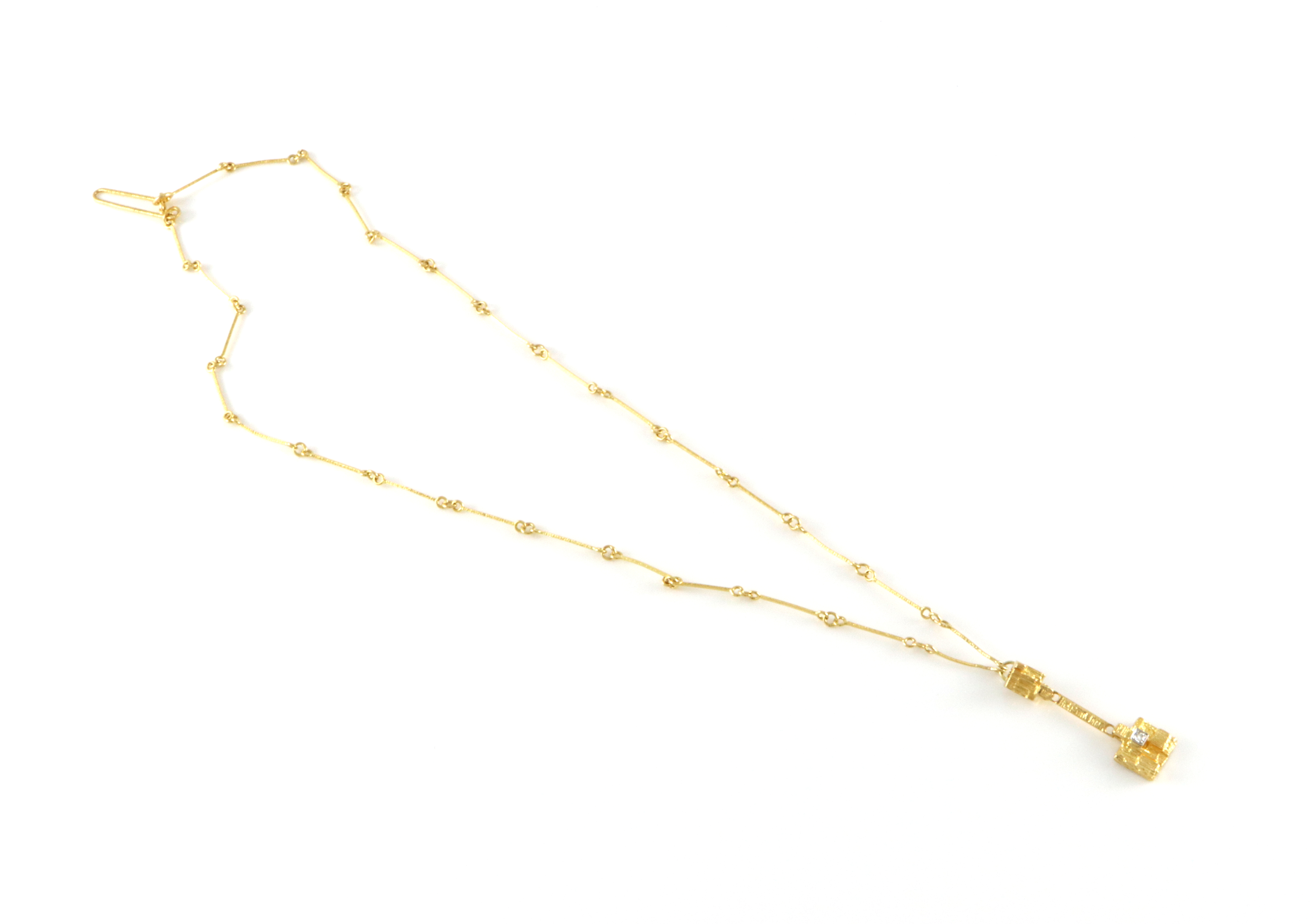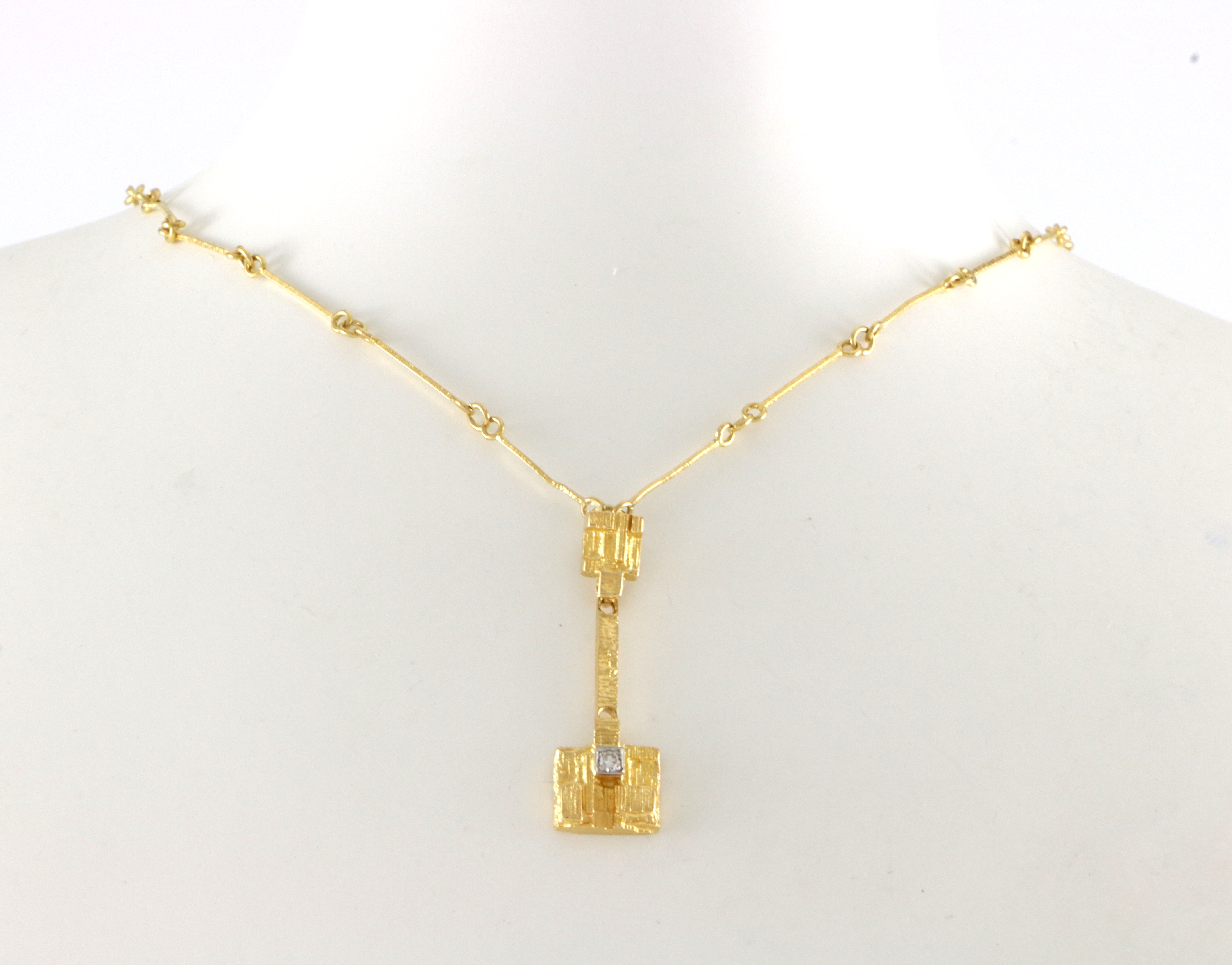 Diamond city collier i 18 K gull med diamant 1978 Str anheng: 28 x 8 mm Lengde lenke: 43 cm Vekt: 4,8 gram