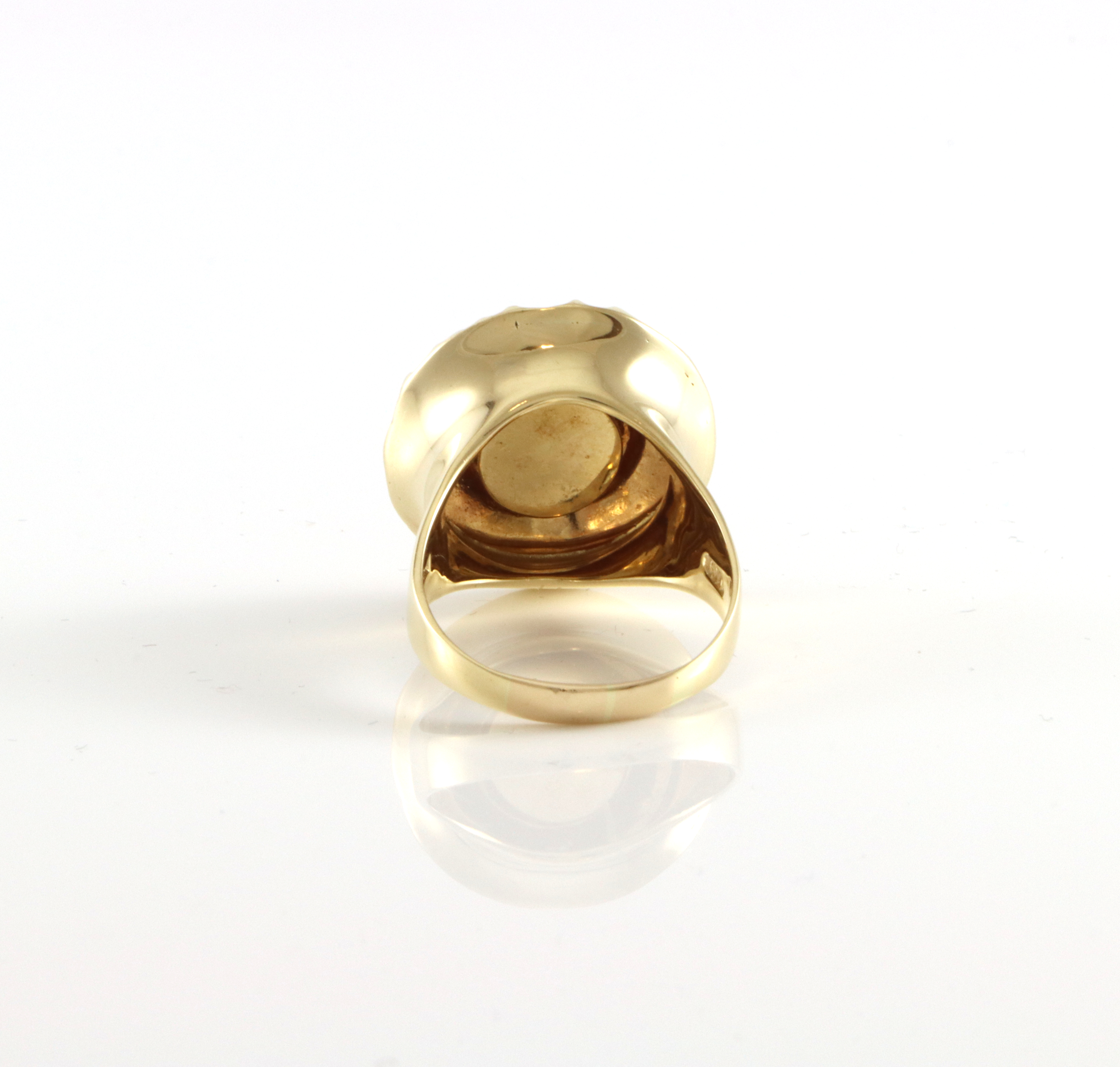Diameter krone: 23 mm Ringstr: 62 Vekt: 16,3 gram Ringen er nok tatt ut en del i størrelse sånn at skinnen er noe oval og ujevn