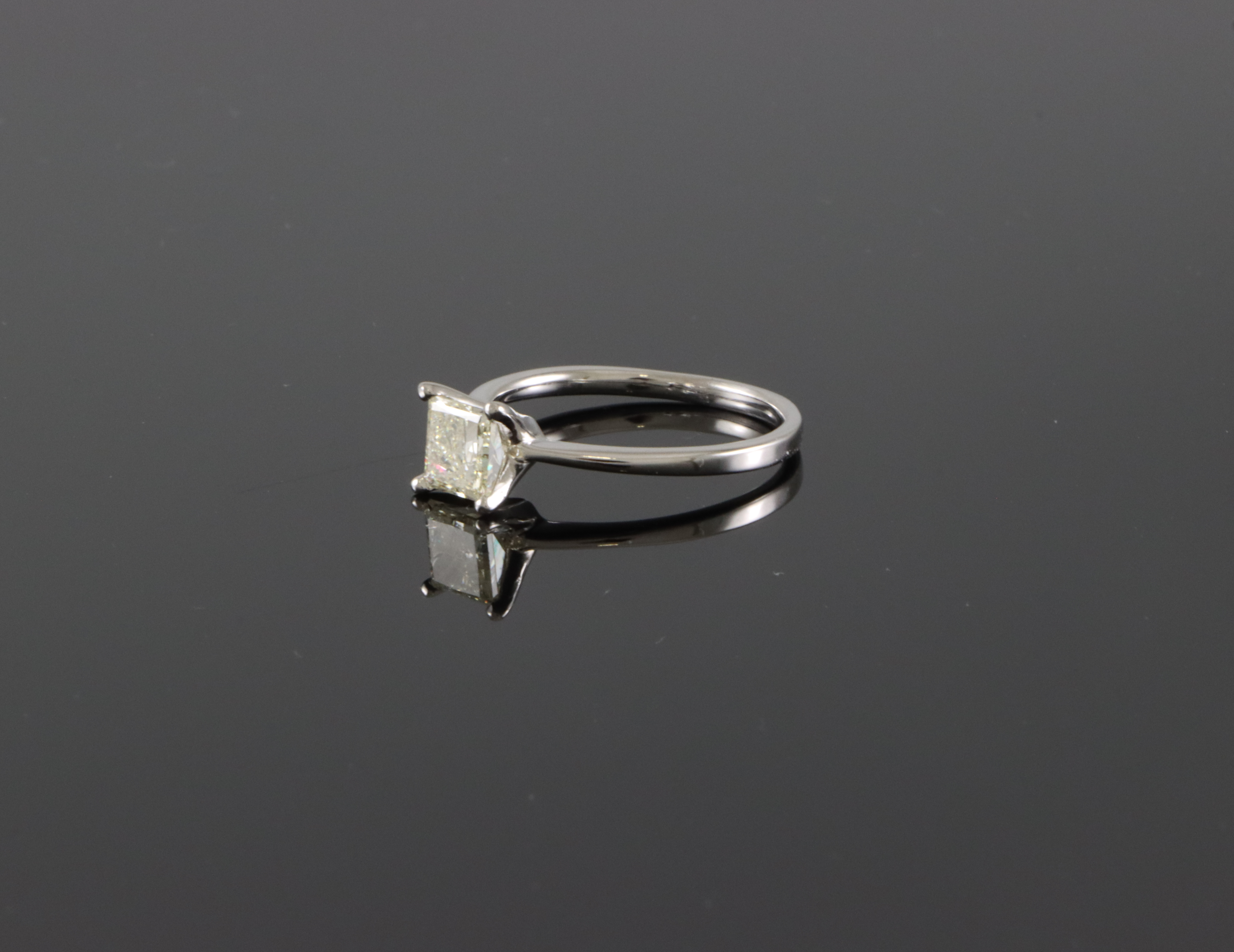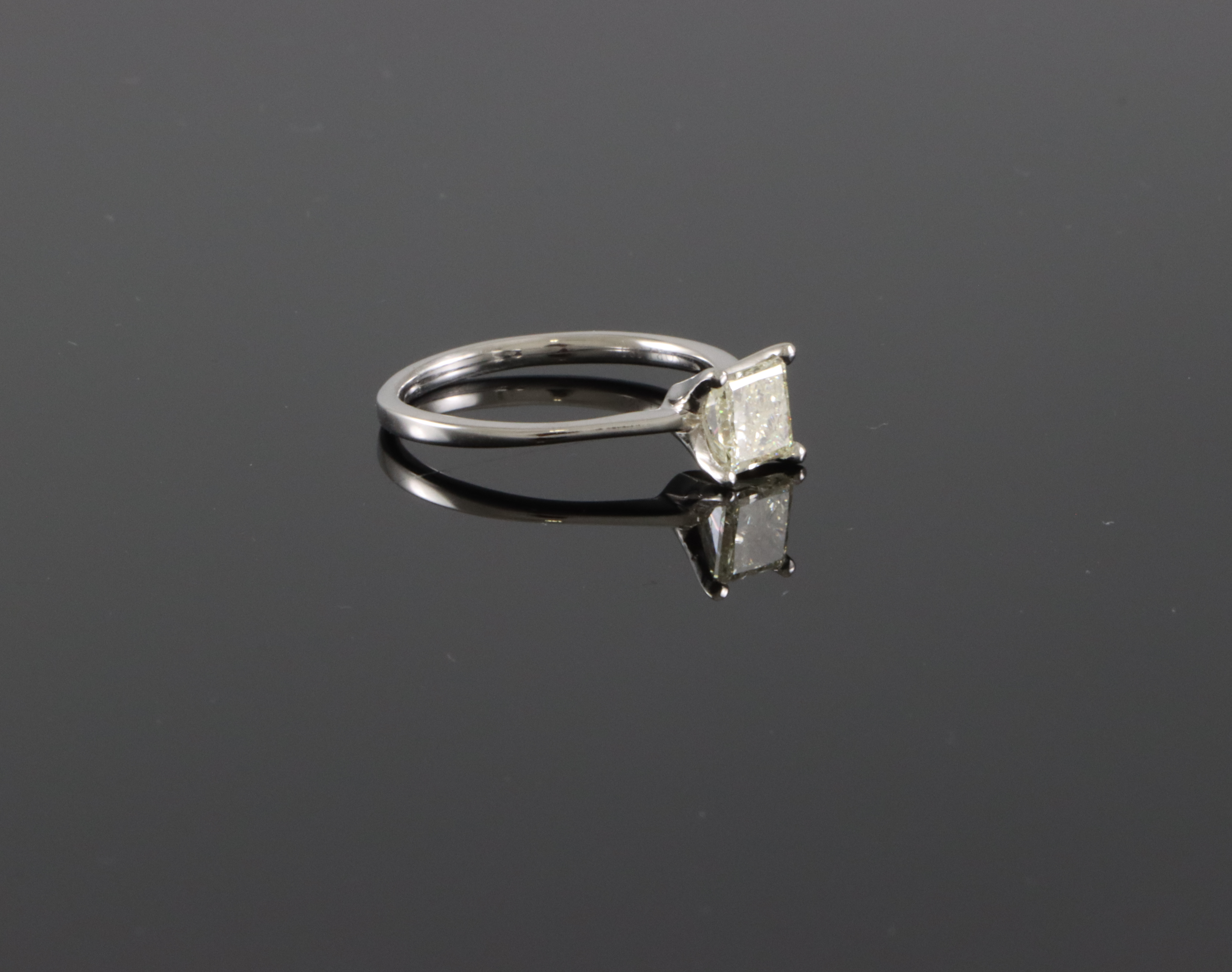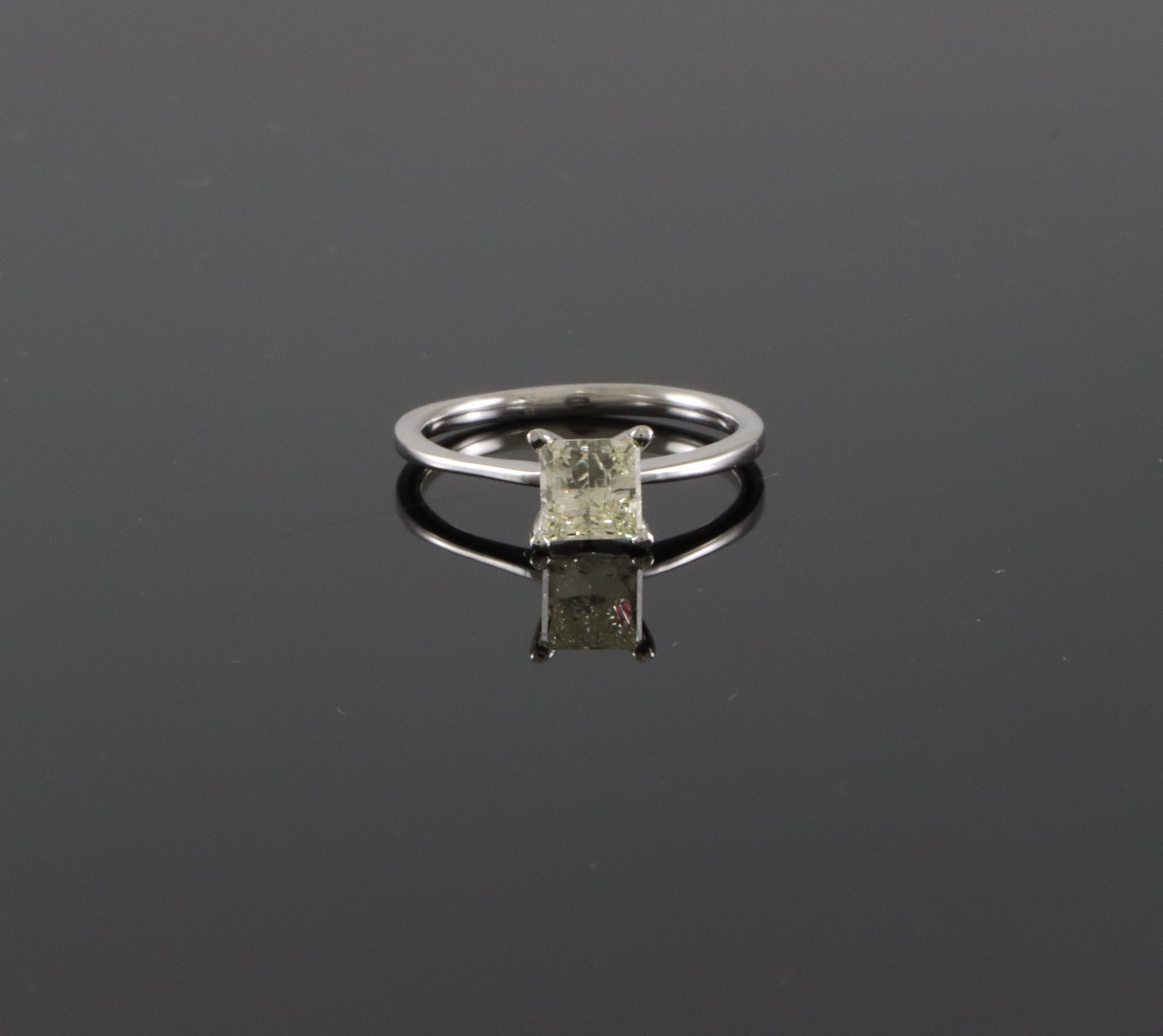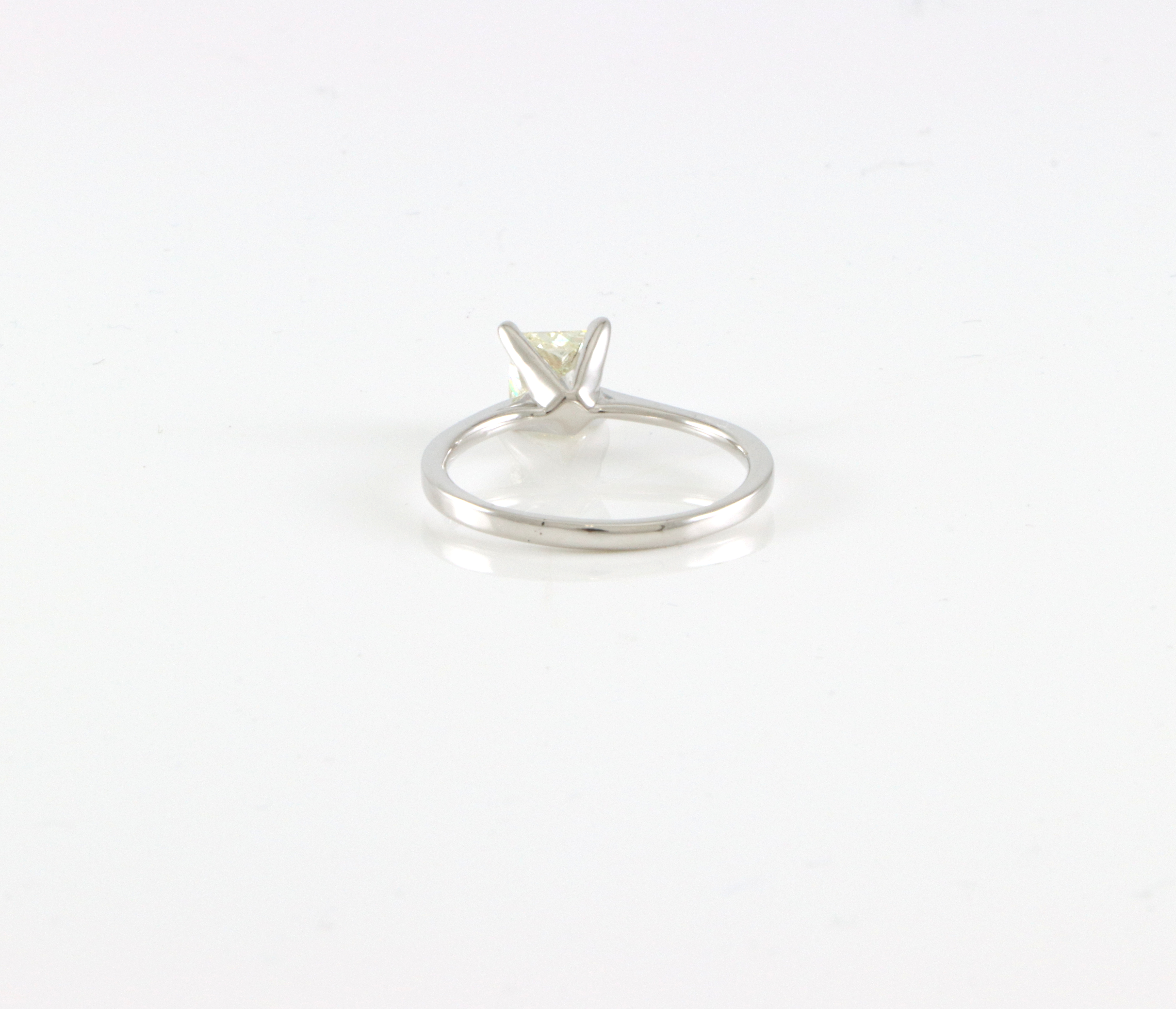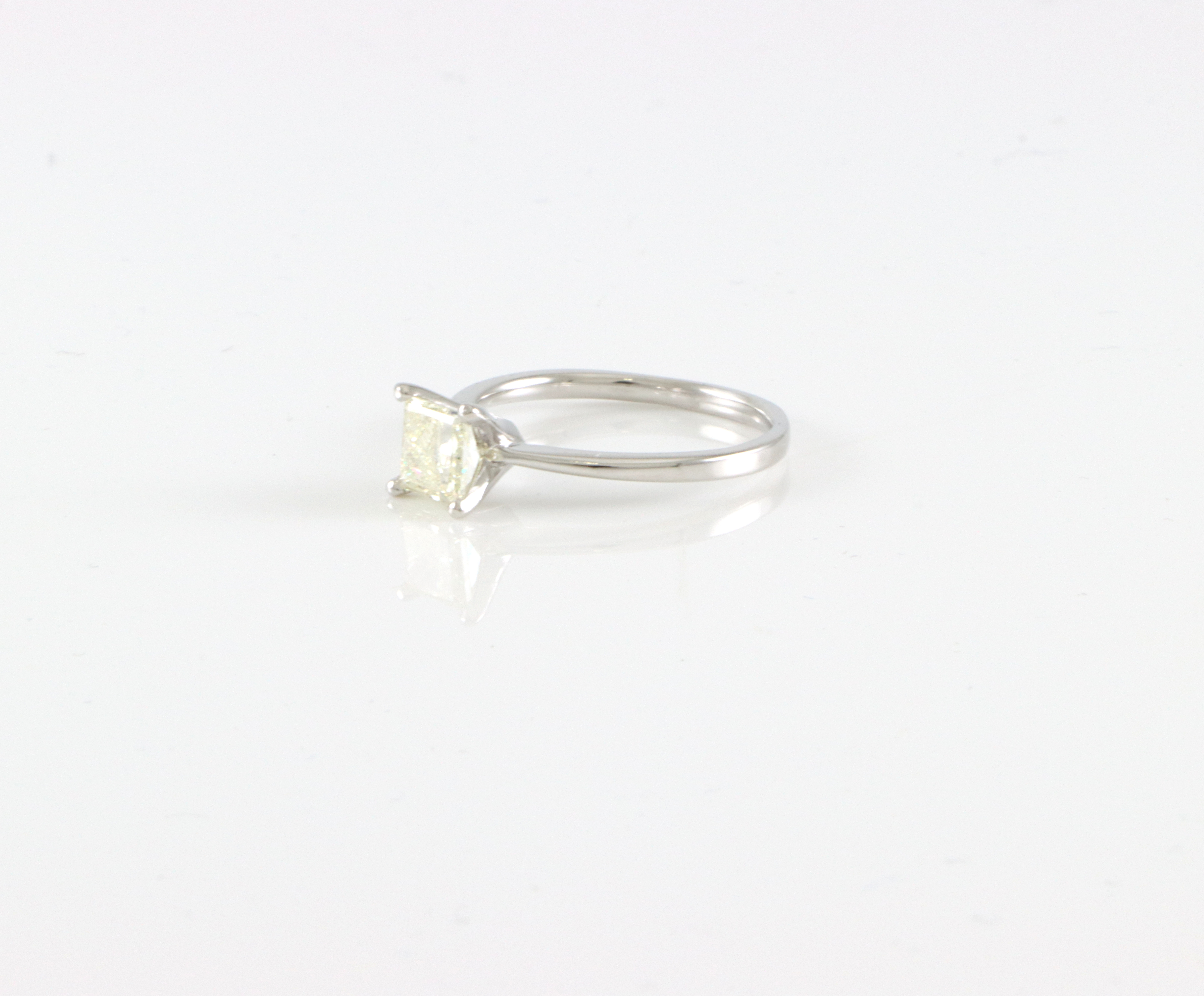Ensteinsring med diamant på 1,0 ct. Cape/P1 Str krone: 7 x 7 mm Ringstr: 54 Vekt: 2,4 gram Ringen er takstert til kr 43 500,- (Takstbrevet medfølger)