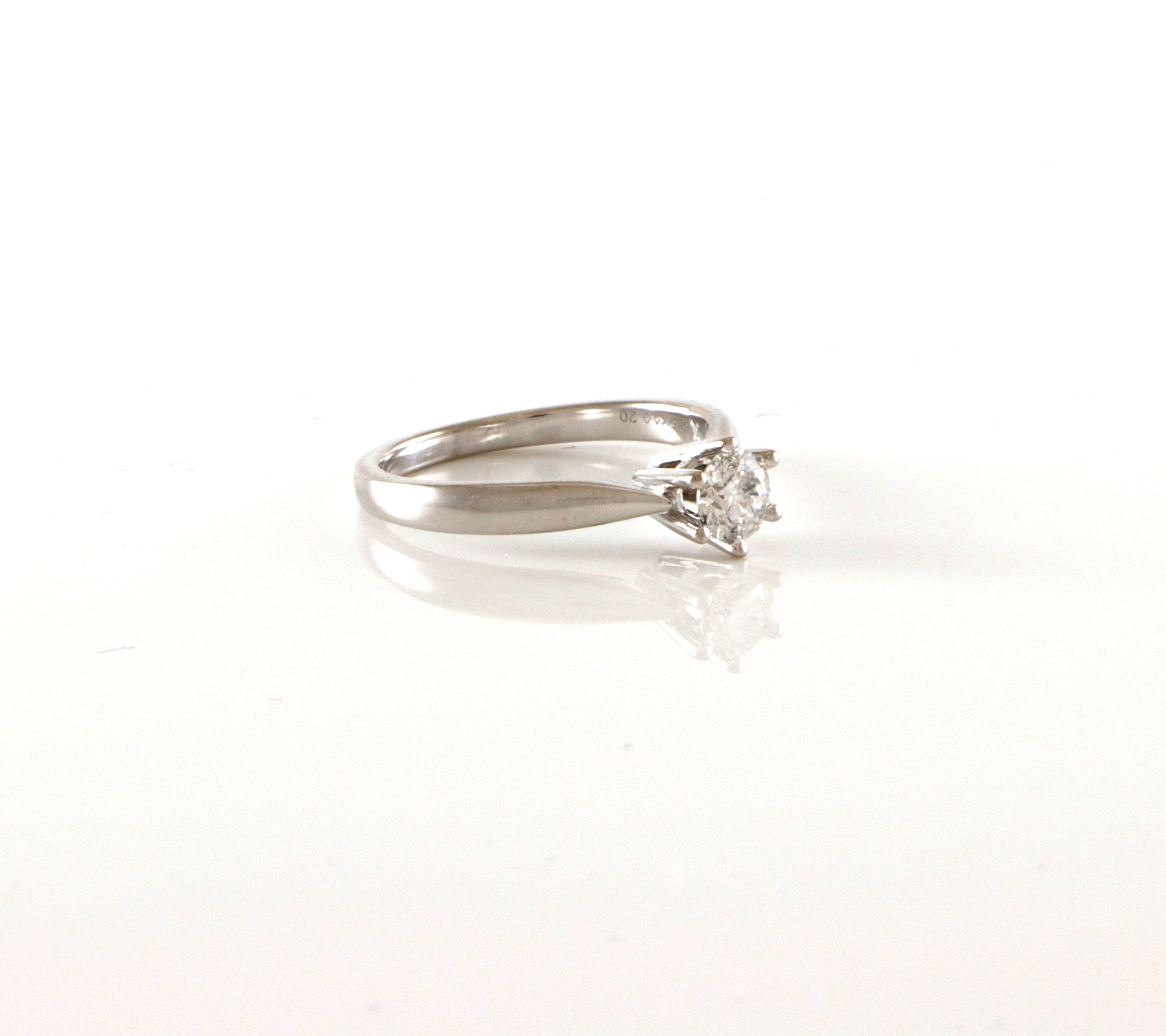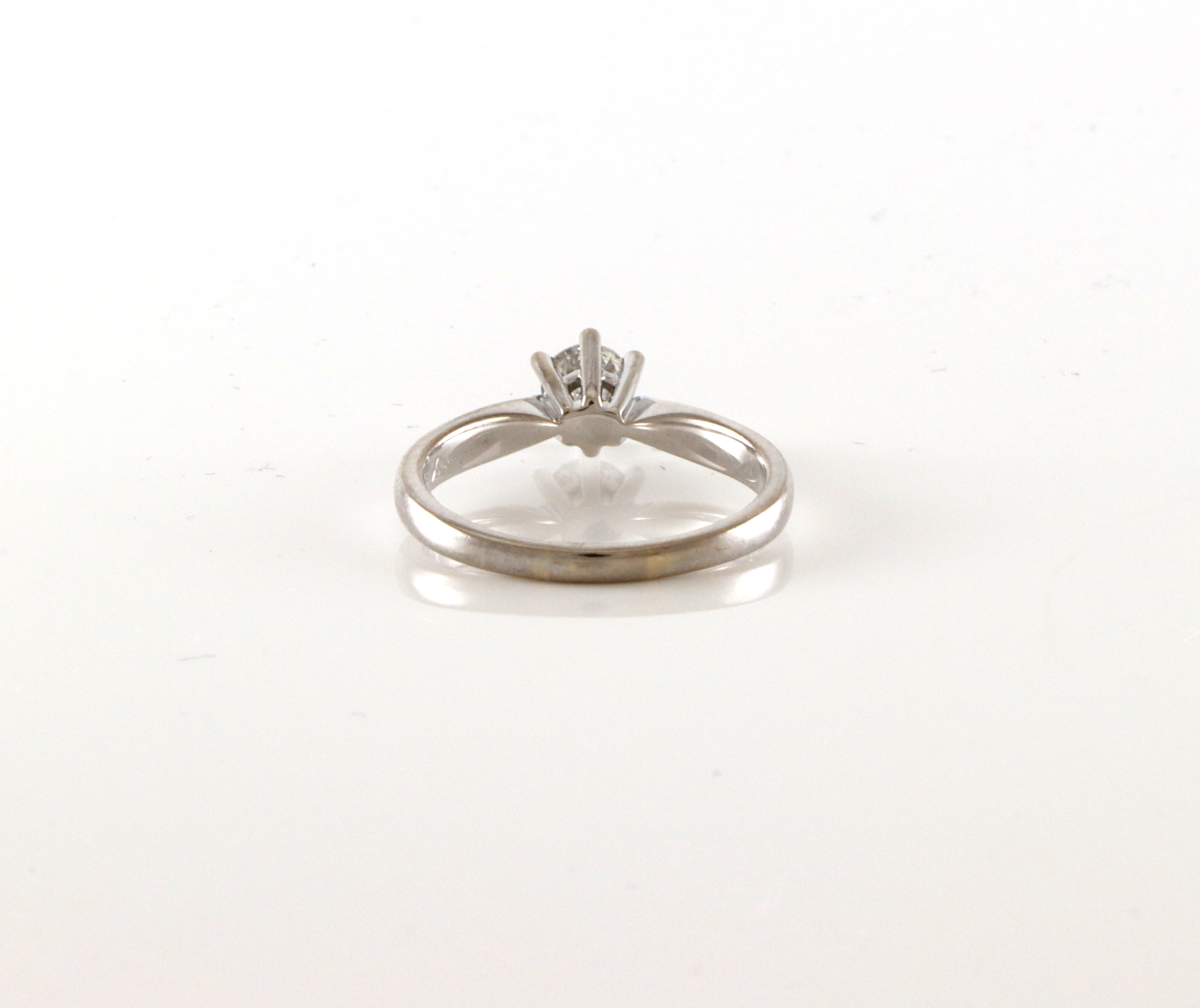 Enstensring på 0,50 ct der diamanten er tatt fra et annet smykke (gravert et kryss i ringen) Ringstr: 58,5 Vekt: 4,4 gram