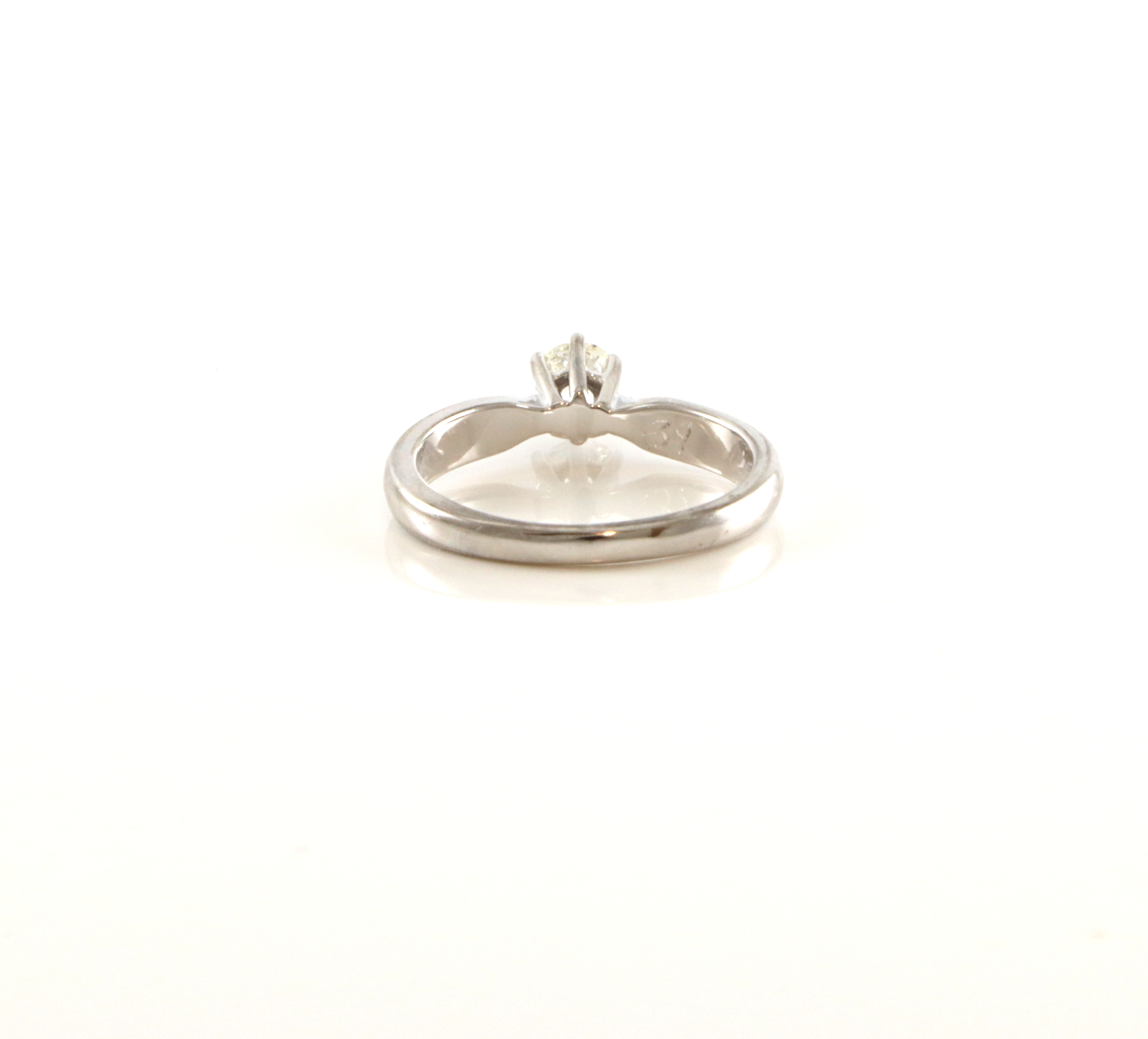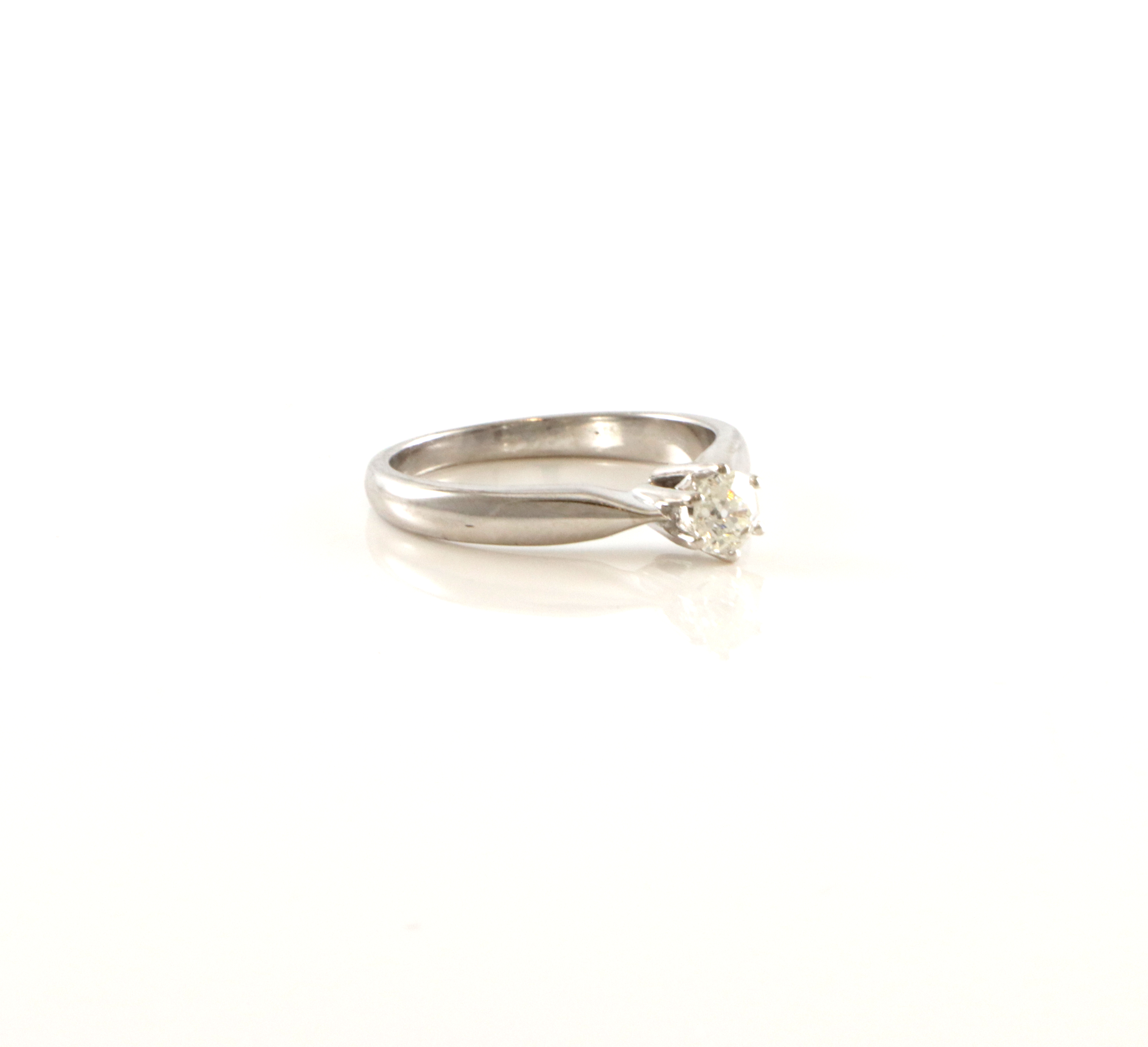 Trolig gjenbruk av eldre diamant i og med at den har en eldre type slip Ringstr: 55 Vekt: 3,5 gram Pent brukt