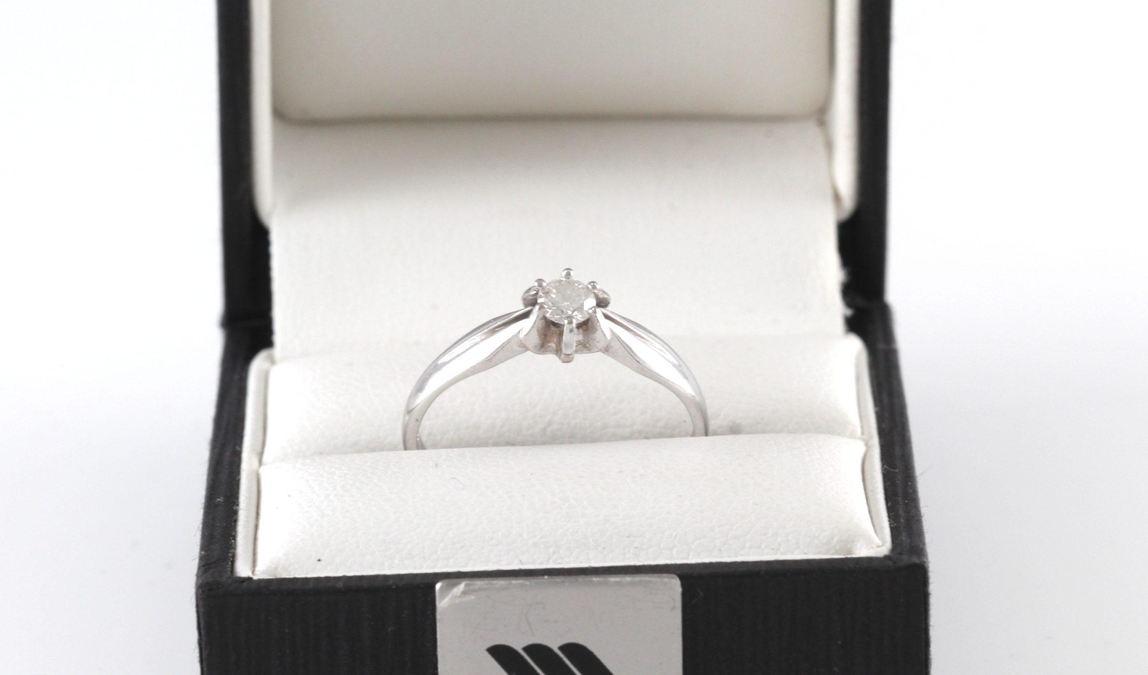 14 K hvitt gull med diamant på 0,20 ct. Homstvedt, Bergen
