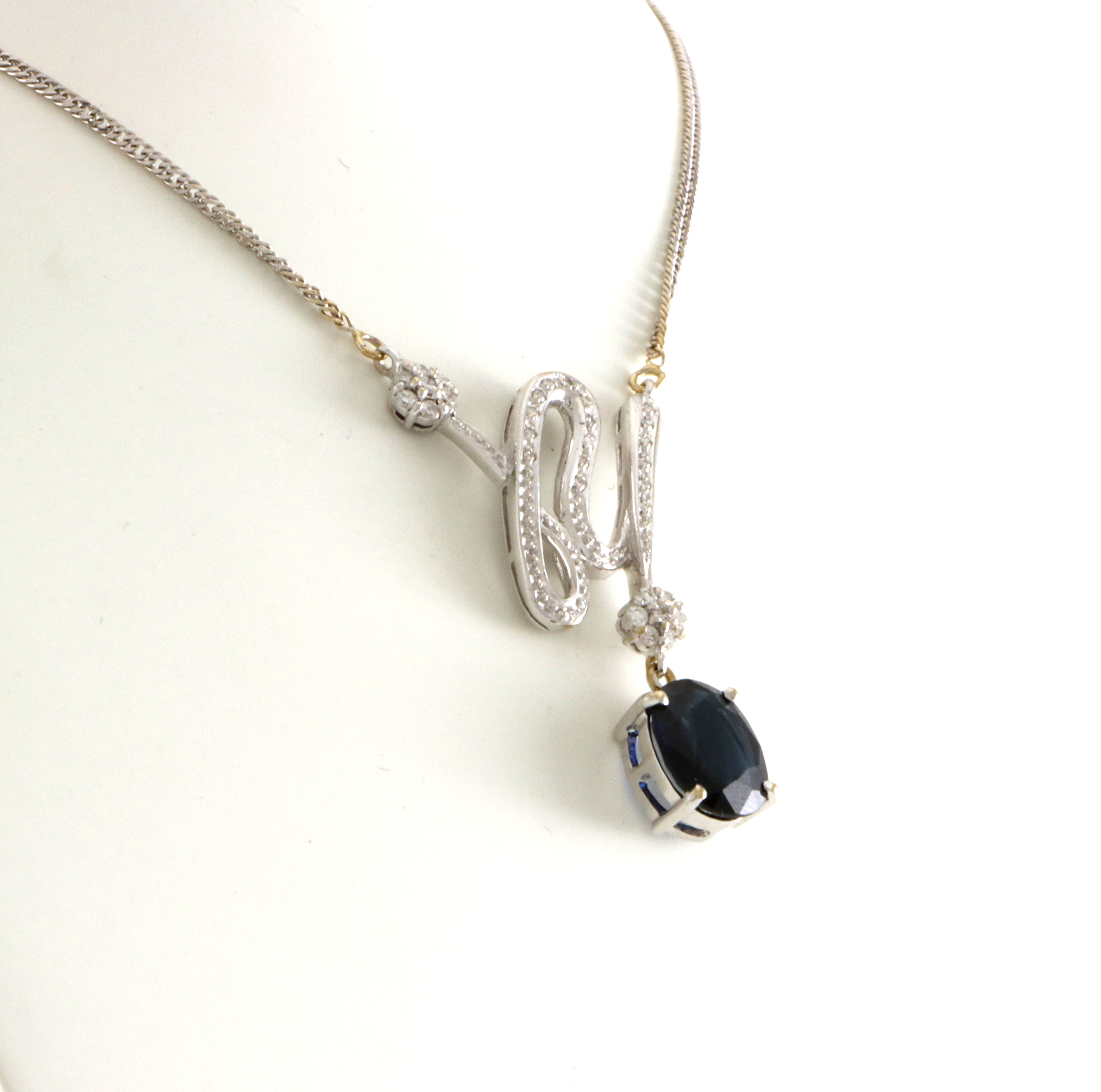 Str anheng: 35 x 22 mm Lengde: 42 cm Vekt:7,2 gram Låstype: Ringlås Noen partier med slitasje i rodiumet (gulskjær i lenken-ikke veldig synlig)