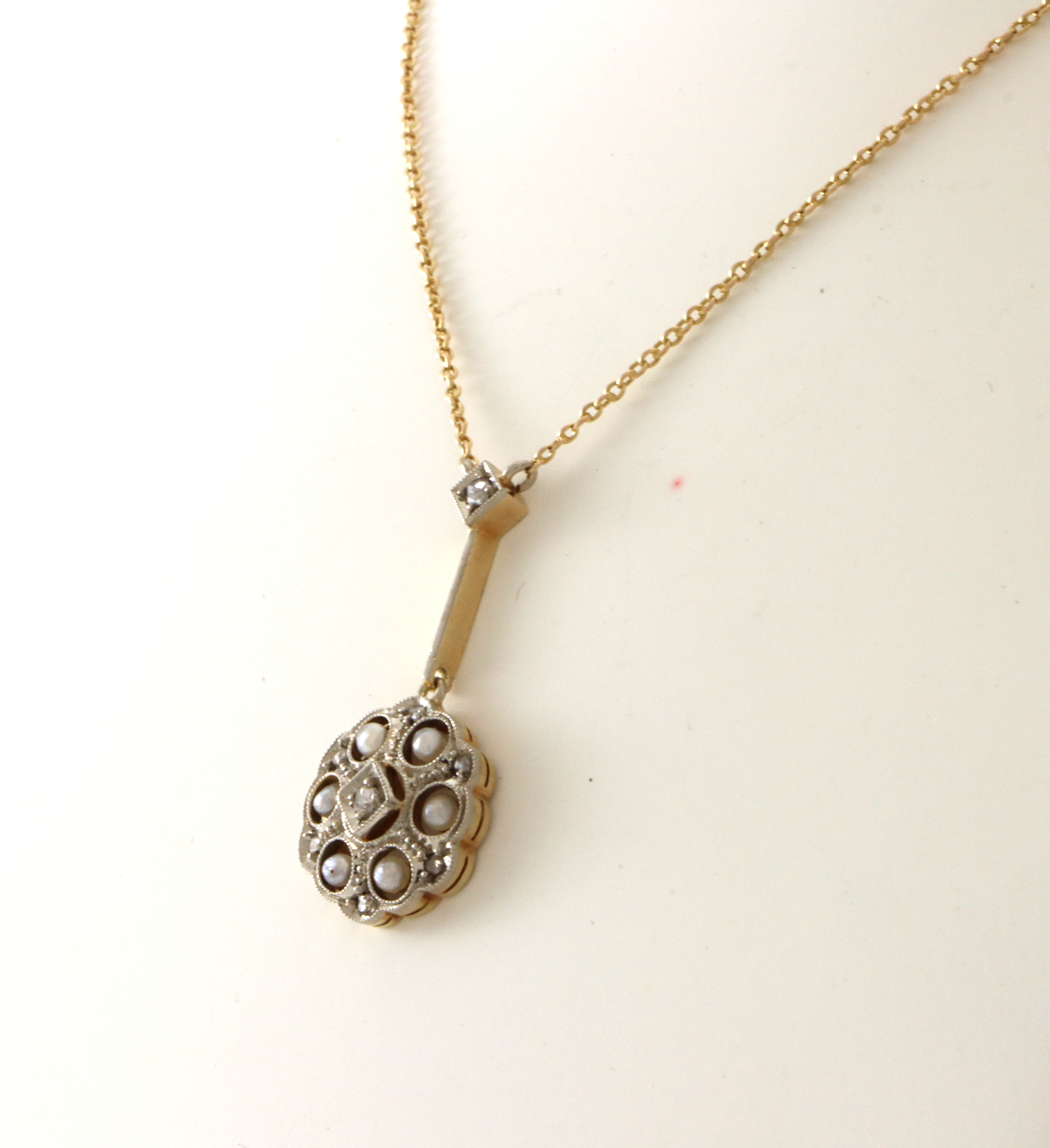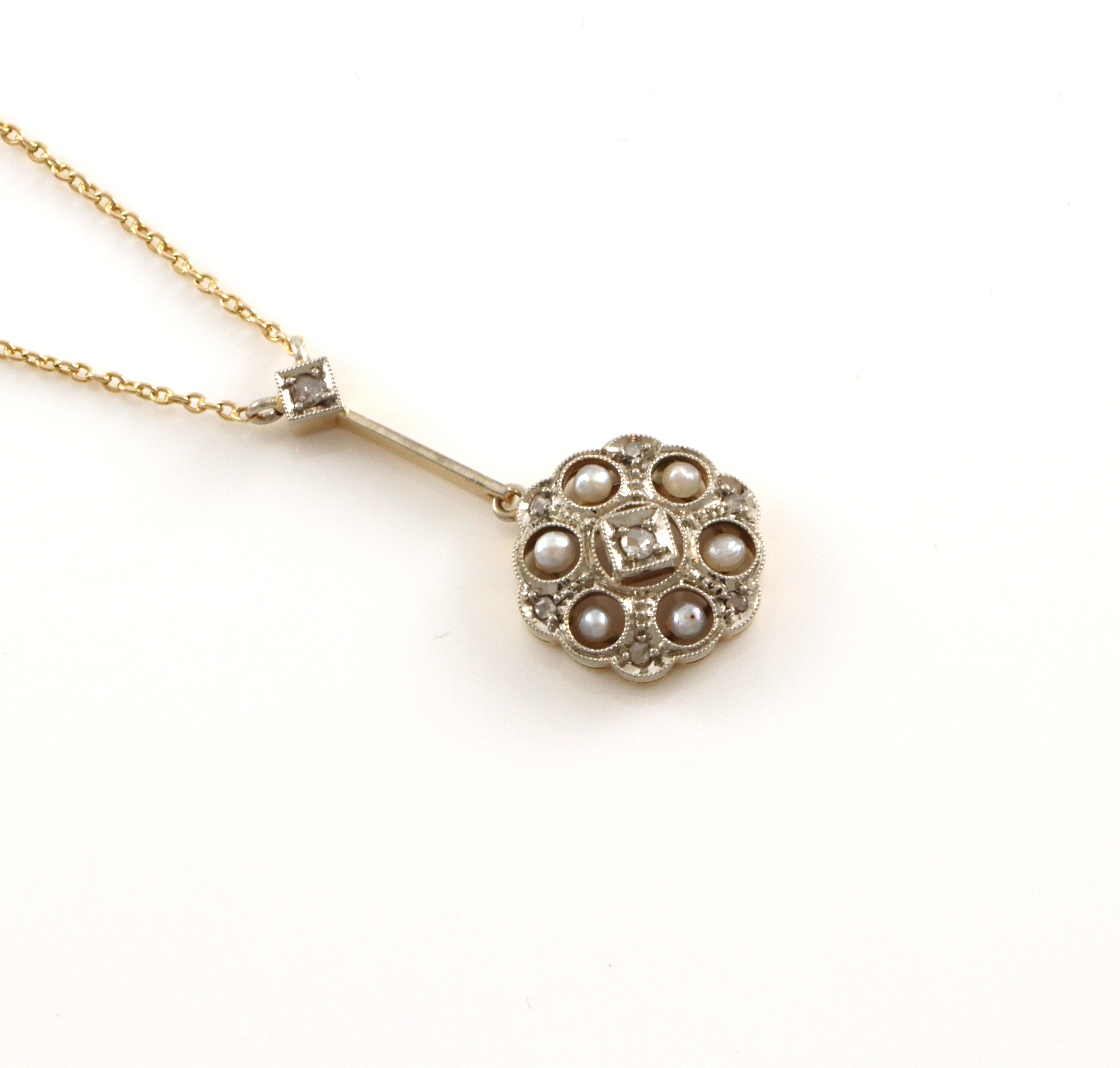 Nydelig antikk halssmykker med små roseslipte diamanter og perler