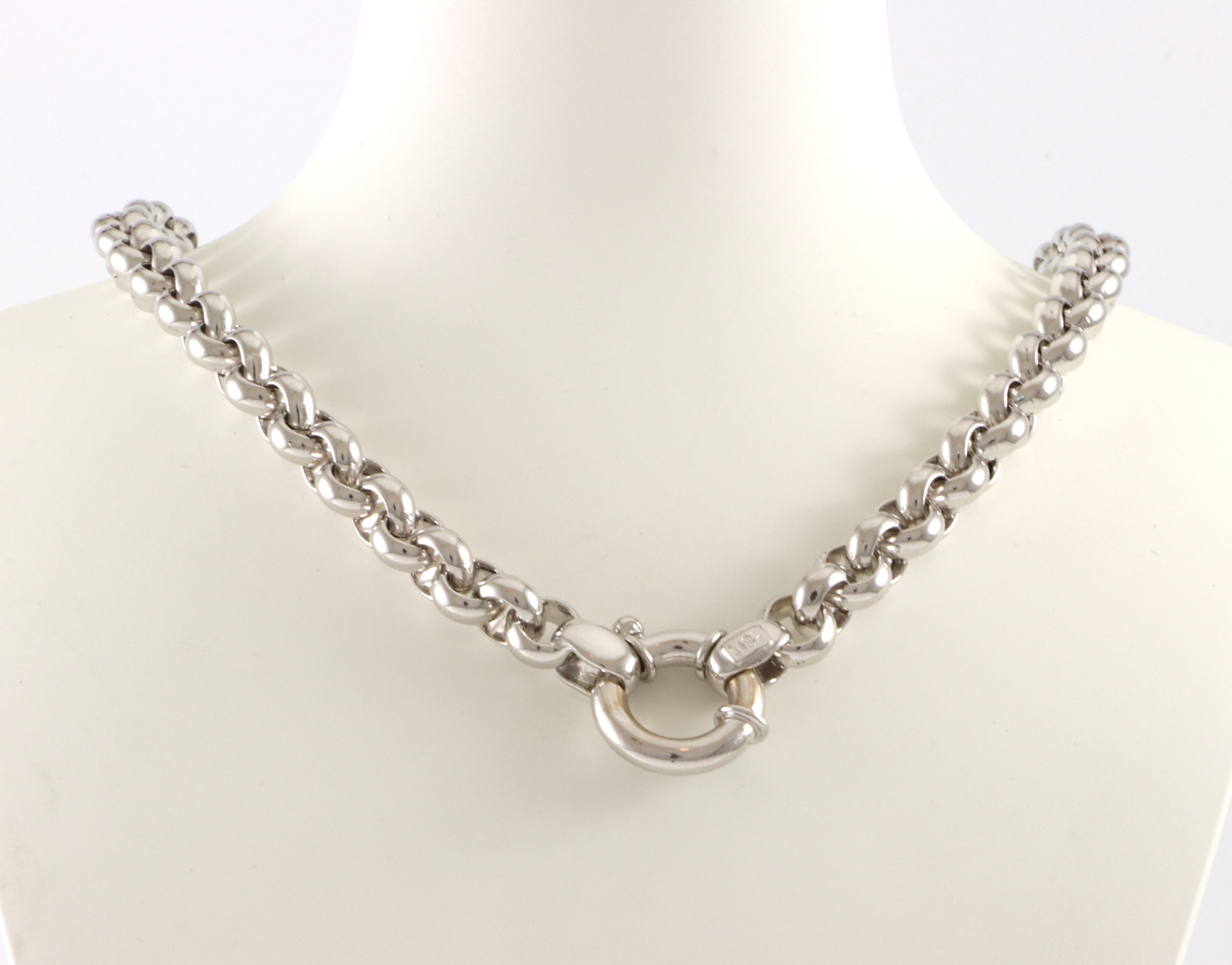 Bredde: 6 mm Lengde: 45 cm Vekt: 29,6 gram Låstype: Stor dekorativ ringlås Svært pent brukt