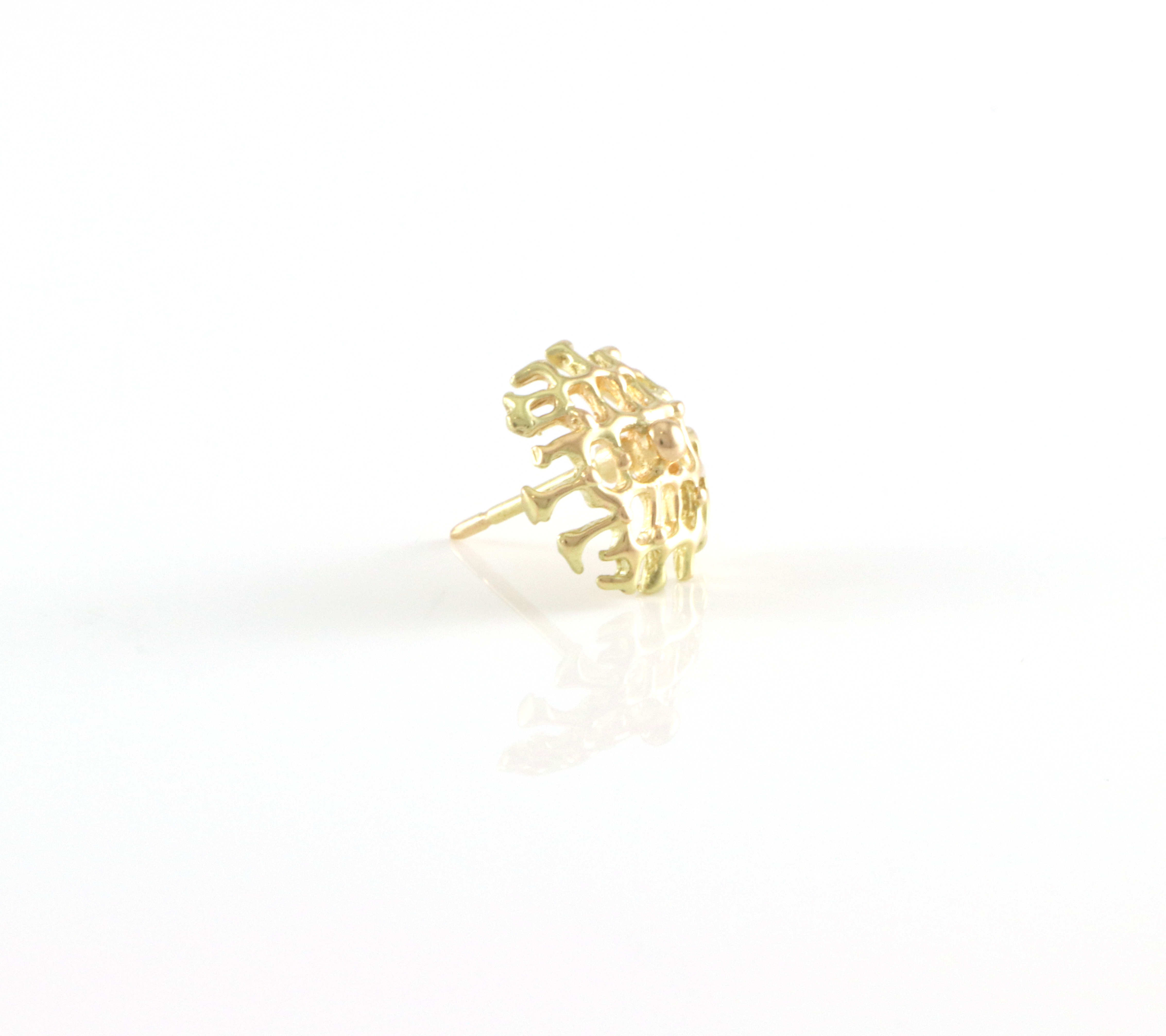 Diameter: 14 mm Vekt: 1,4 gram 14 K gull (Brutto 3,4 gram) Ustemplet (?)