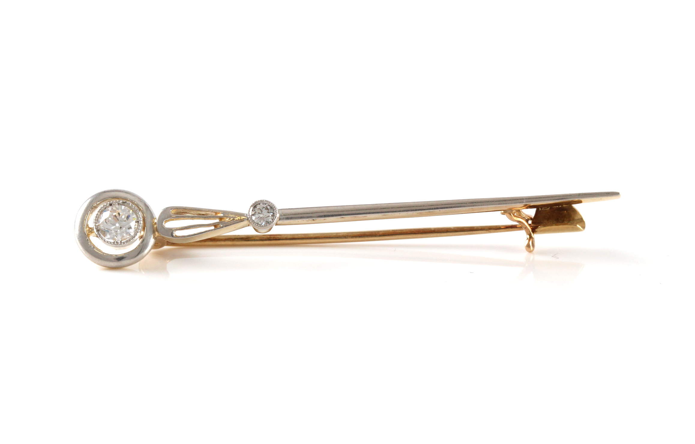 14 K gult og hvitt gull med to diamanter på tot ca 0,30 ct, eldre slip