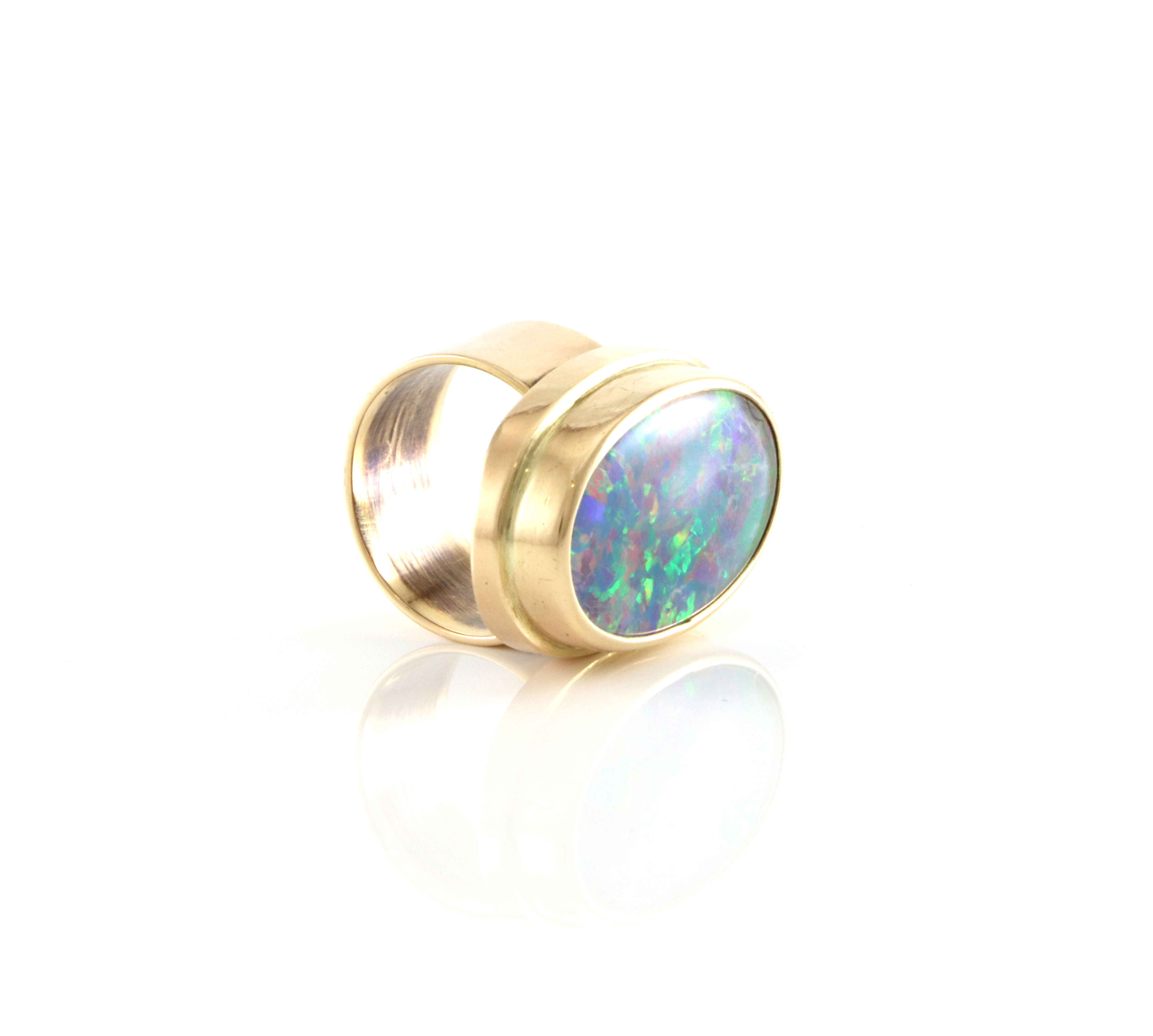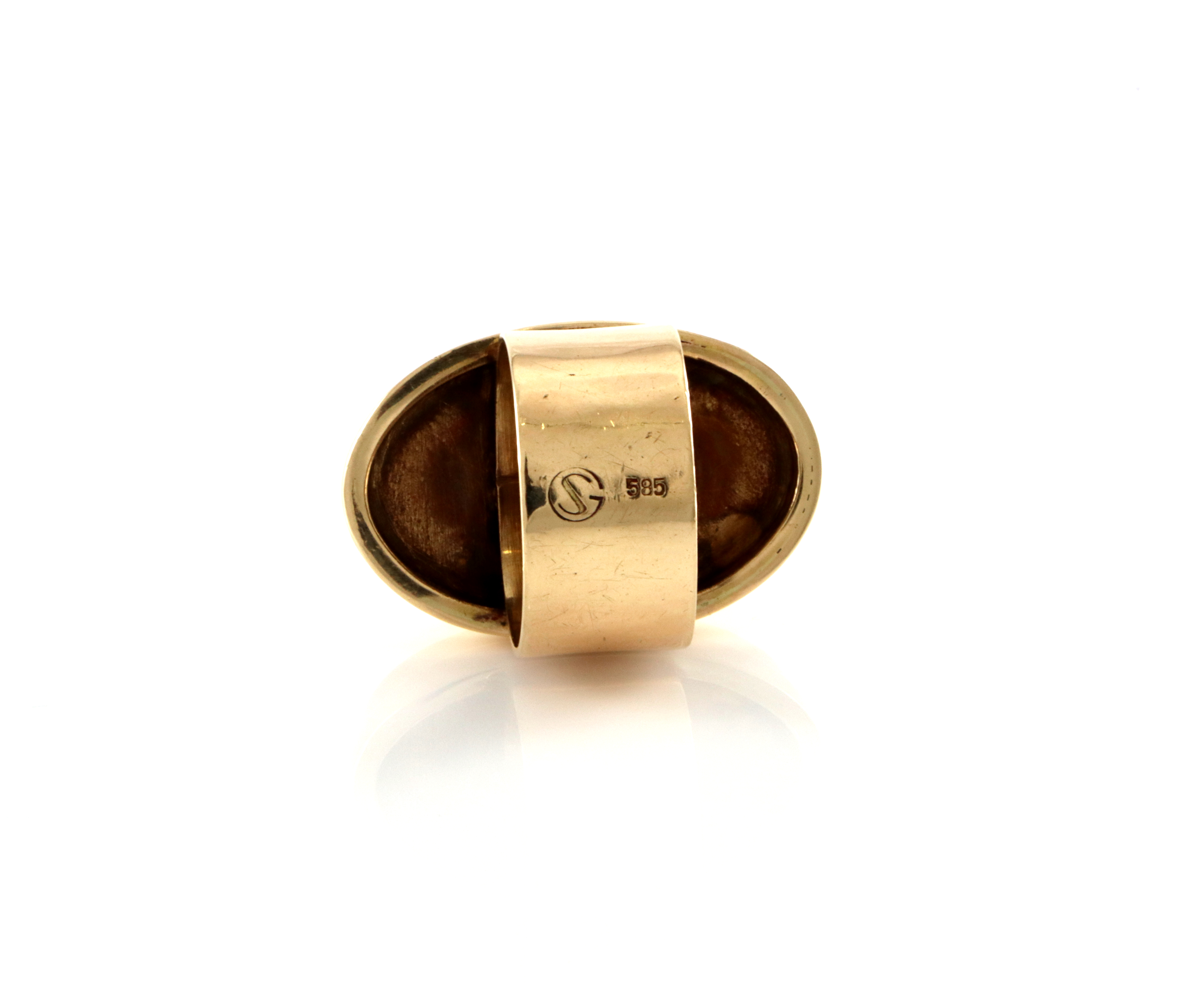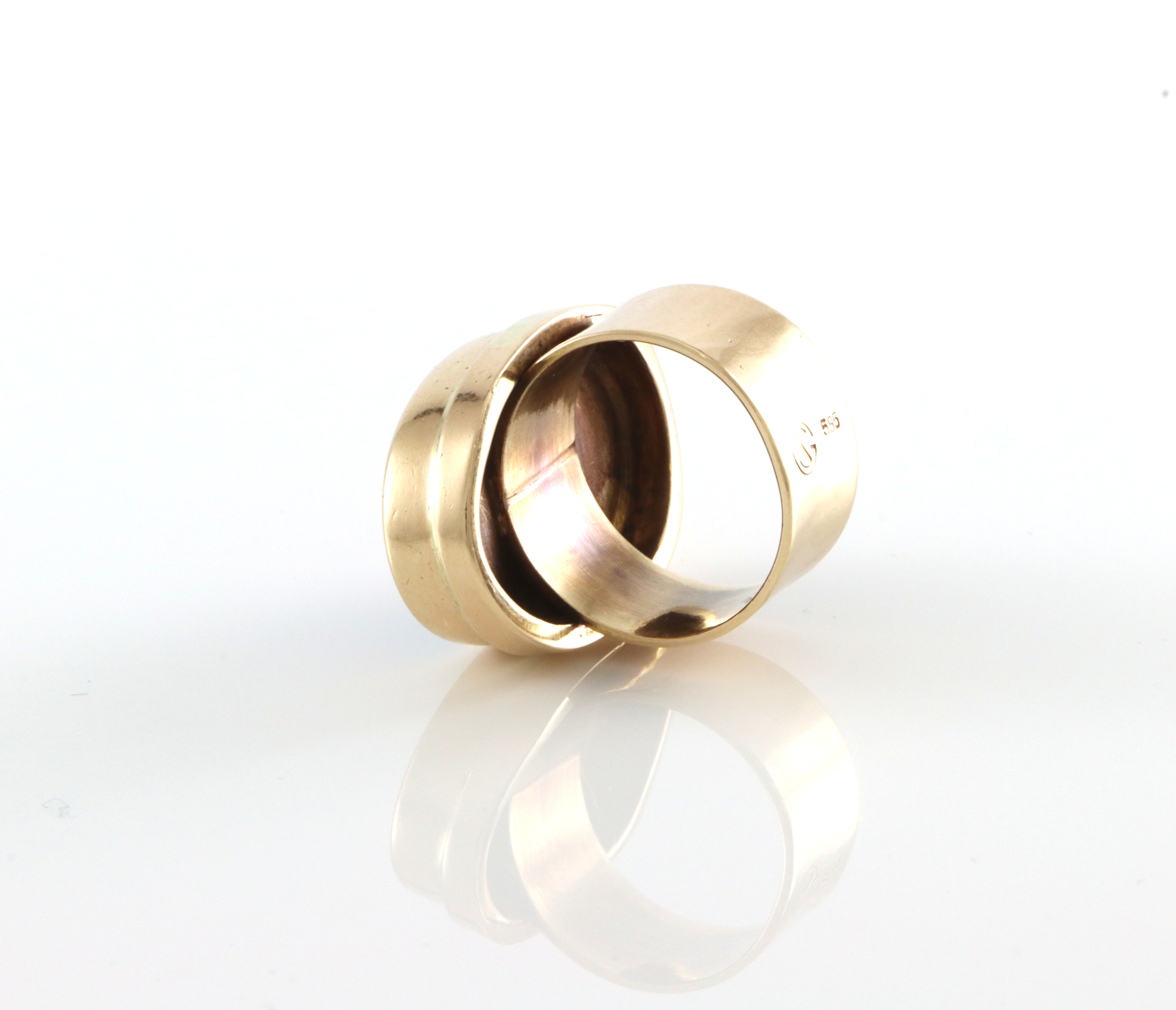 Grislekker ring fra Gine Sommerfelt! NB! Sjelden! Tung og massiv. Str krone: 29 x 19 mm Ringstr: 48-49 (NB bred skinne) Vekt:18,7 gram (!)