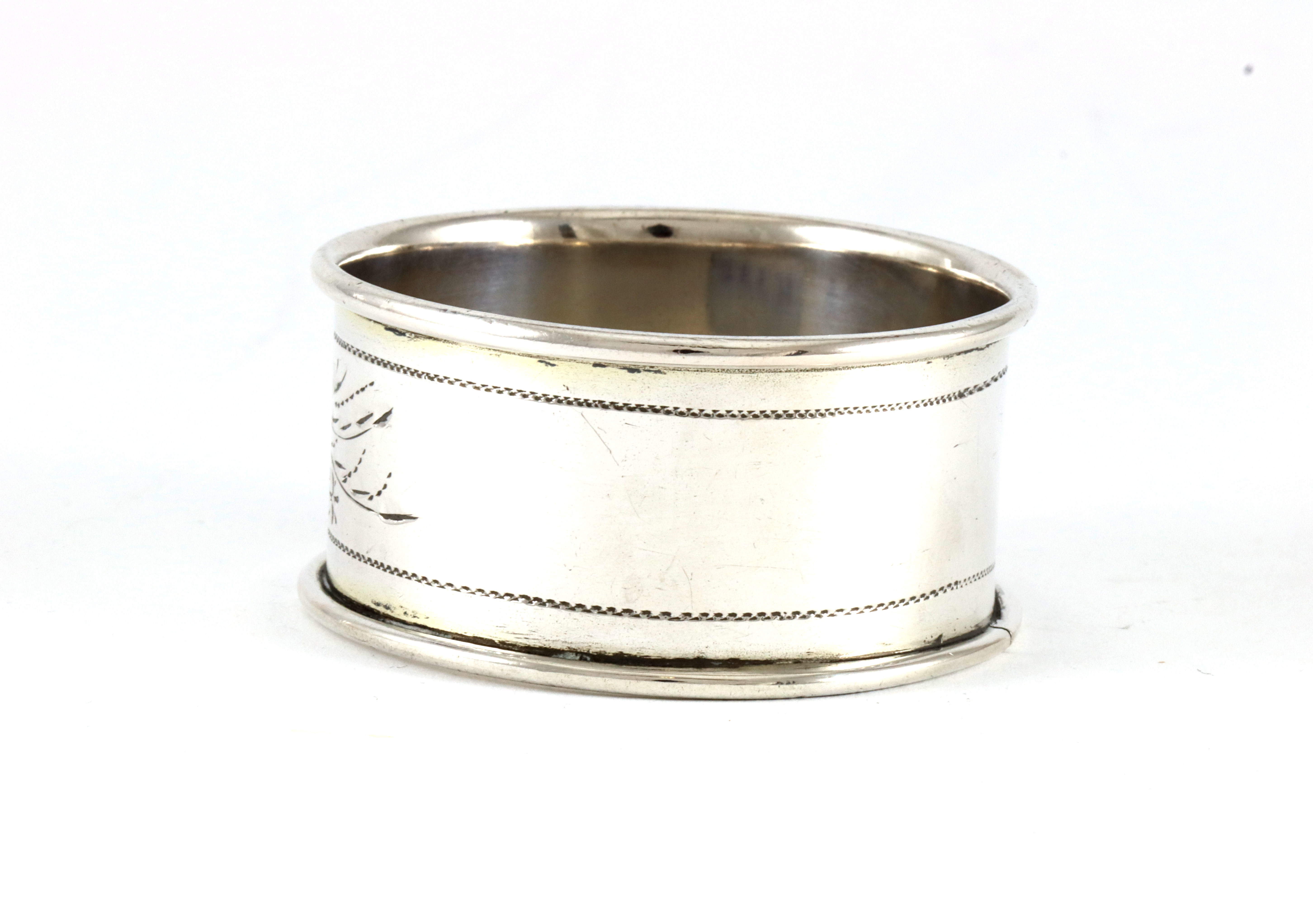 Antikk serviettring i sølv fra David-Andersen Produsert i 1890. Flott gravert dekor, med uleselige initialer. 4,7 x 2,3 cm