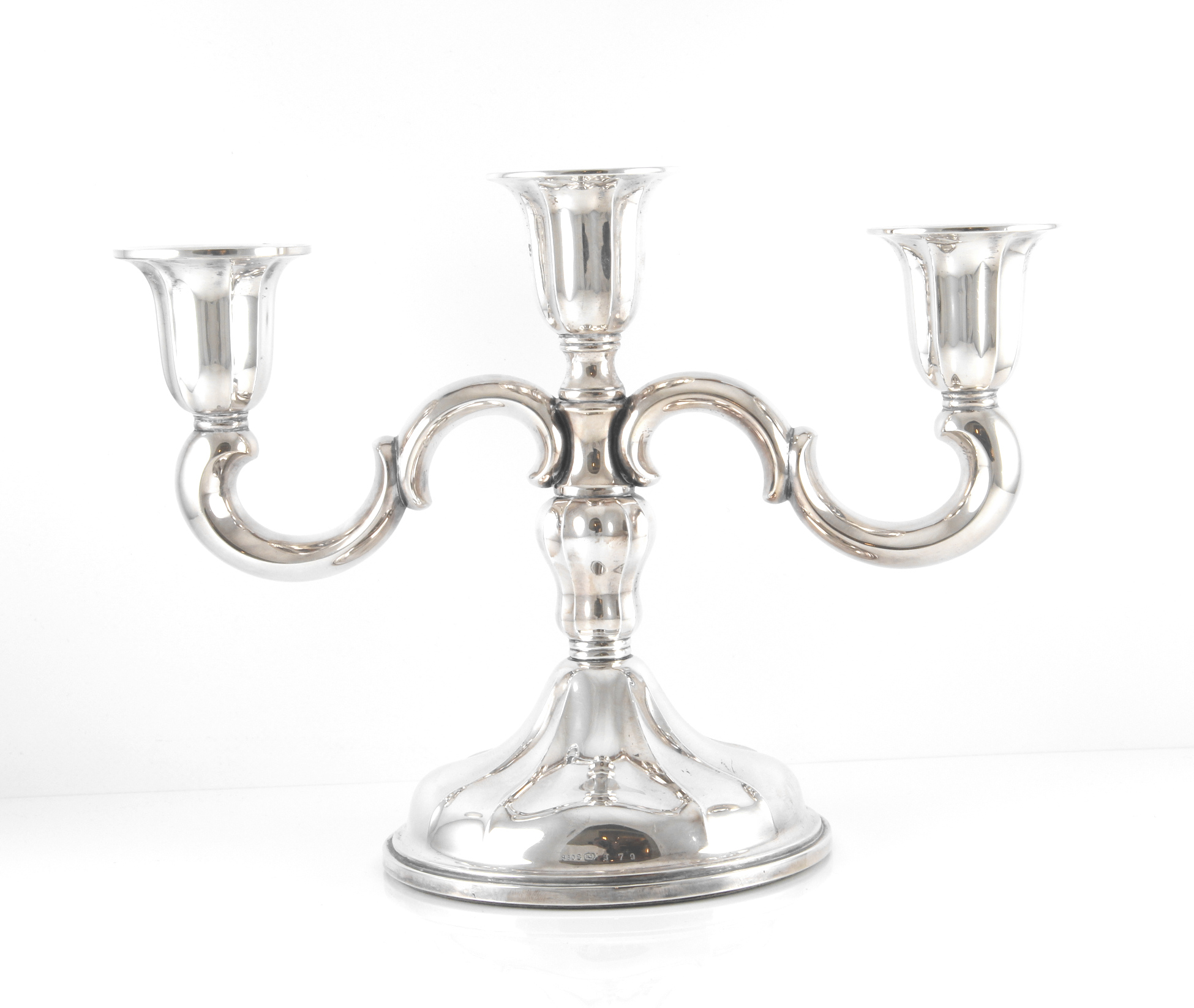 "Klassisk" trearmet kandelaber i 830 sølv fra Th. Marthinsen