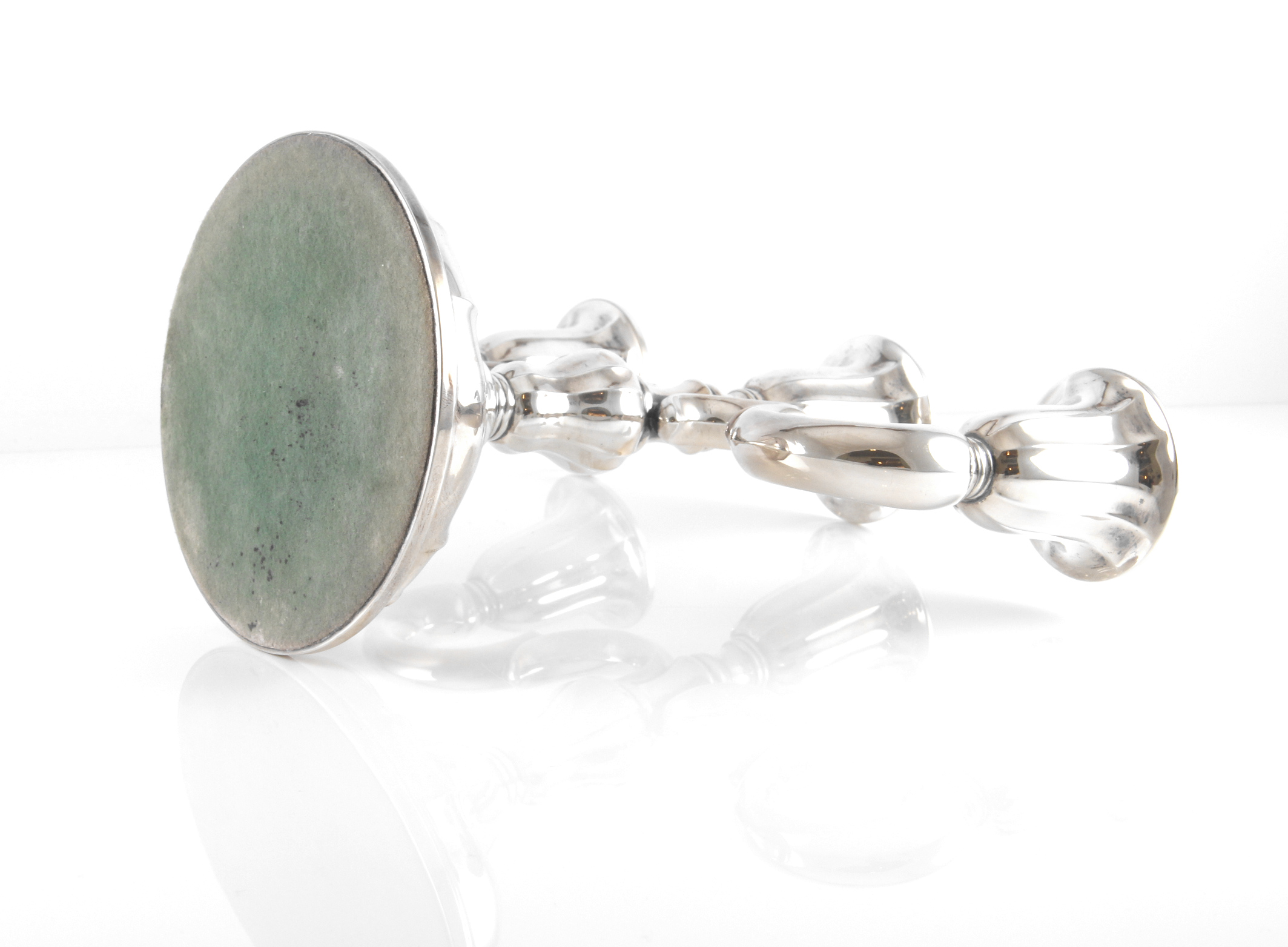 Klassisk lysestake i sølv. Høyde: 18,5 cm Bredde: 24,5 cm Normal bruksslitasje/I god stand