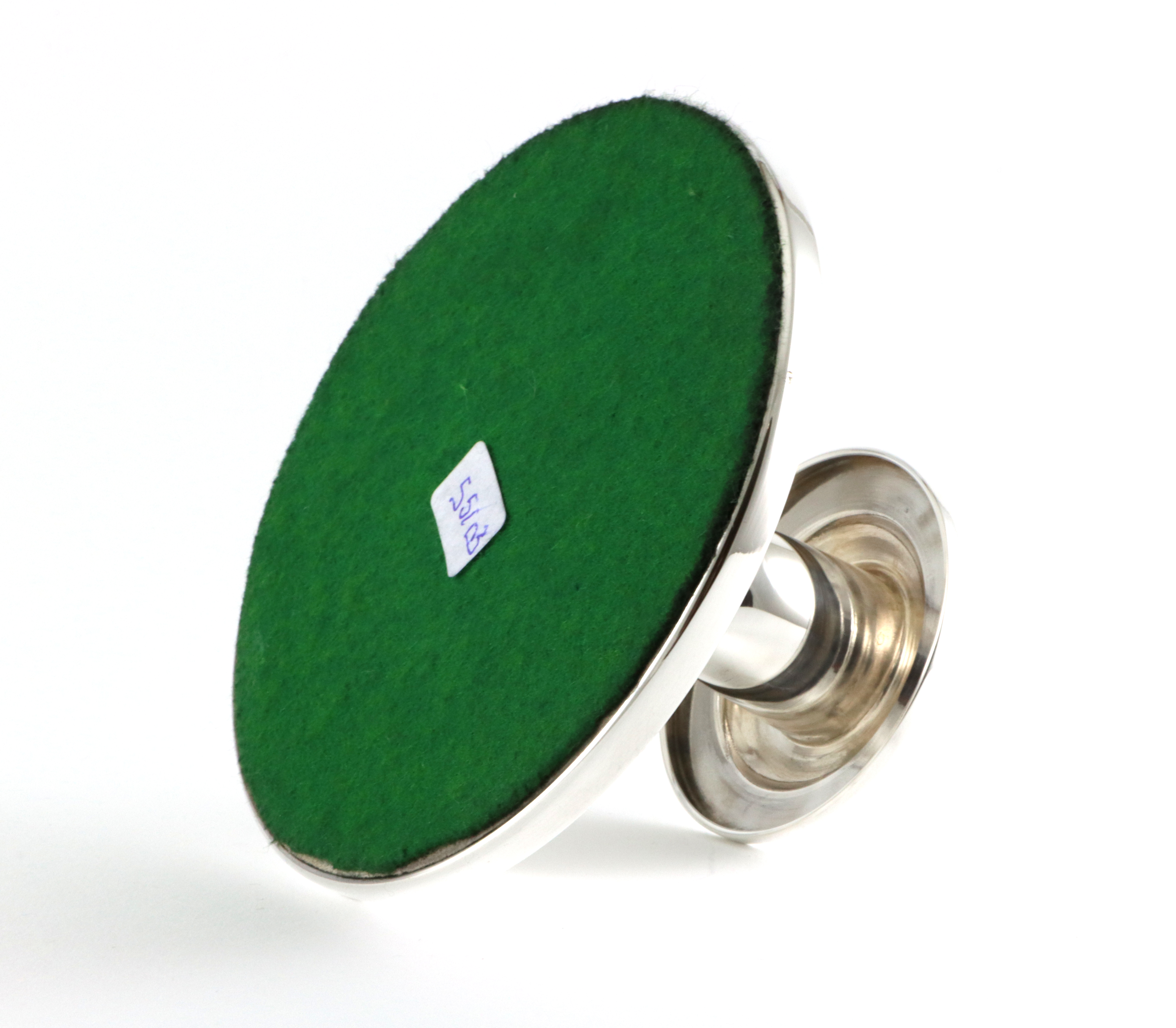 Ustemplet (?) men tester til 925 Sølv Høyde: 6,5 cm Diameter sokkel: 11,3 cm I god stand