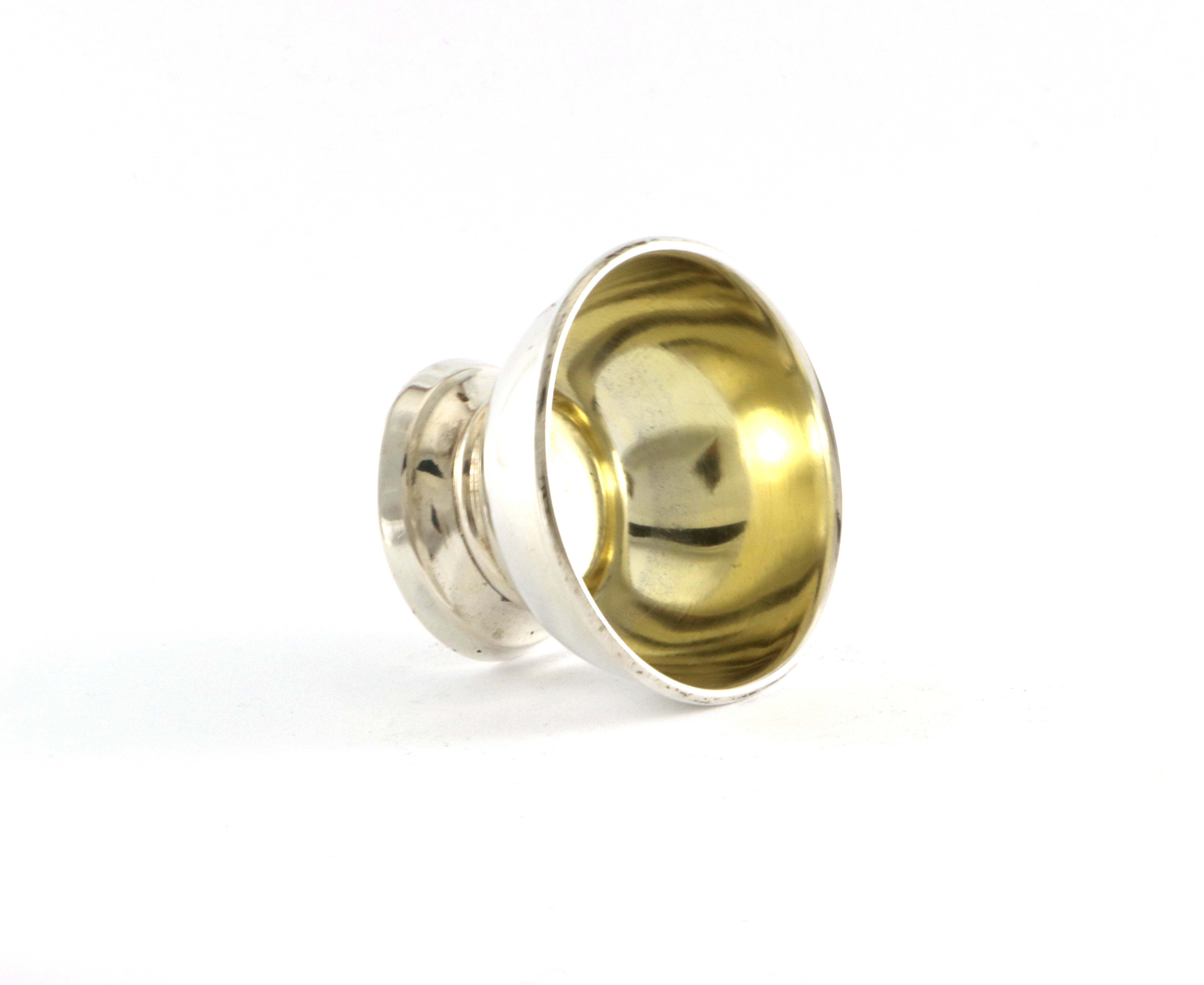 Høyde: 28 mm Diameter: 39 mm Gravert "J" Innvendig forgylling I god stand