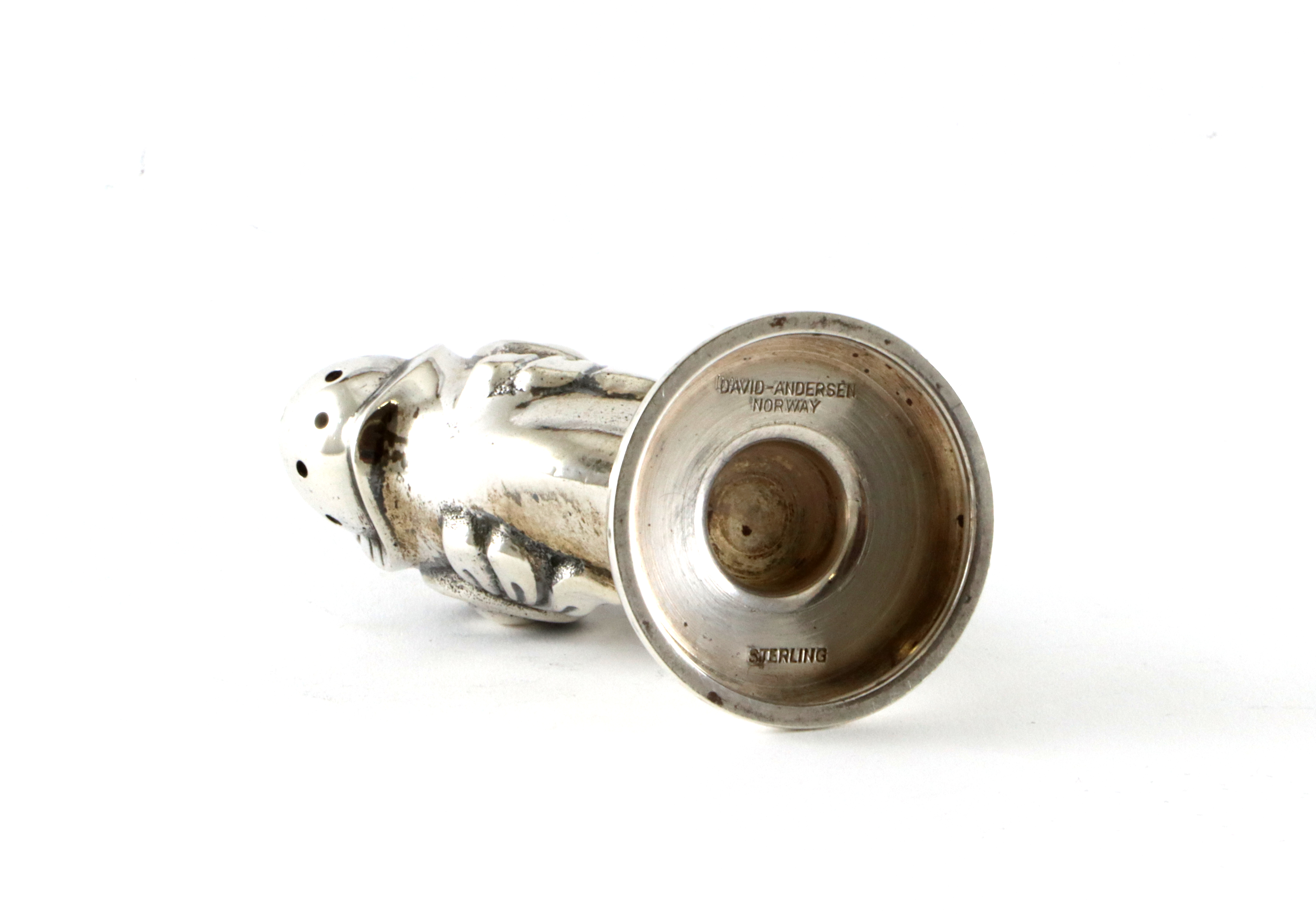 Utrolig morsom saltbøsse fra David-Andersen, gammelstemplet Høyde: 55 mm Veier hele 48,6 gram