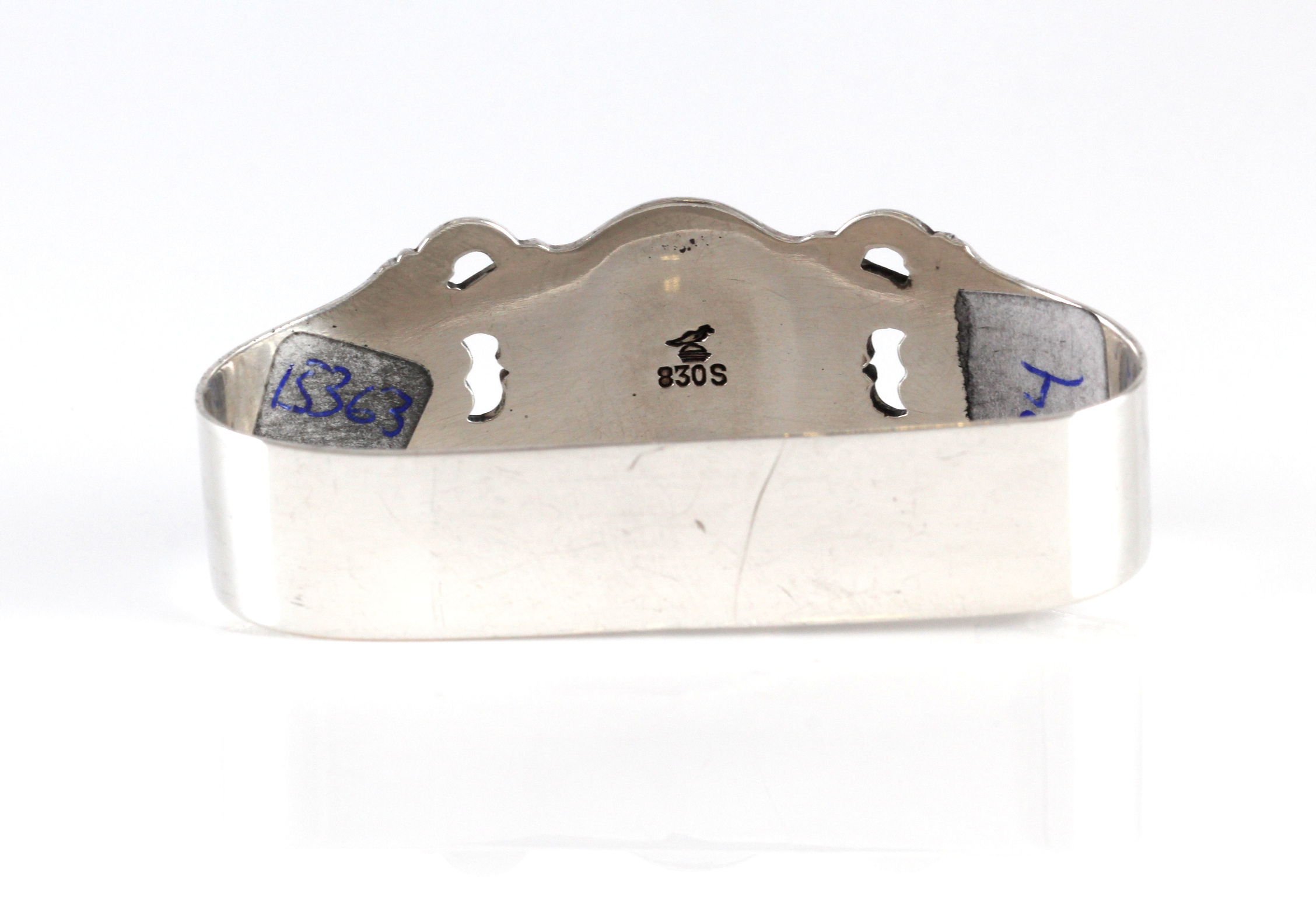 Serviettring i sølv, i Saga-mønsteret til Brødrene Mylius. 5,9 x 2,5 cm
