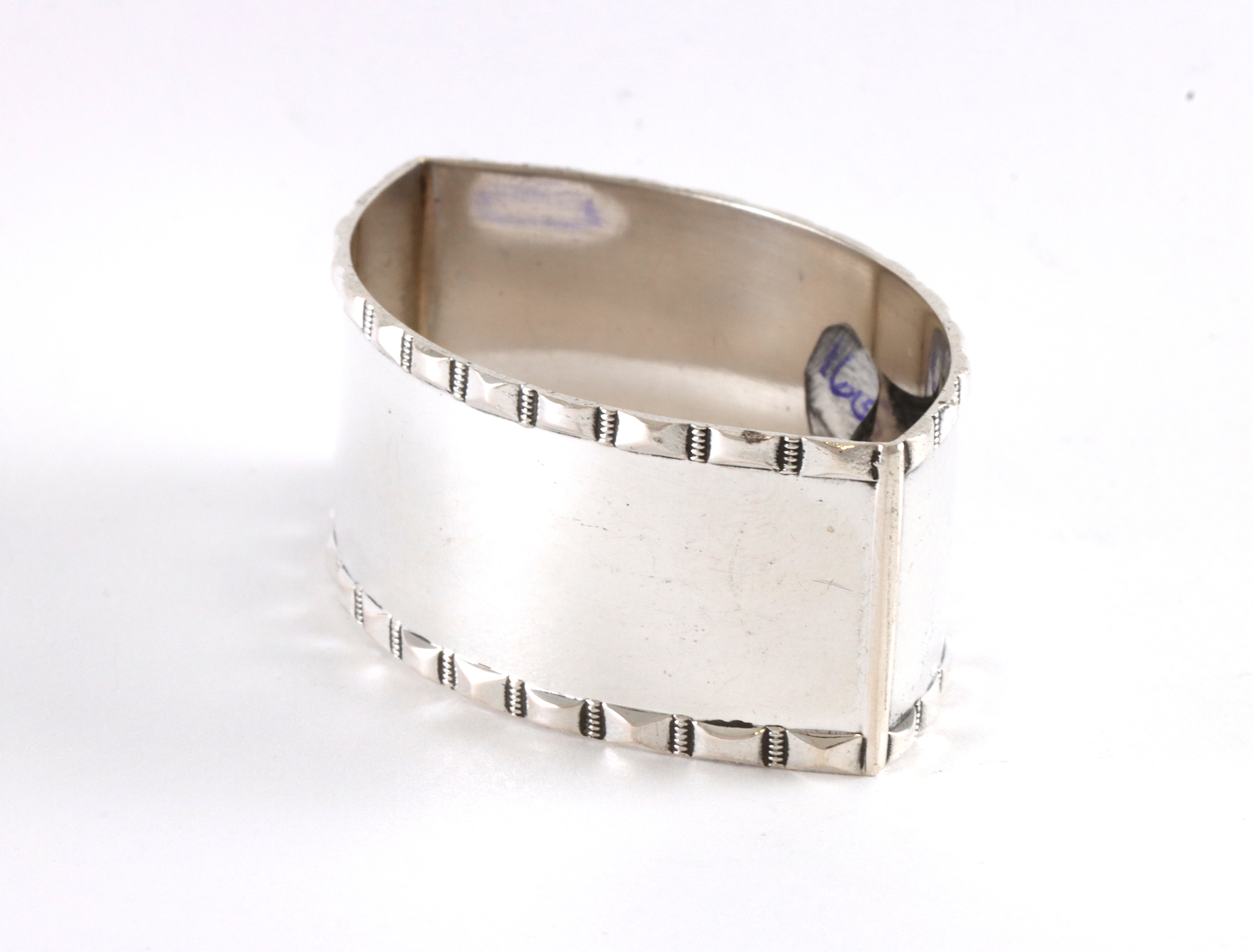 Serviettring i sølv, produsert av Tostrup. 2,0 cm bred. Ustemplet, men kjent mønster fra Tostrup(Er i tillegg testet). Noe bruksslitasje.