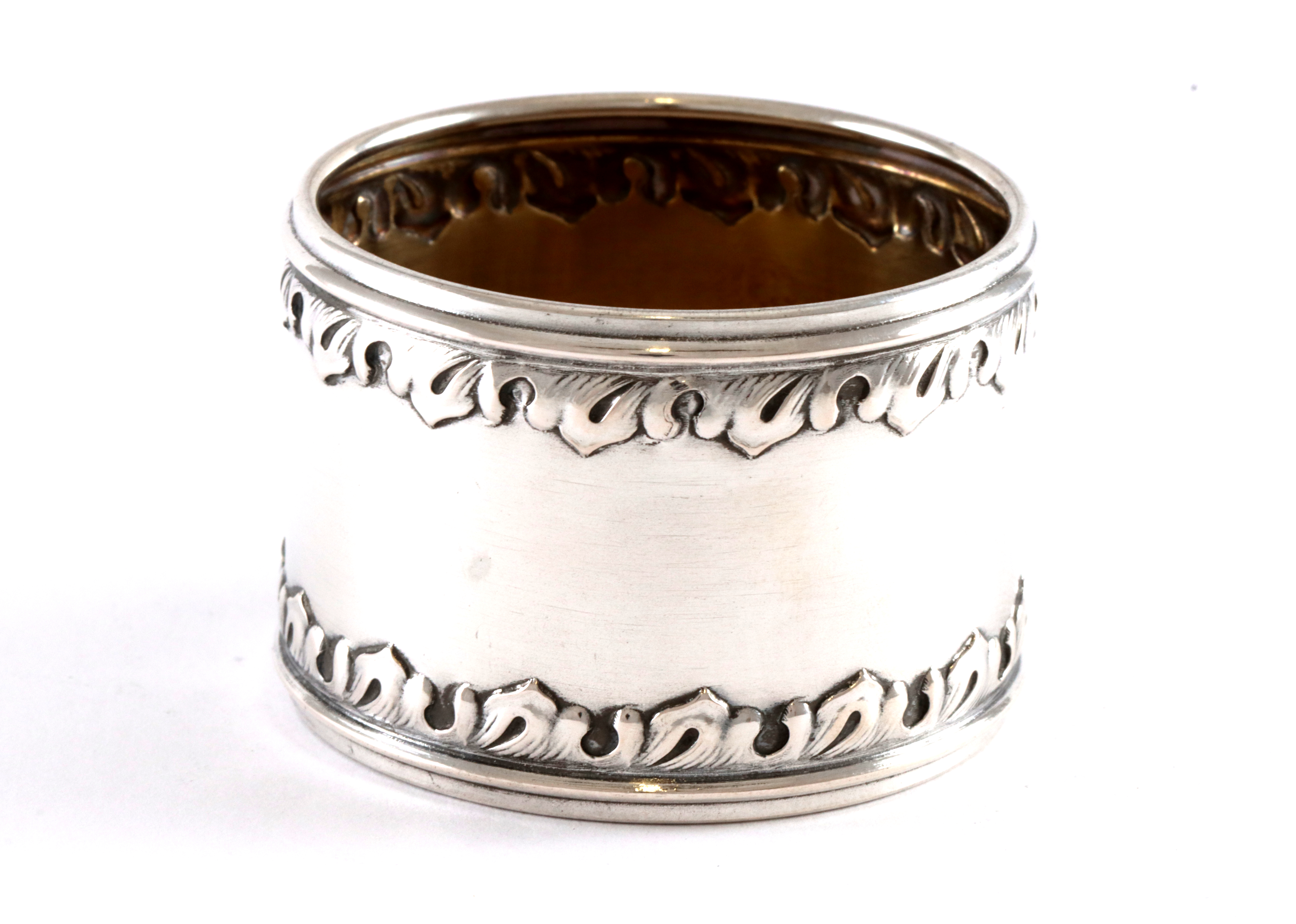 Antikk serviettring i sølv, produsert av Th.Marthinsen. Serviettringen er nok +- 100 år gammel men ser tilnærmet ubrukt ut(Kun en mikroskopisk bulk som sees i riktig lys) 3,2 cm bred.