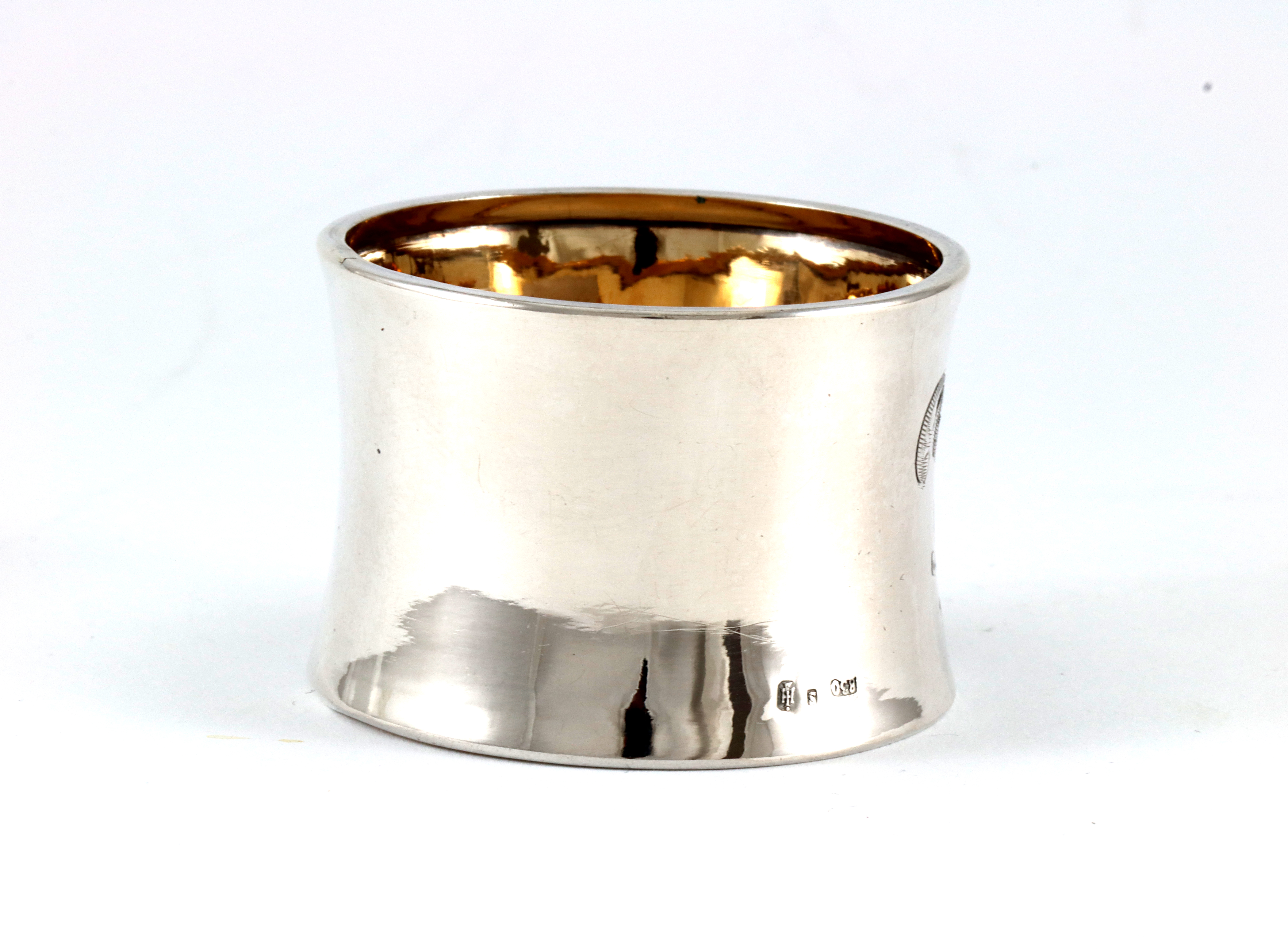 Serviettring med gravert mønster, forgyldt innside. Veldig fin stand 3,1 x 4,7 cm