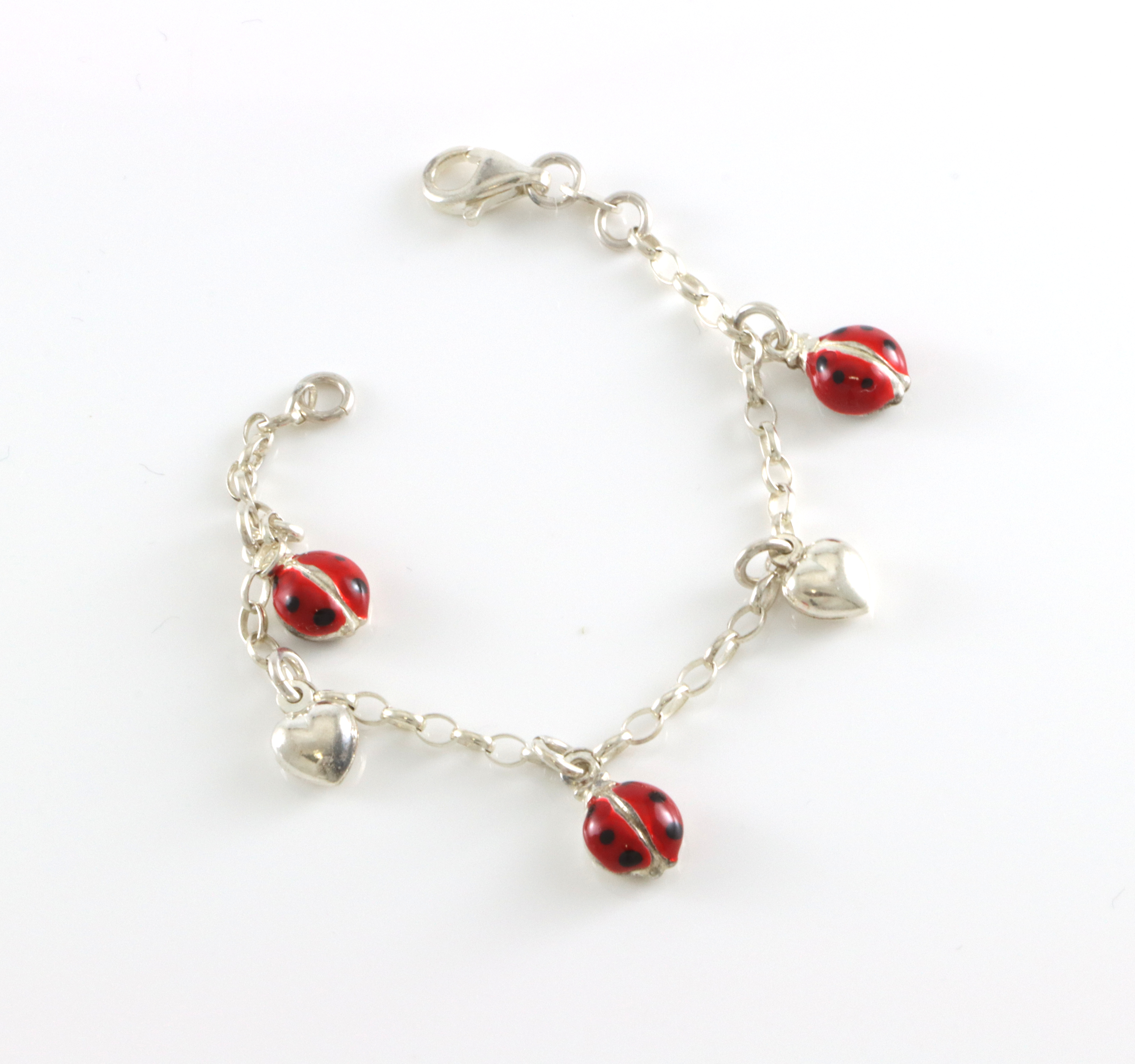 Armlenke i sølv Med marihøner og hjerter Ca 14,9 cm lang