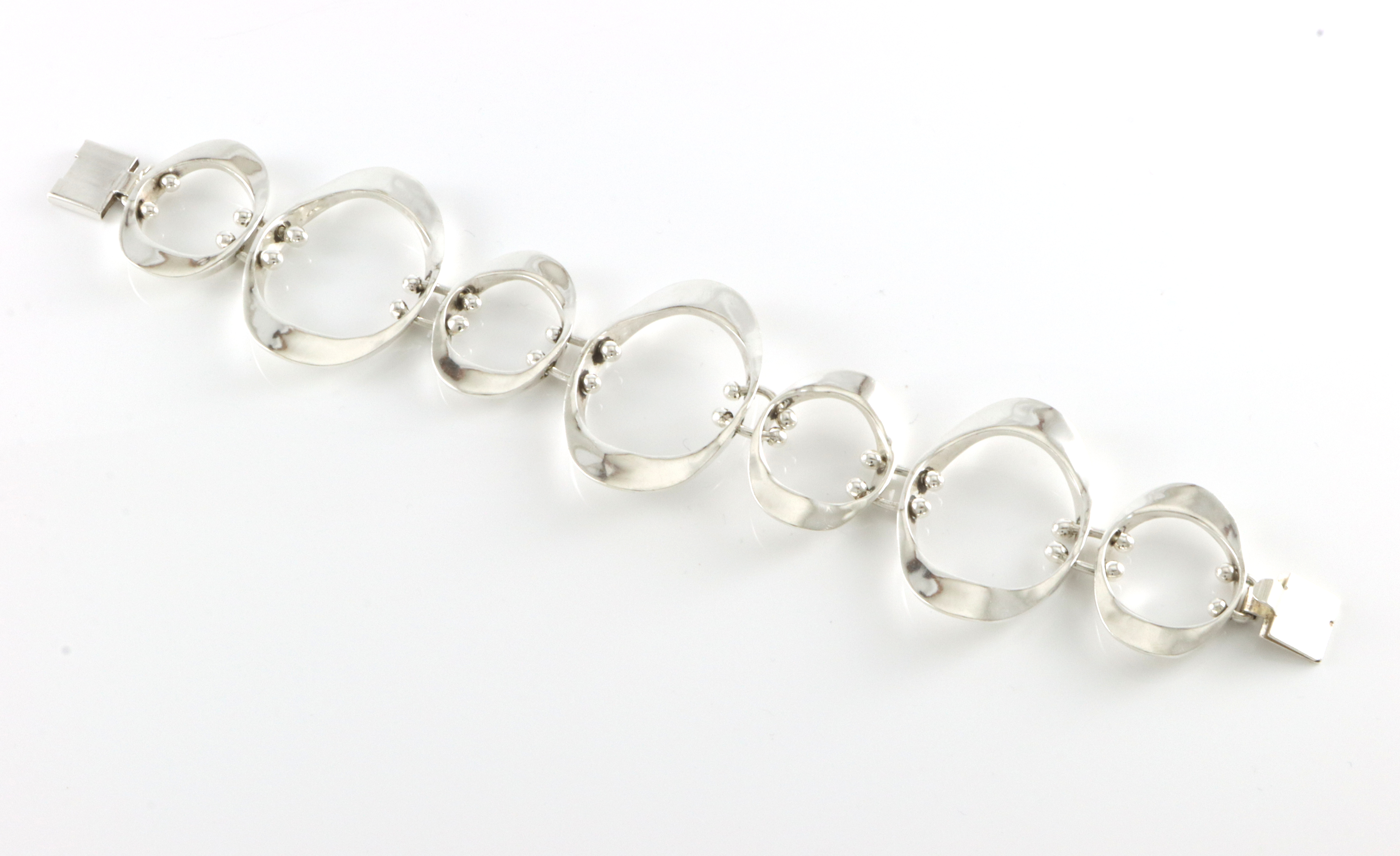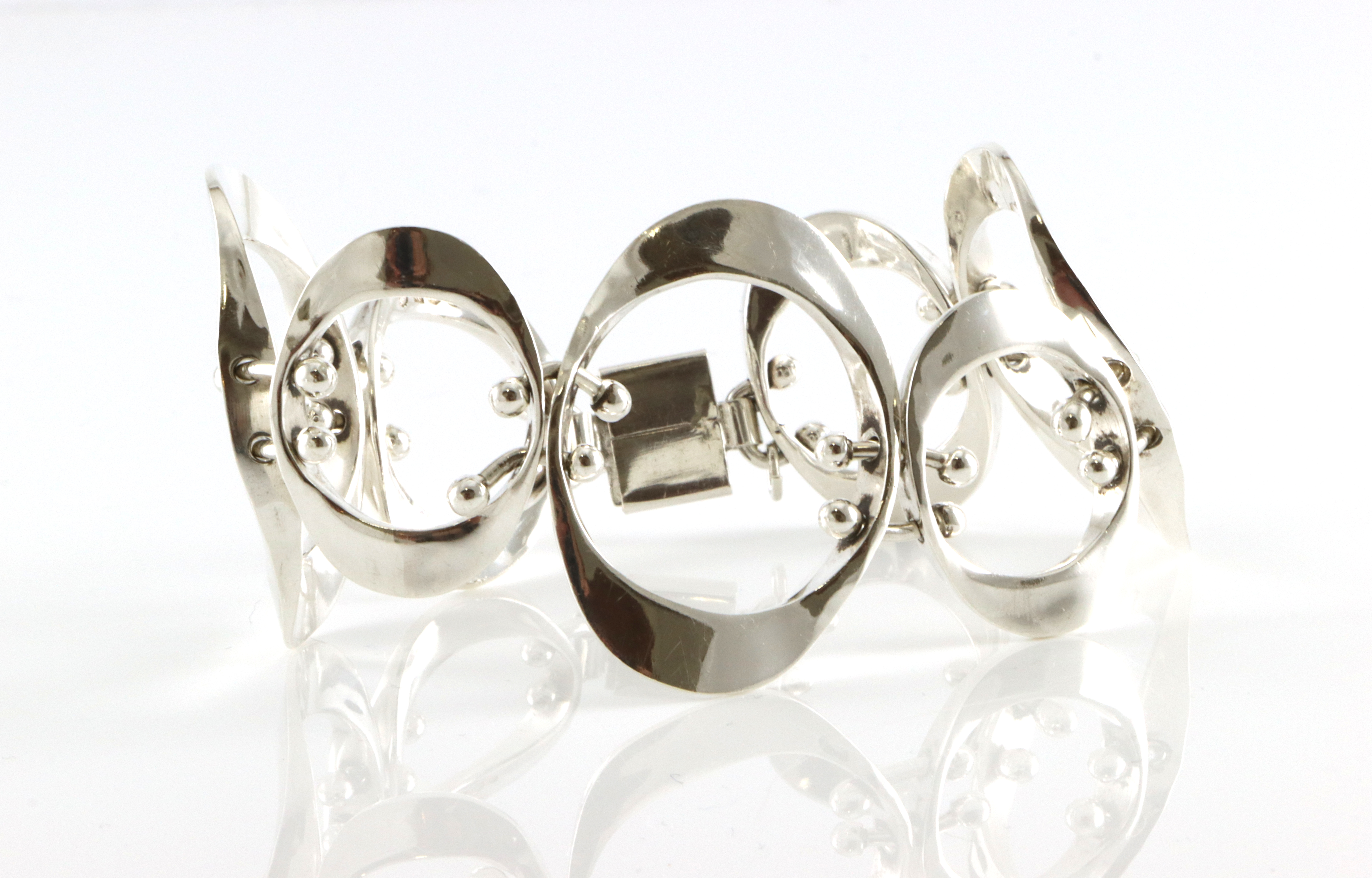 Engelsk retro armlenke i 925 Sølv Mester er ukjent for oss Bredde: 37 mm Lengde: 19 cm Det har vært en sikkerhetslenke som er fjernet