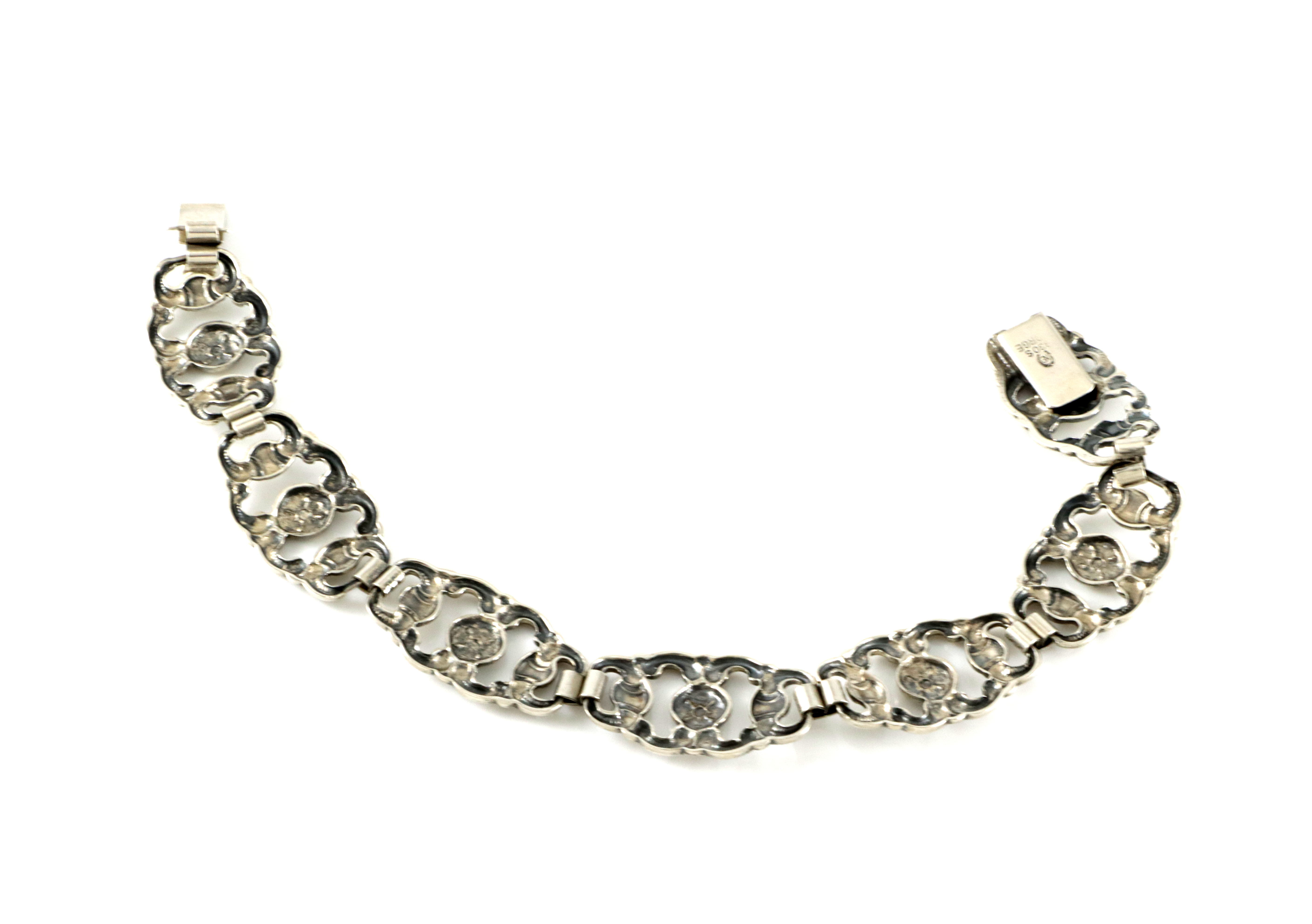 Eldre armlenke i sølv. Produsert av Nils Elvik. Ca 18,5 cm lang og 1,4 cm