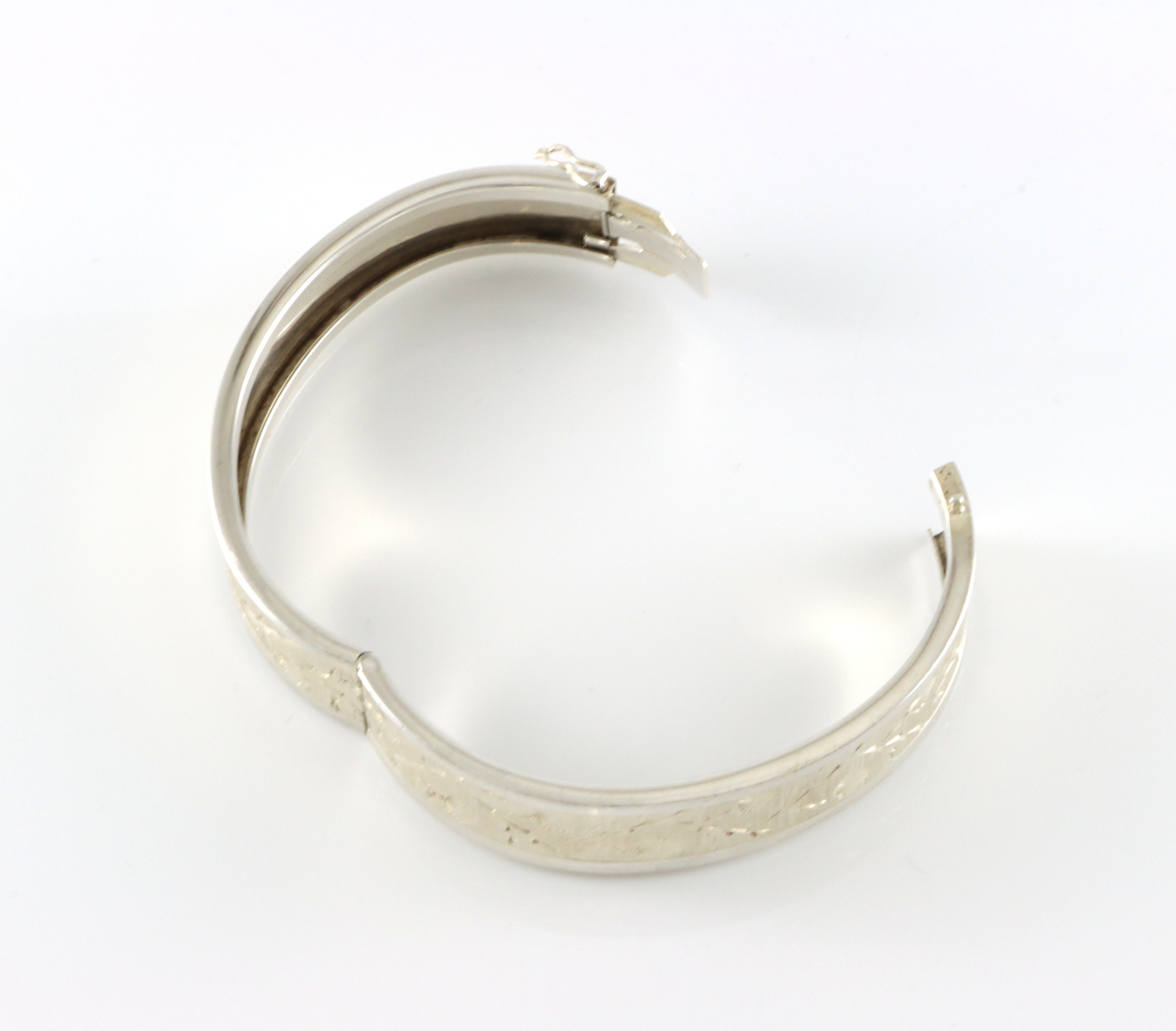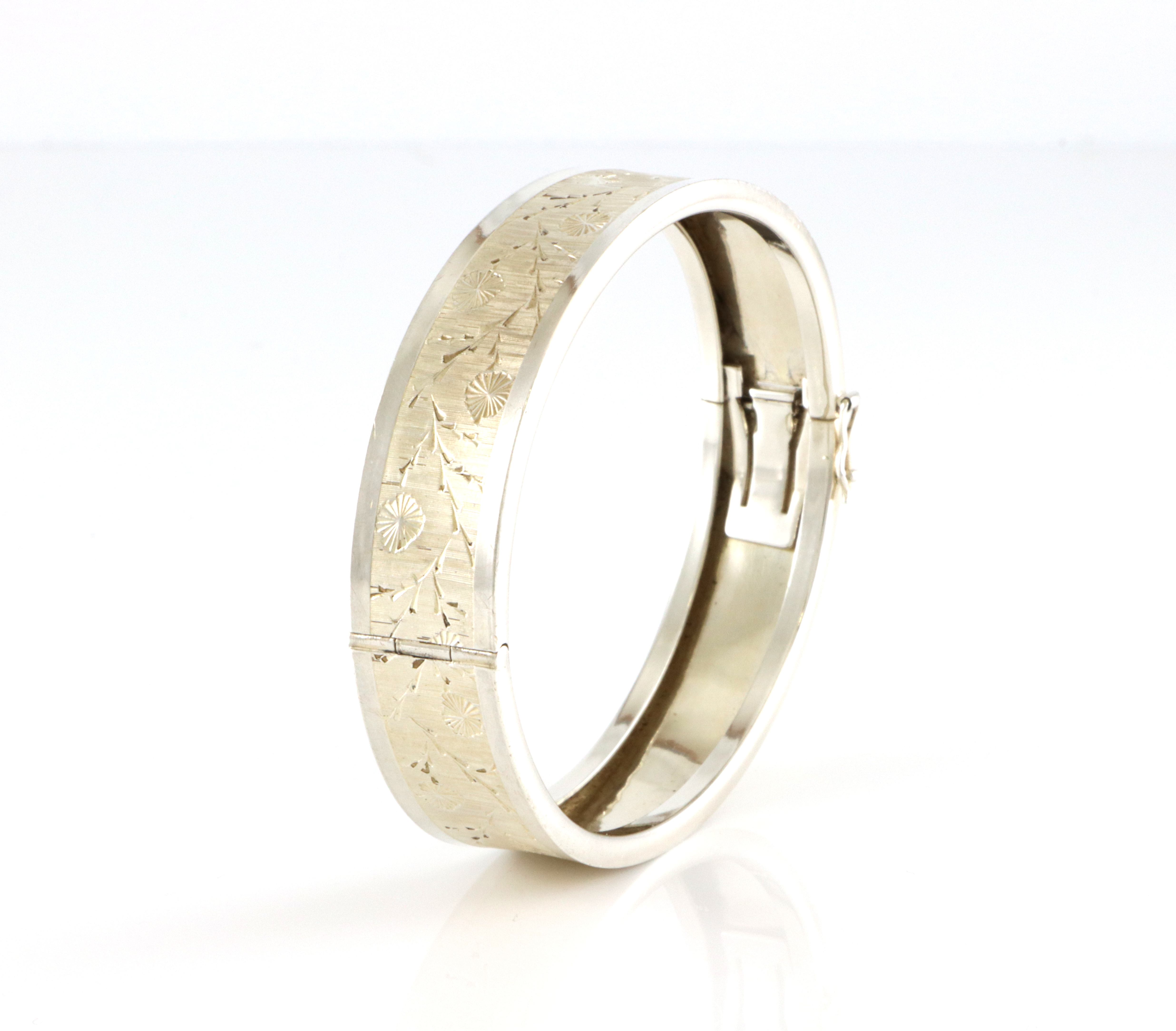 Lekker armring i 835 Sølv med gravert mønster Bredde: 14 mm Innvendig mål: 63 x 53 mm