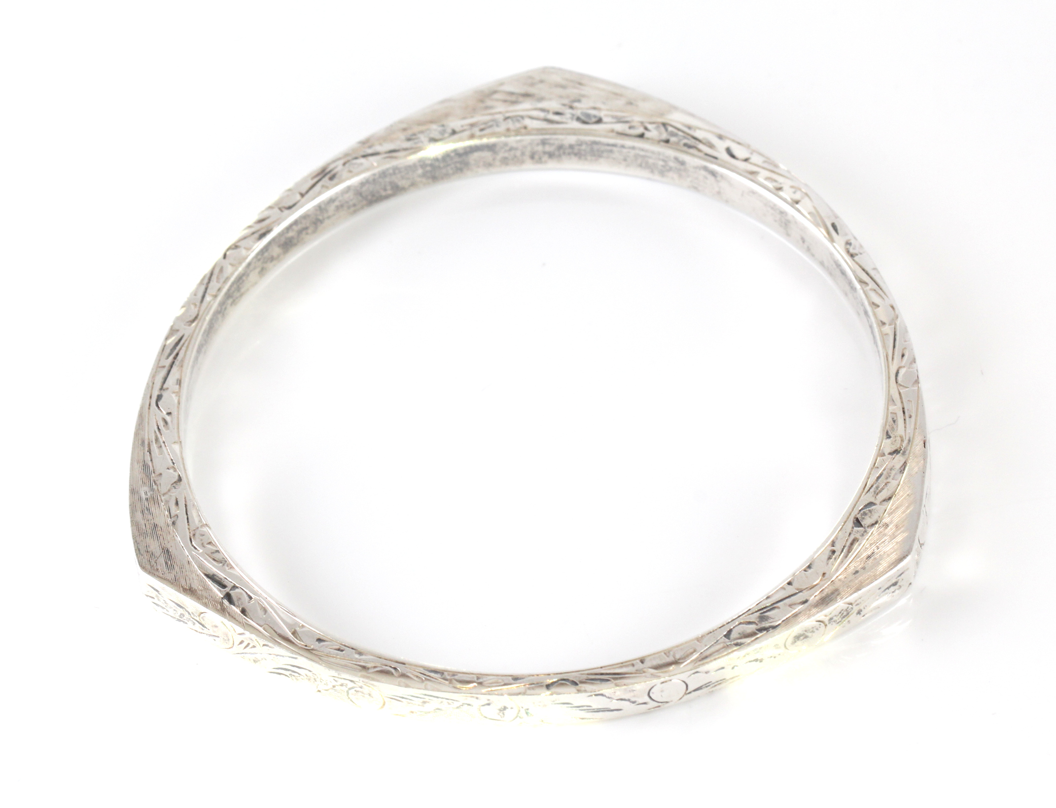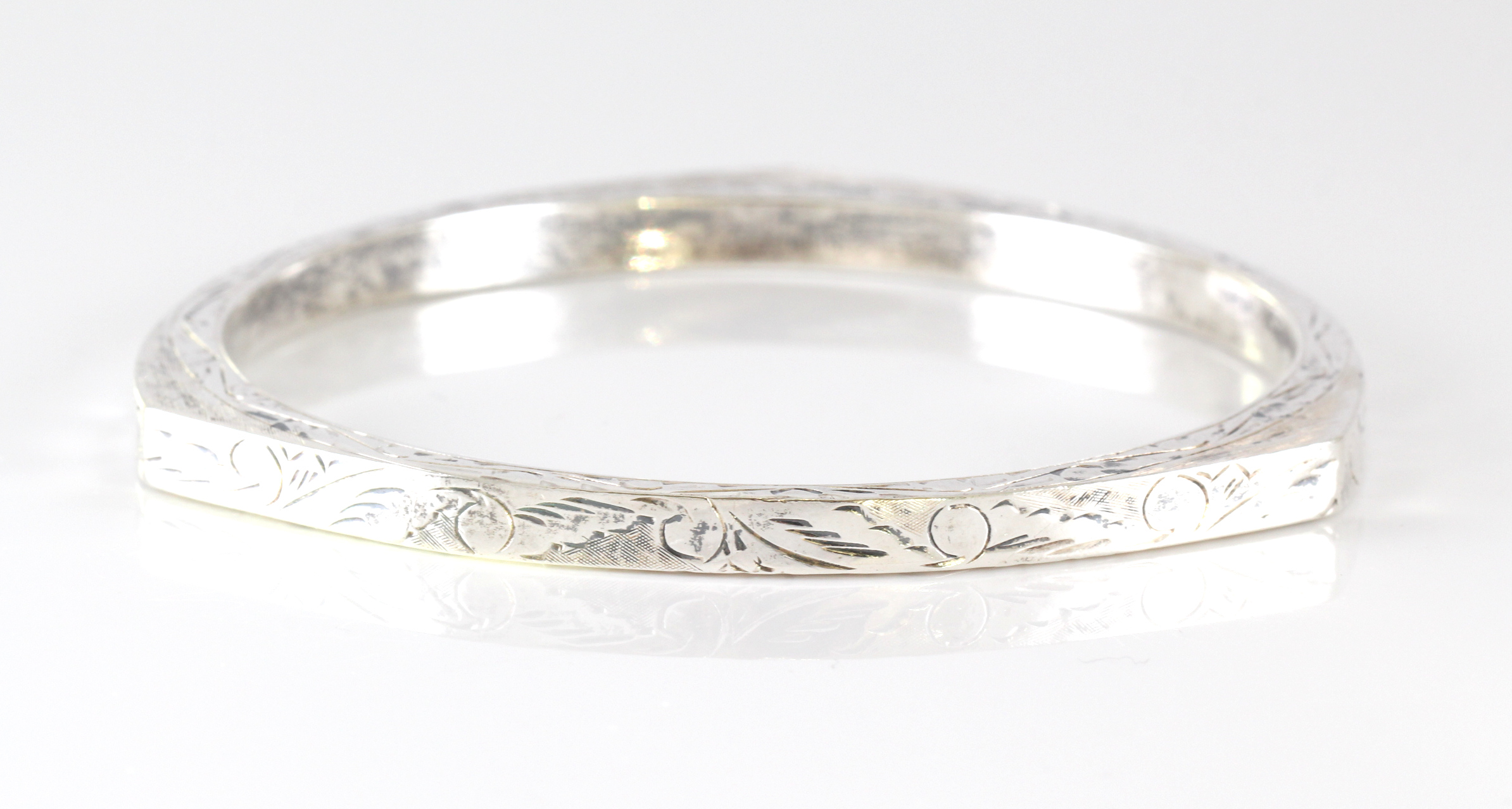 Flott siselert armring, et par nesten usynlige bulker. 6,5 cm innvendig.
